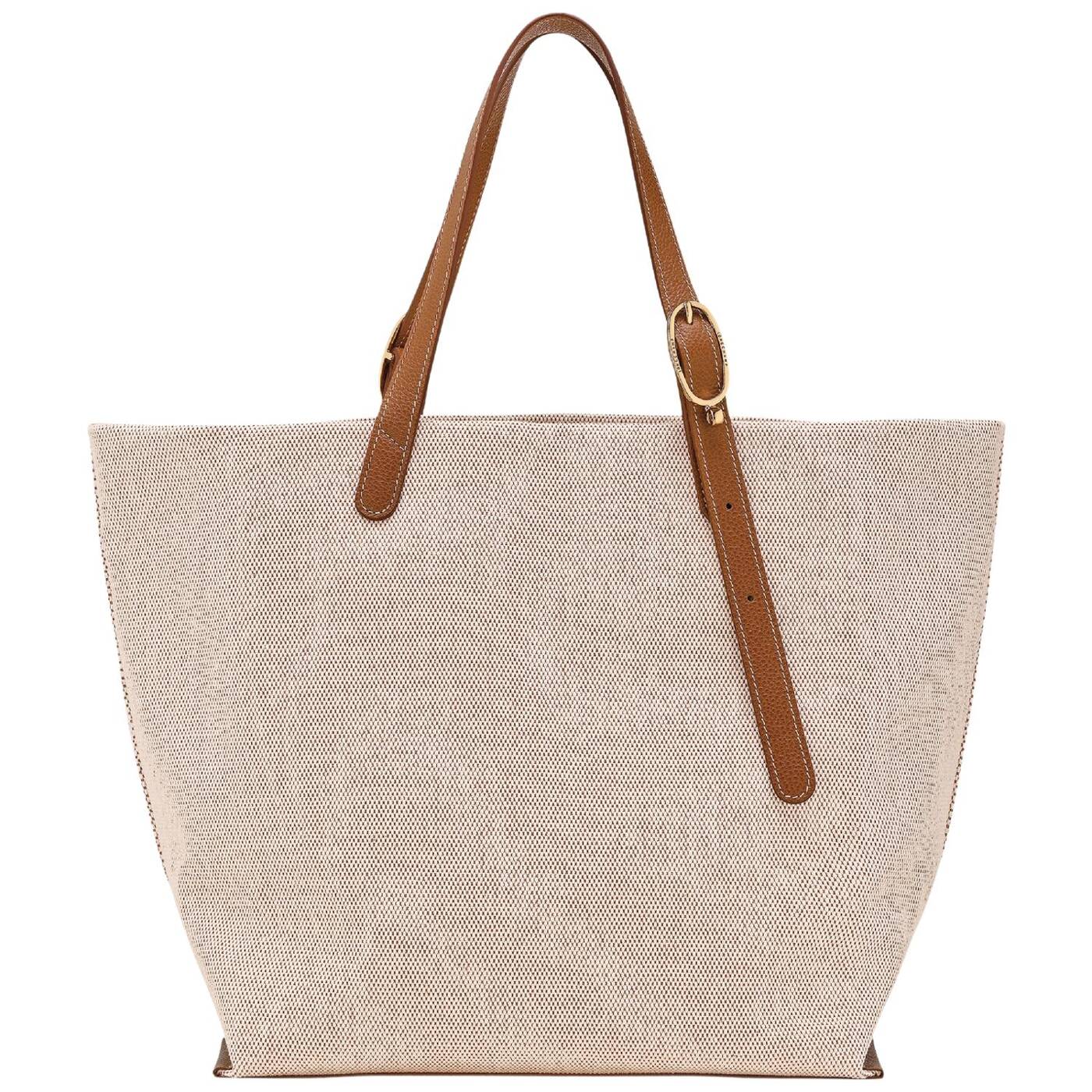 • Fach aus Leder auf der Vorderseite und Reißverschlussfach innen