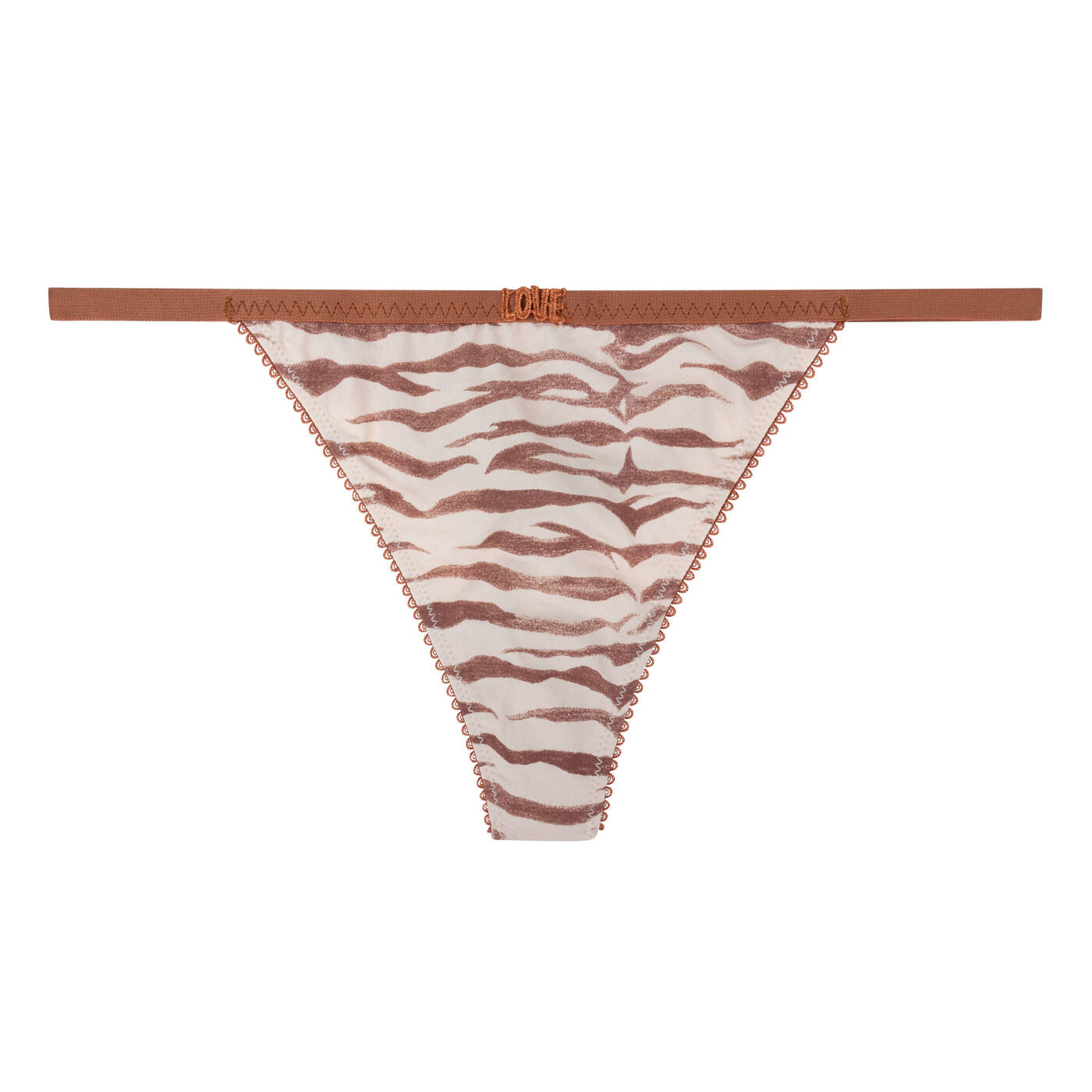 - Aufgestickte LOVE-Buchstaben auf dem Bund
