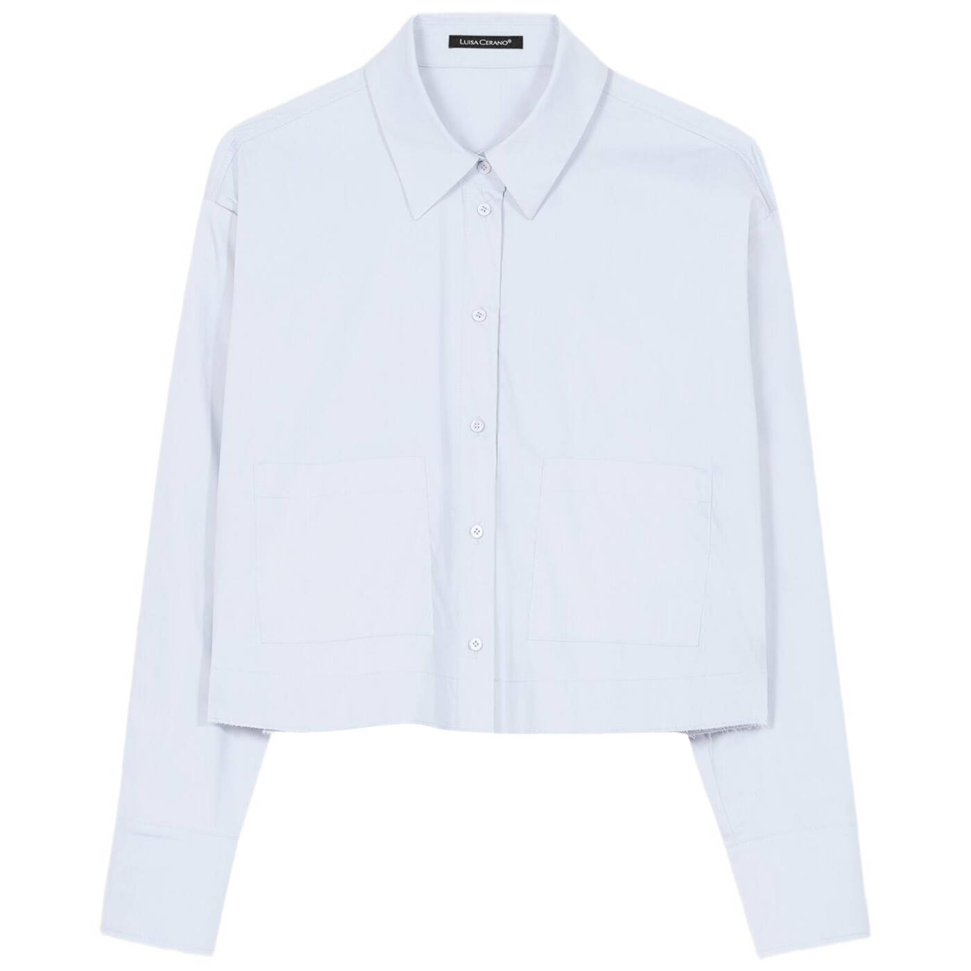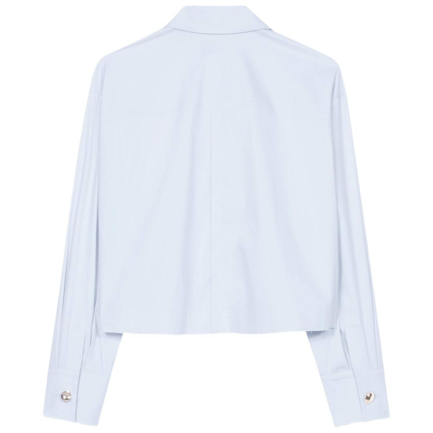 Hemdbluse aus feiner baumwollmischung mit stretch-anteil. der verkürzte schnitt ist mit einer rückennaht und aufgesetzten taschen sowie schmuckknöpfen an den manschetten aufgemacht.