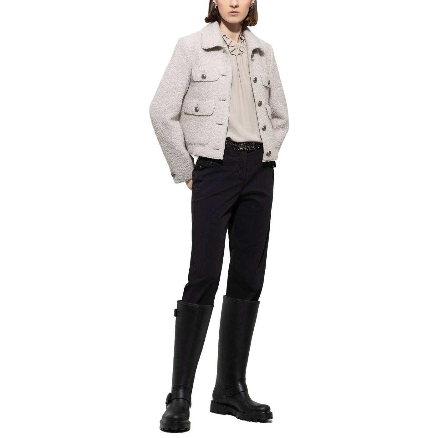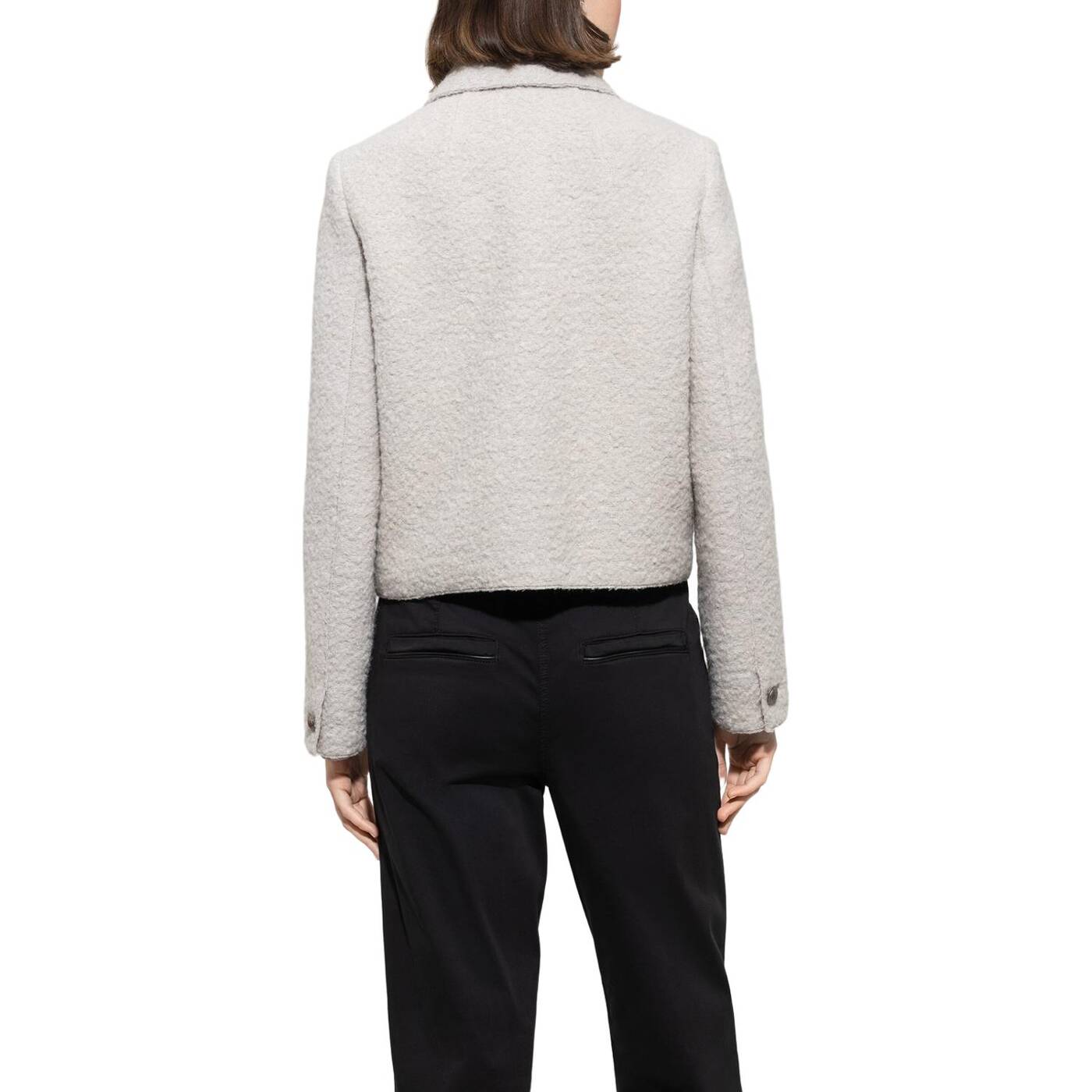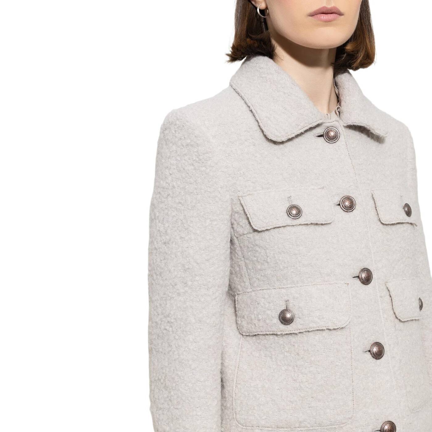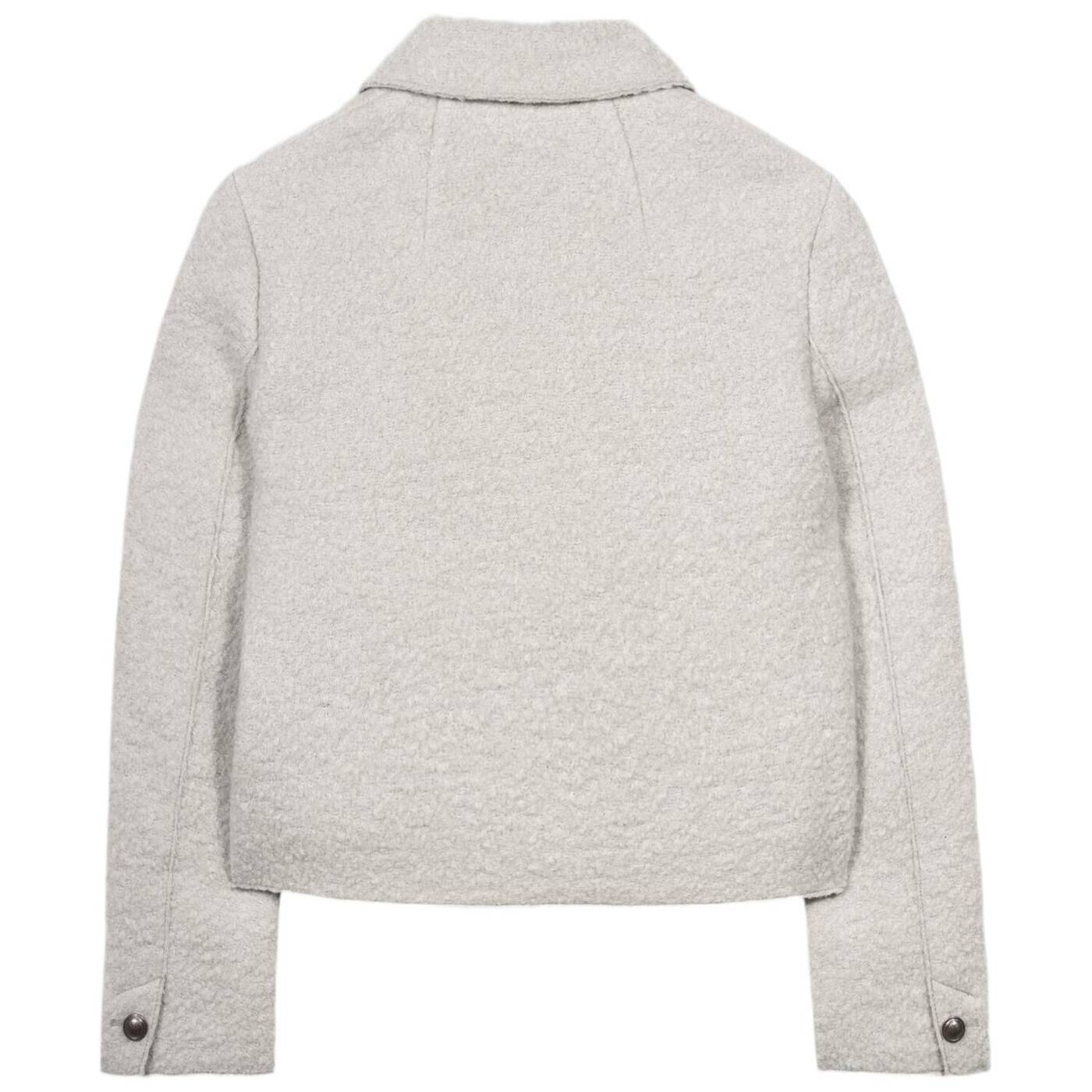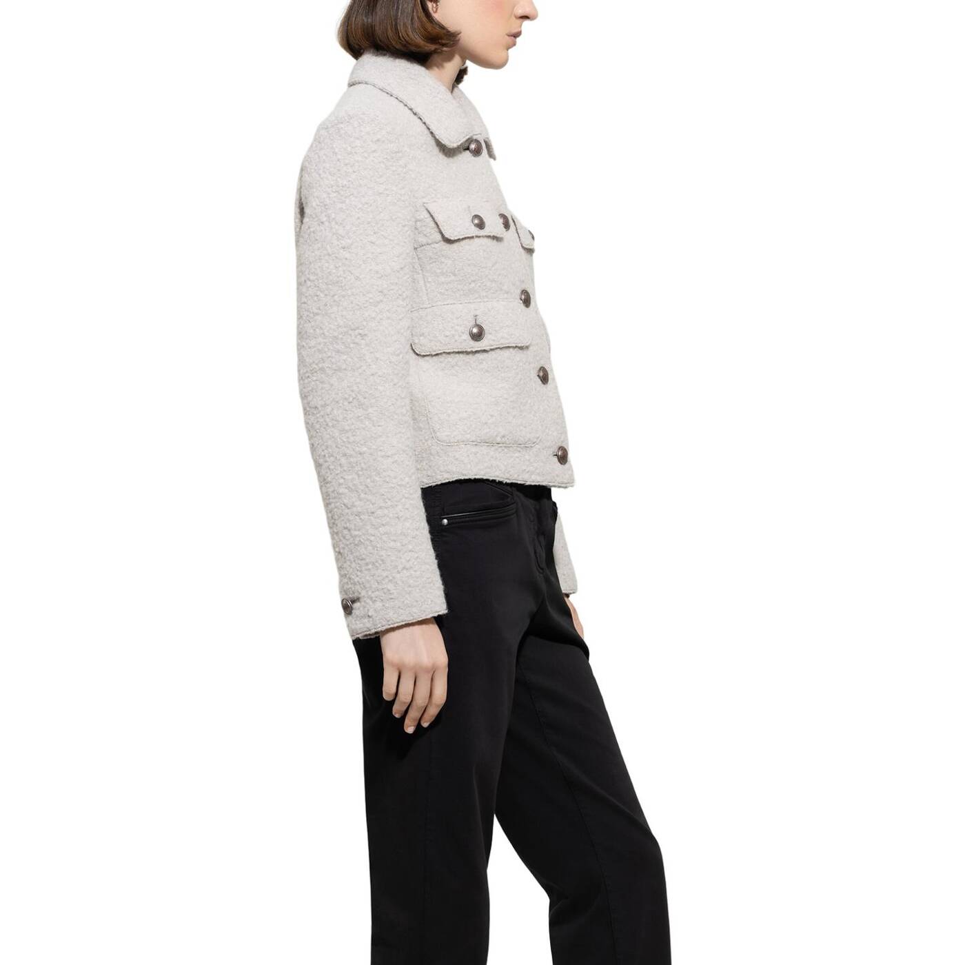 Kurze Jacke aus grober Highclass-Boiled-Wollmischung mit durchgehender Knopfleiste und dekorativen Metallknöpfen. Auf der Vorderseite sind zwei große Pattentaschen sowie zwei Fake-Taschen aufgesetzt.