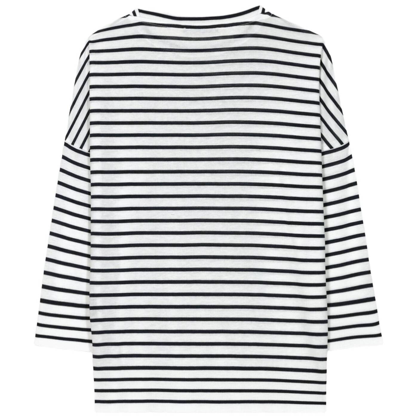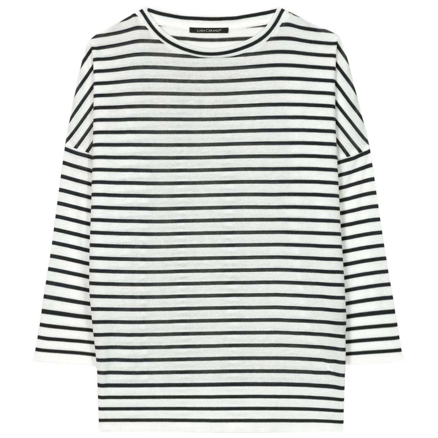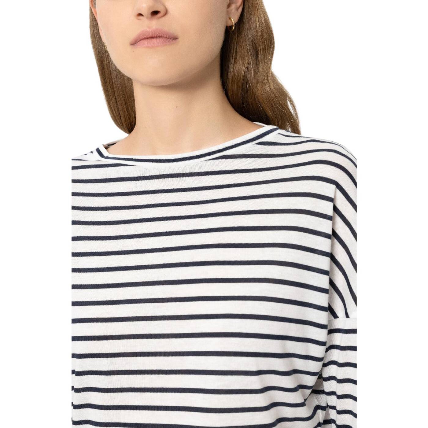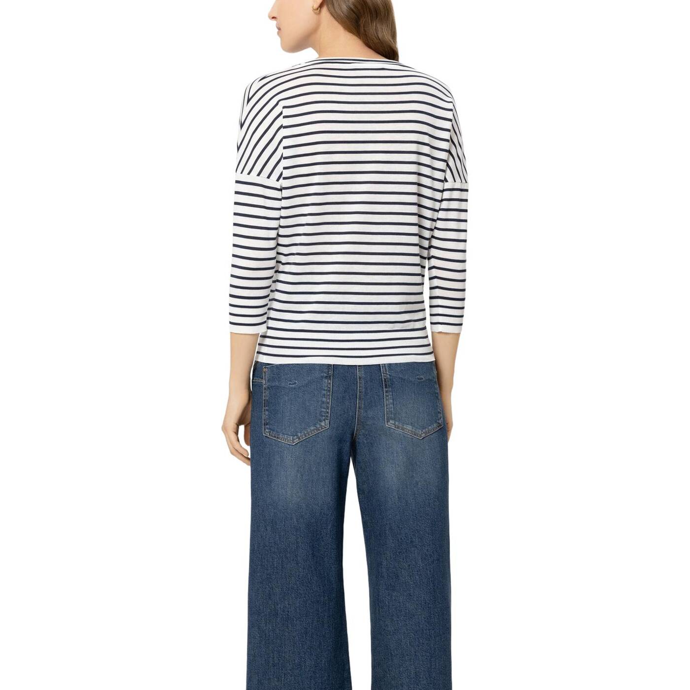 Gestreiftes shirt aus baumwoll-mischung mit u-boot-ausschnitt, weichem nackenband und dezenter logo-stickerei. der saum und die dreiviertel-ärmel schließen mit einem rippbund ab.