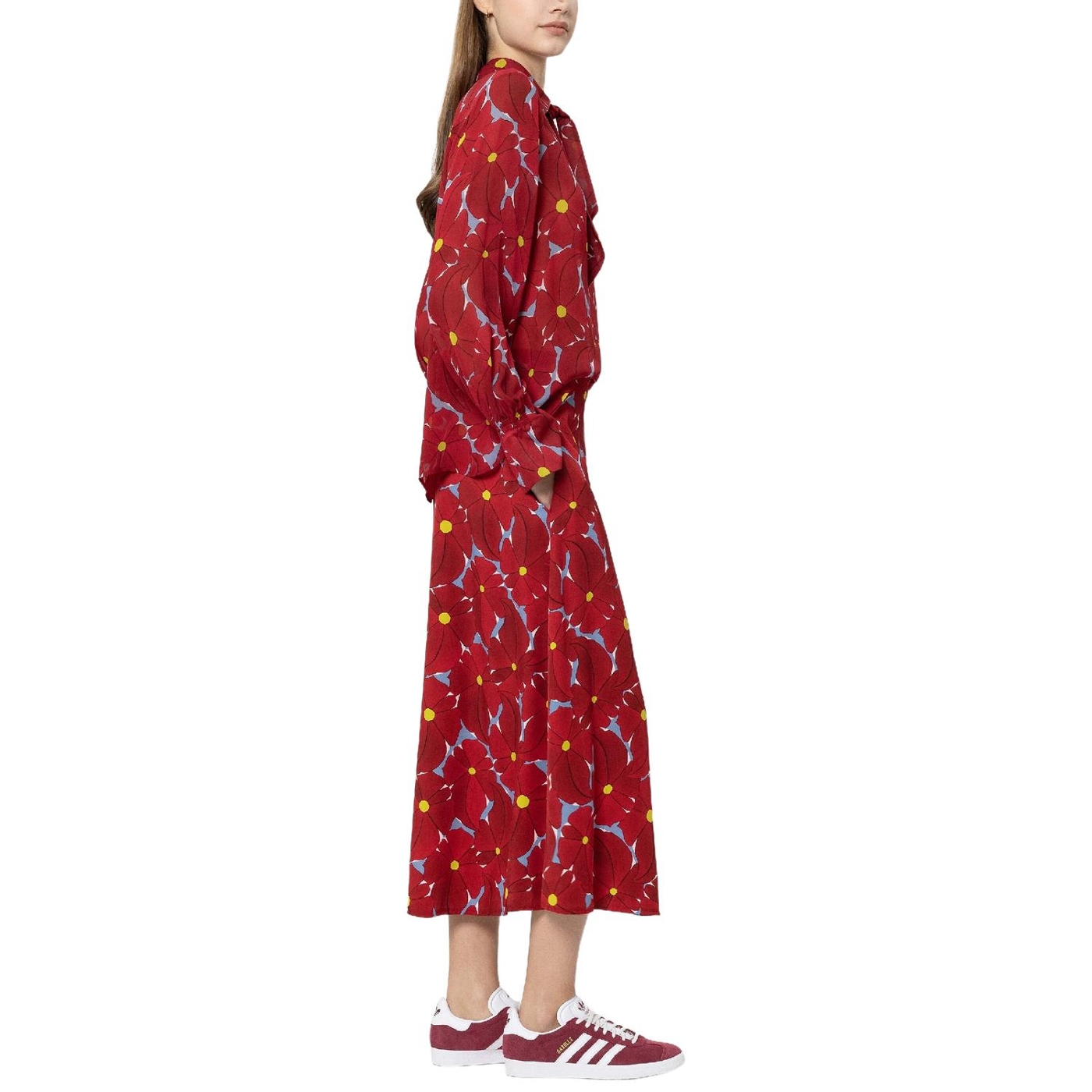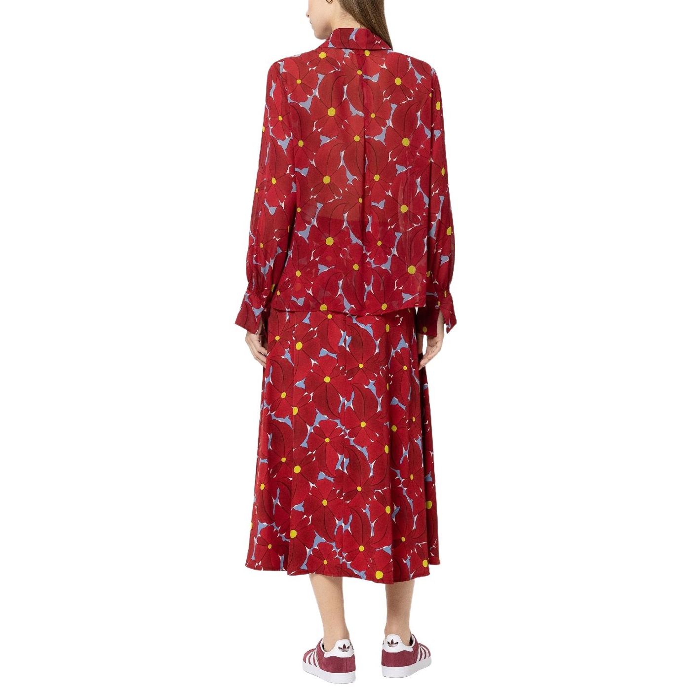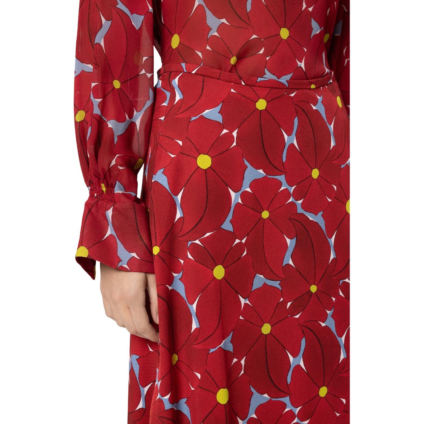 Langer, leicht ausgestellter rock aus fließendem viskose-gabardine mit exklusivem blumenprint. der rock ist mit zwei seitentaschen und einem reißverschluss ausgestattet.