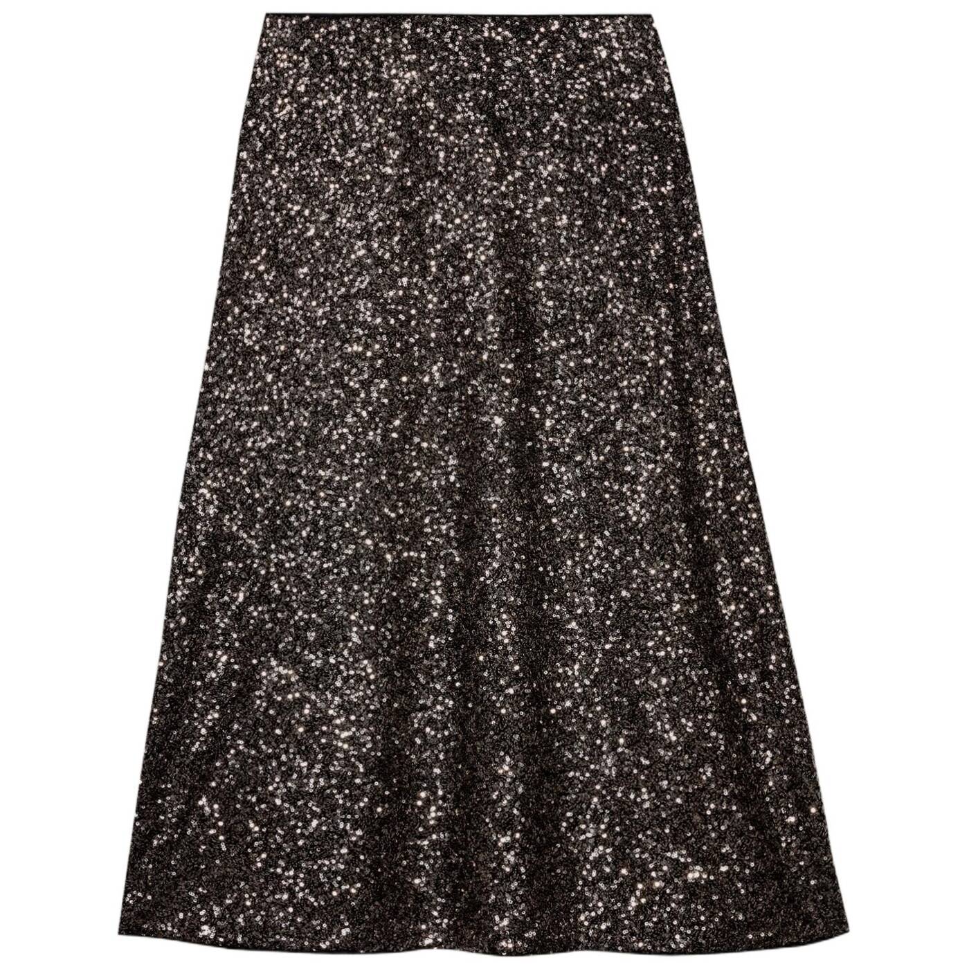 Midirock mit glitzernden Pailletten auf feinem Mesh und blickdichtem Futter. Der leicht ausgestellte Rock sitzt dank Elastikbund sicher und komfortabel.