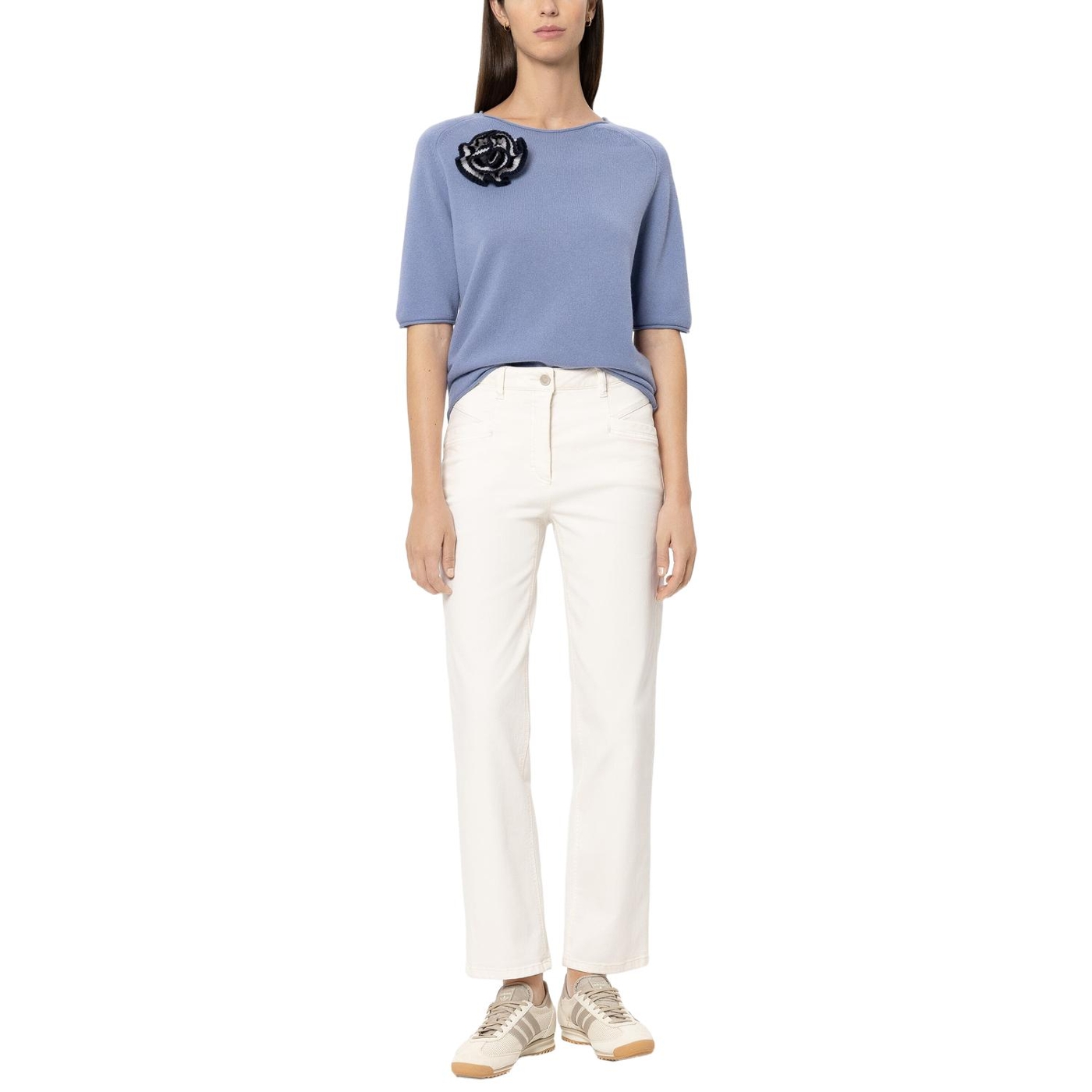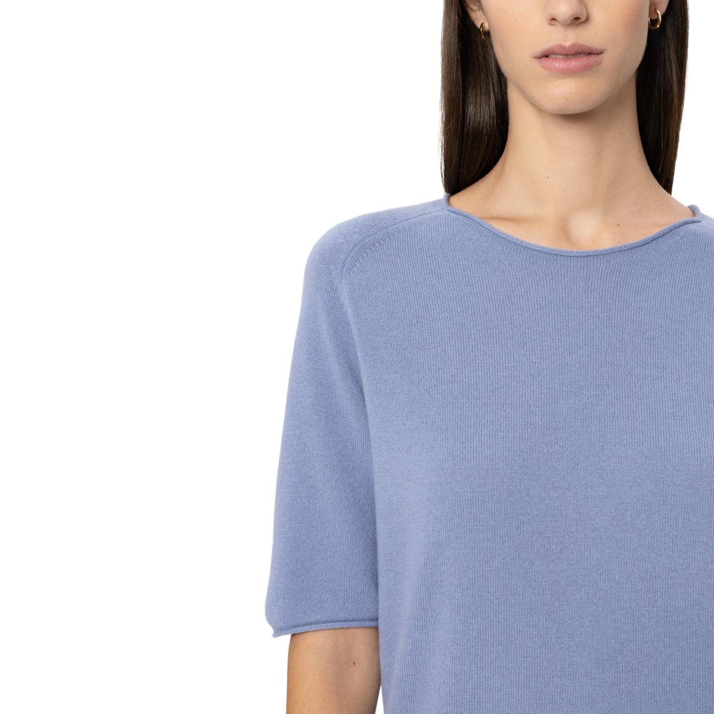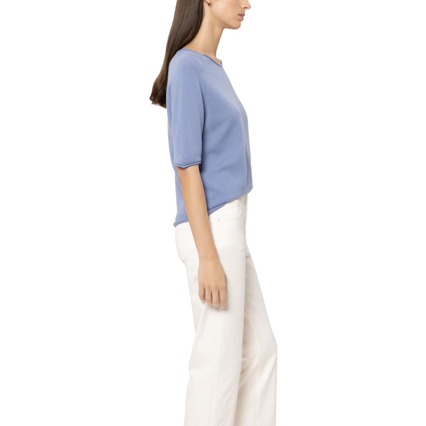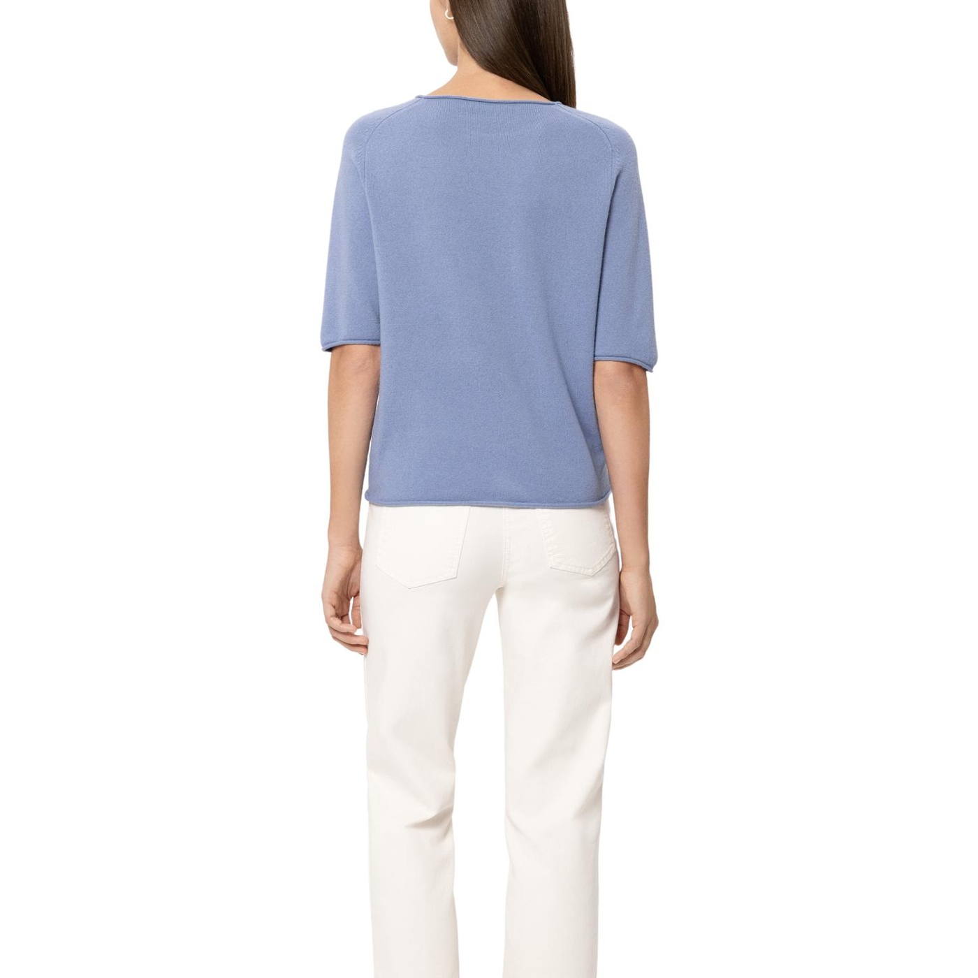 Weicher Rundhals-Pullover aus edler Kaschmir-Mischung für ein besonders weiches und angenehmes Tragegefühl. Rollkanten betonen die Saumabschlüsse und die kurzen Ärmel verleihen einen sommerlichen Touch.