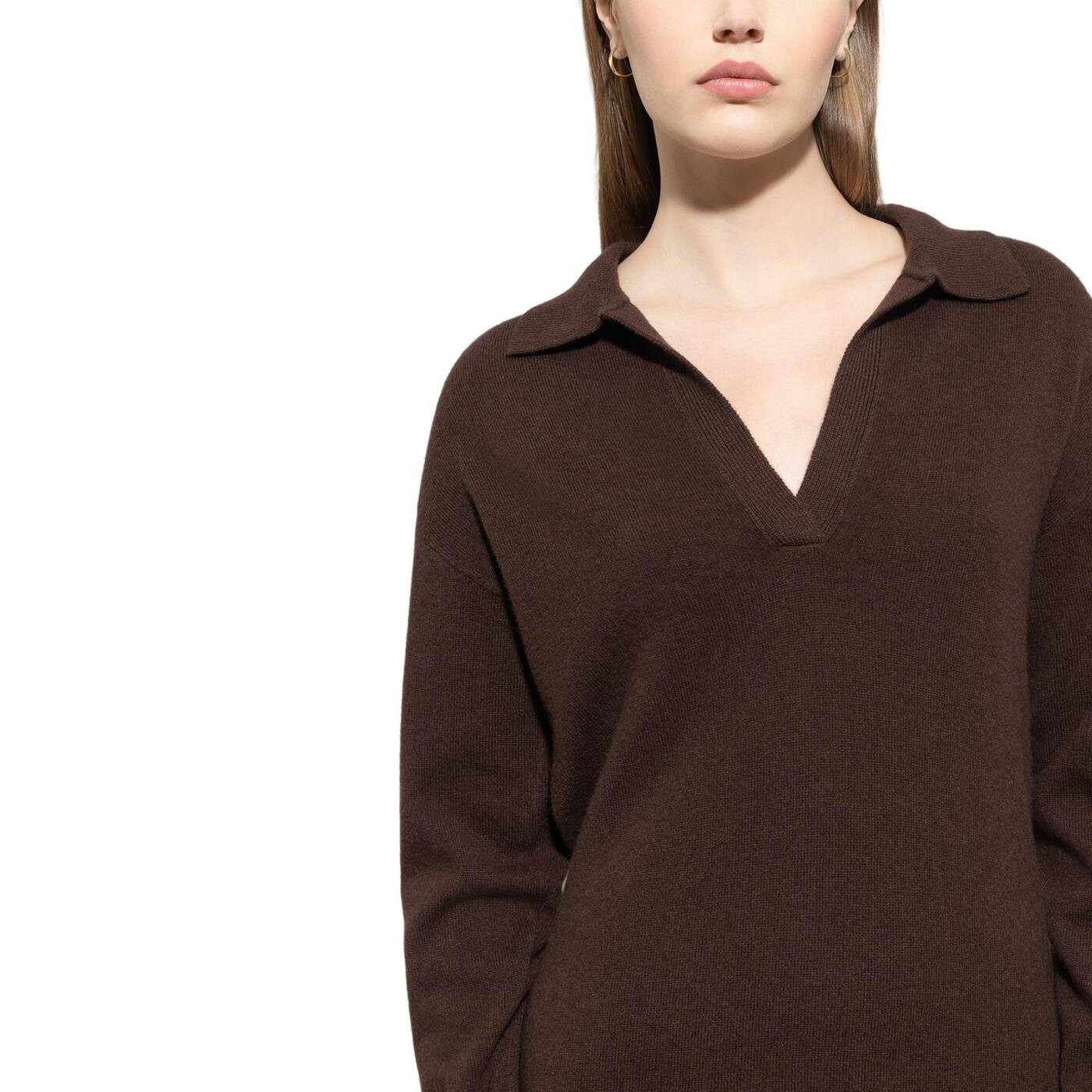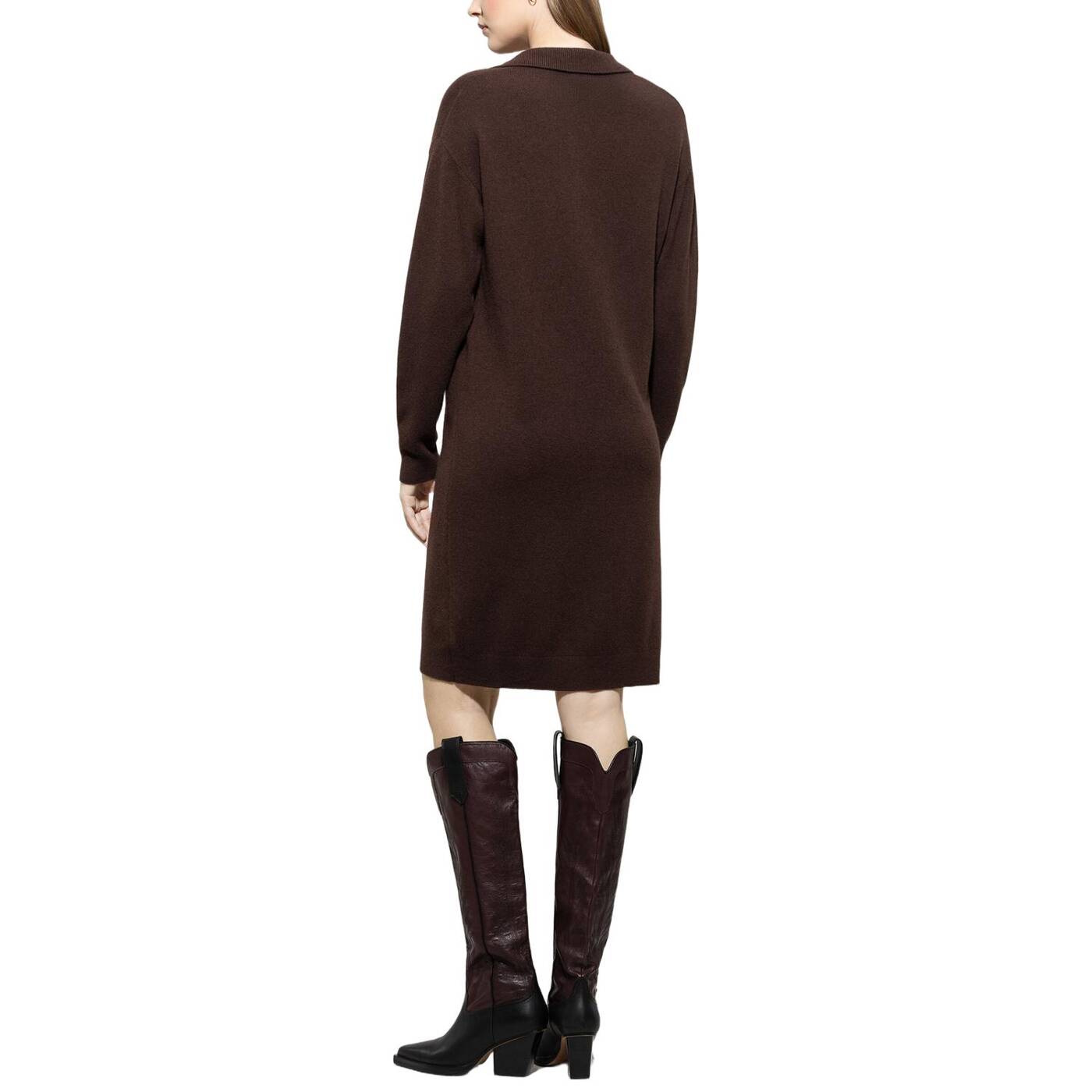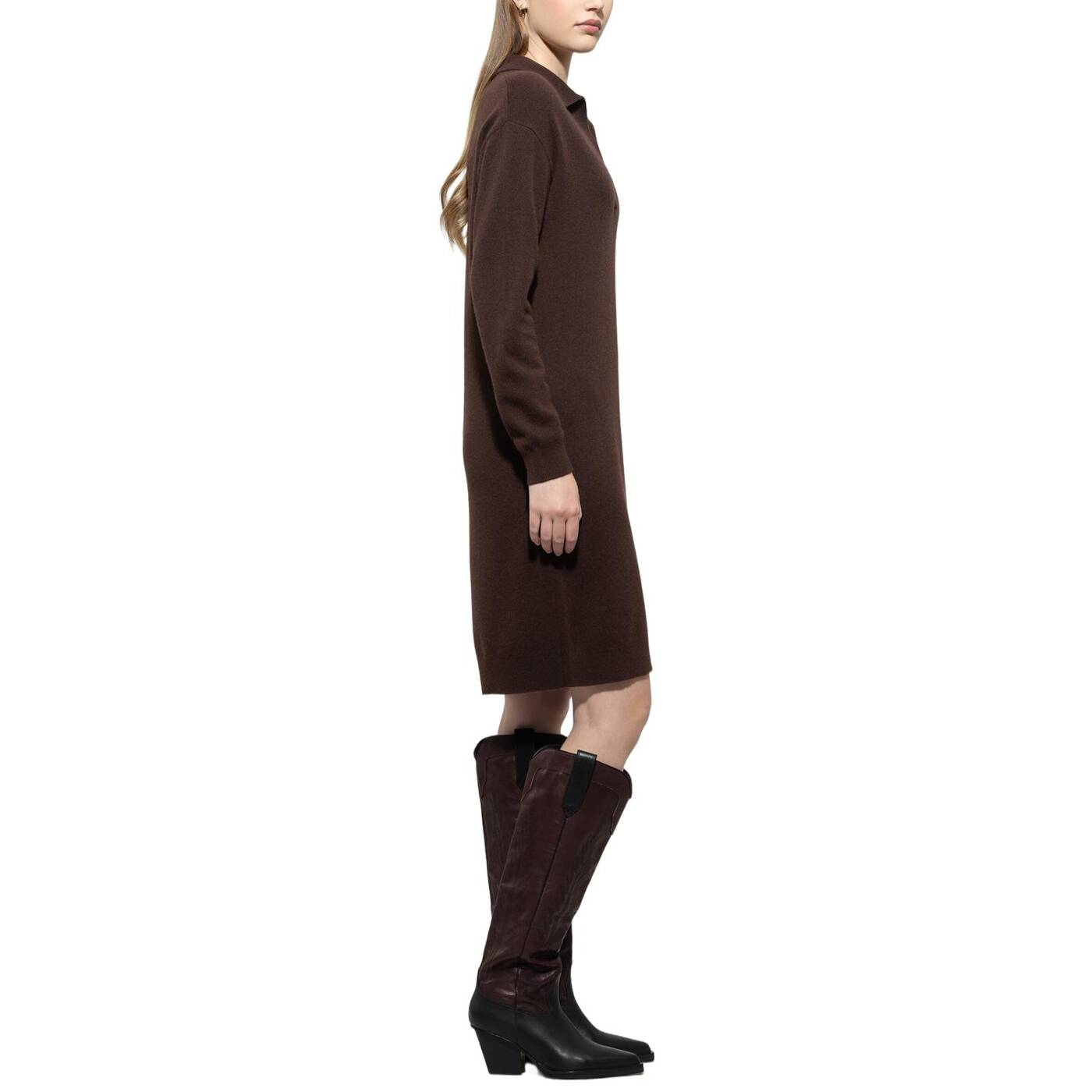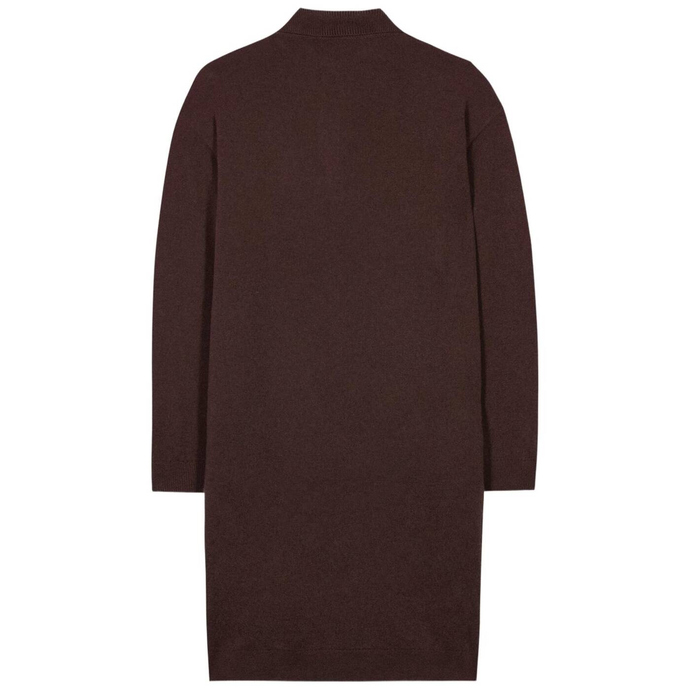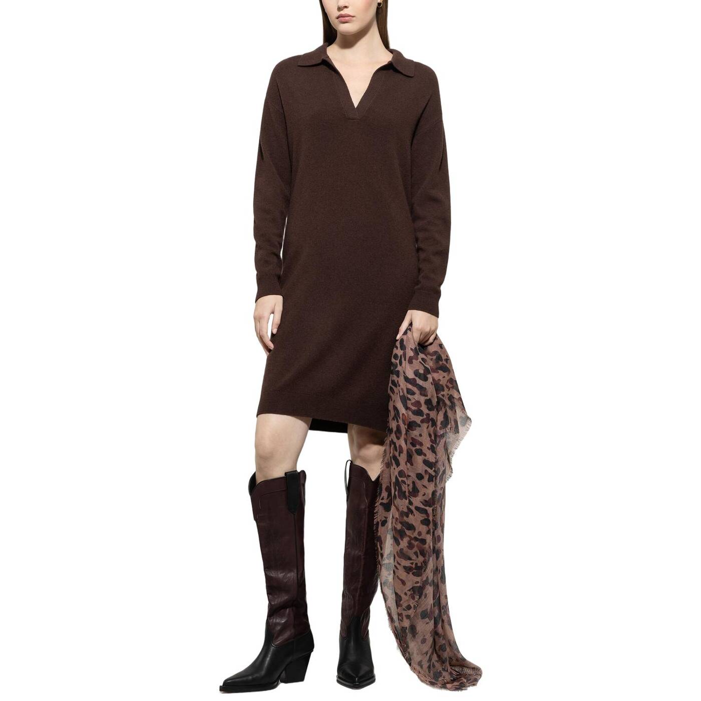 Langärmeliges Midikleid aus edlem Kaschmir-Mix in Feinstrickqualität mit sehr weichem Griff. Das Kleid ist minimalistisch mit einem V-Ausschnitt und umgeschlagenem Kragen sowie feinen Rippstrickbündchen gehalten.