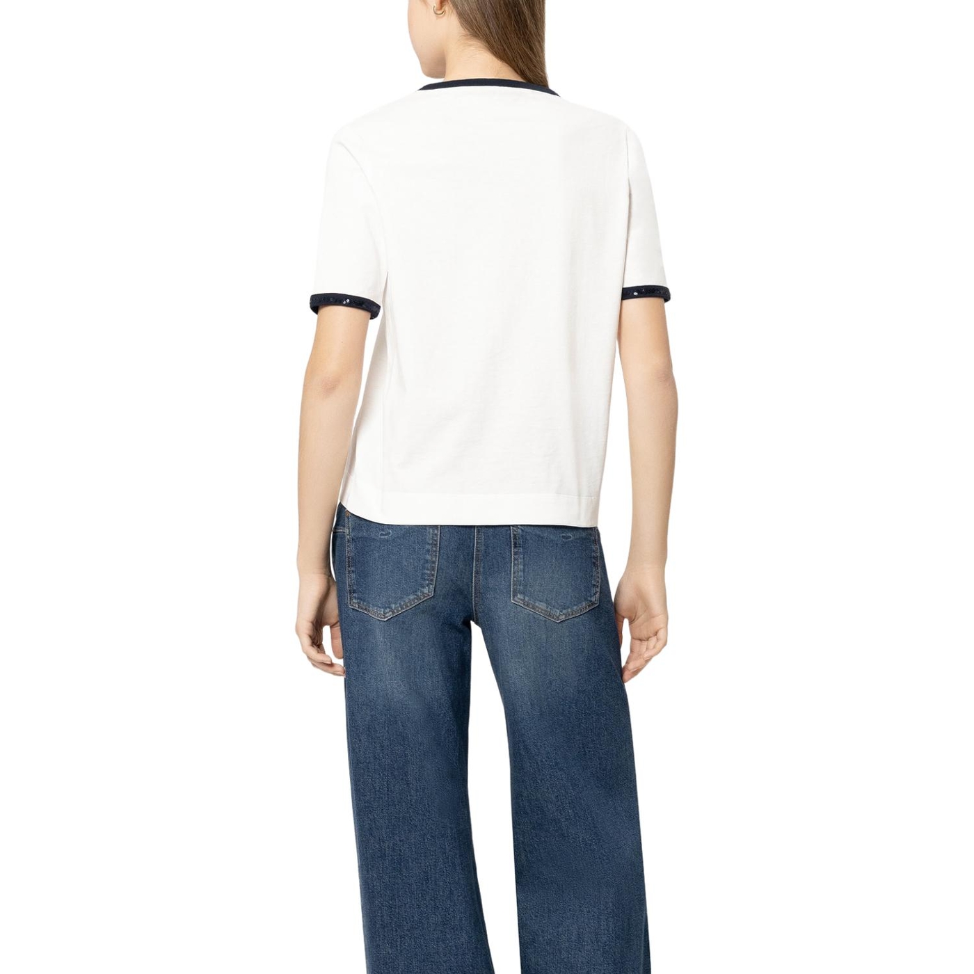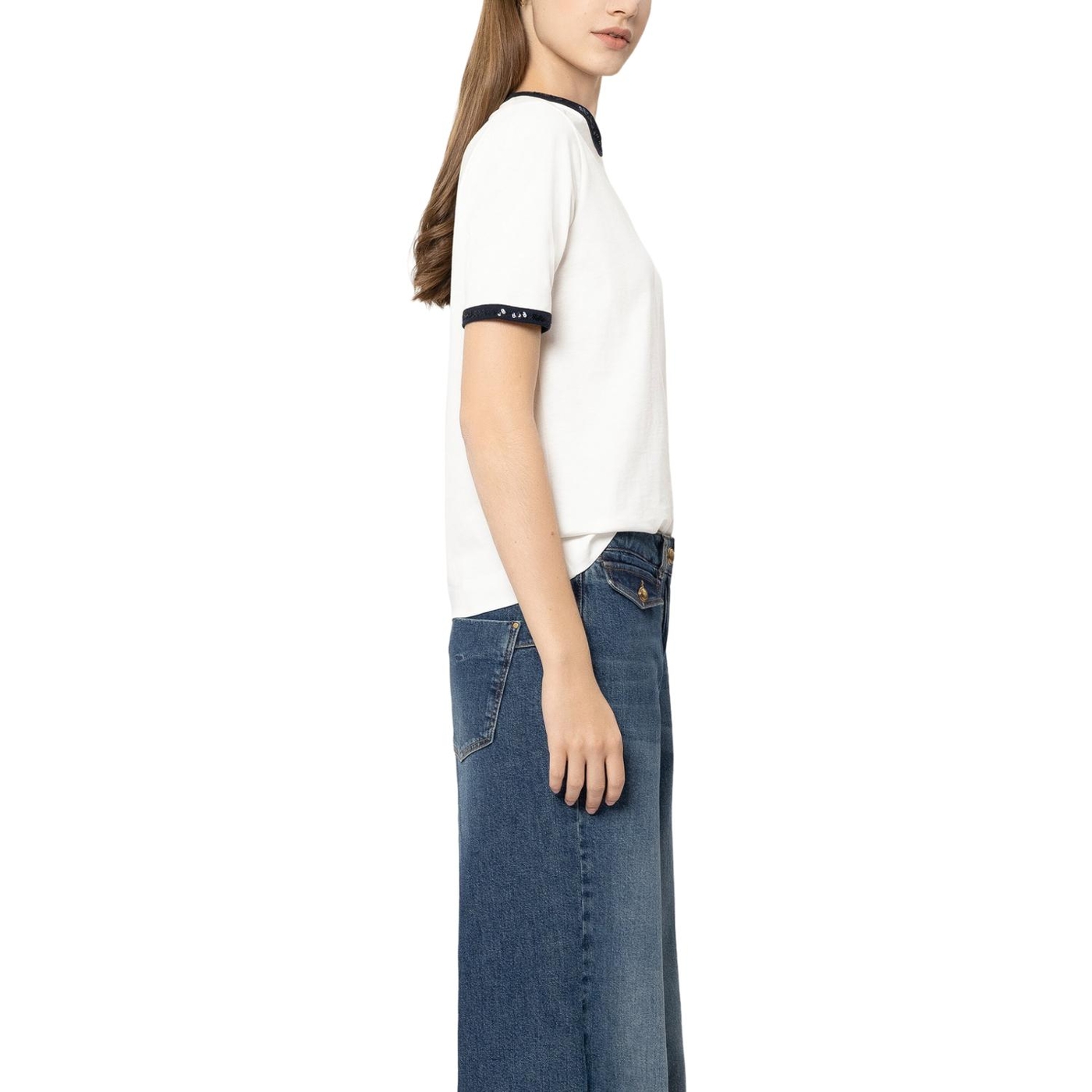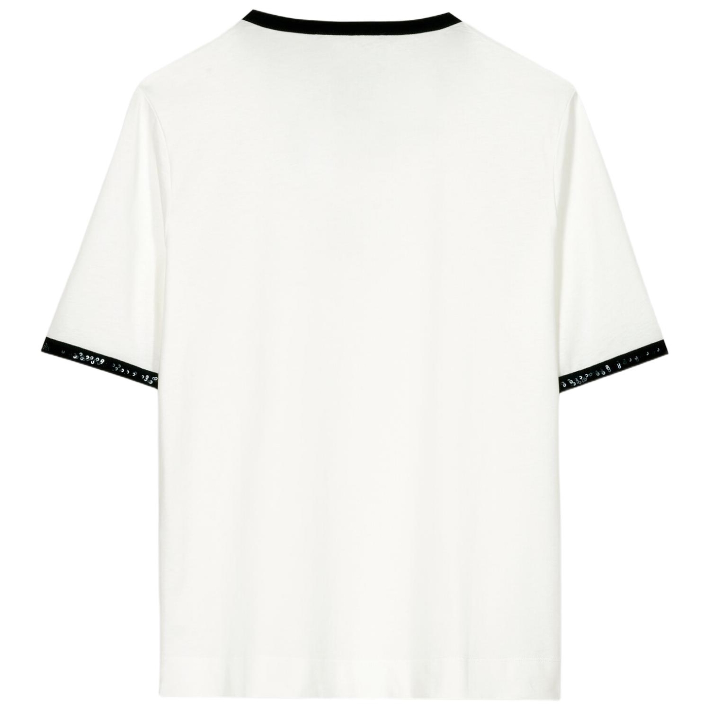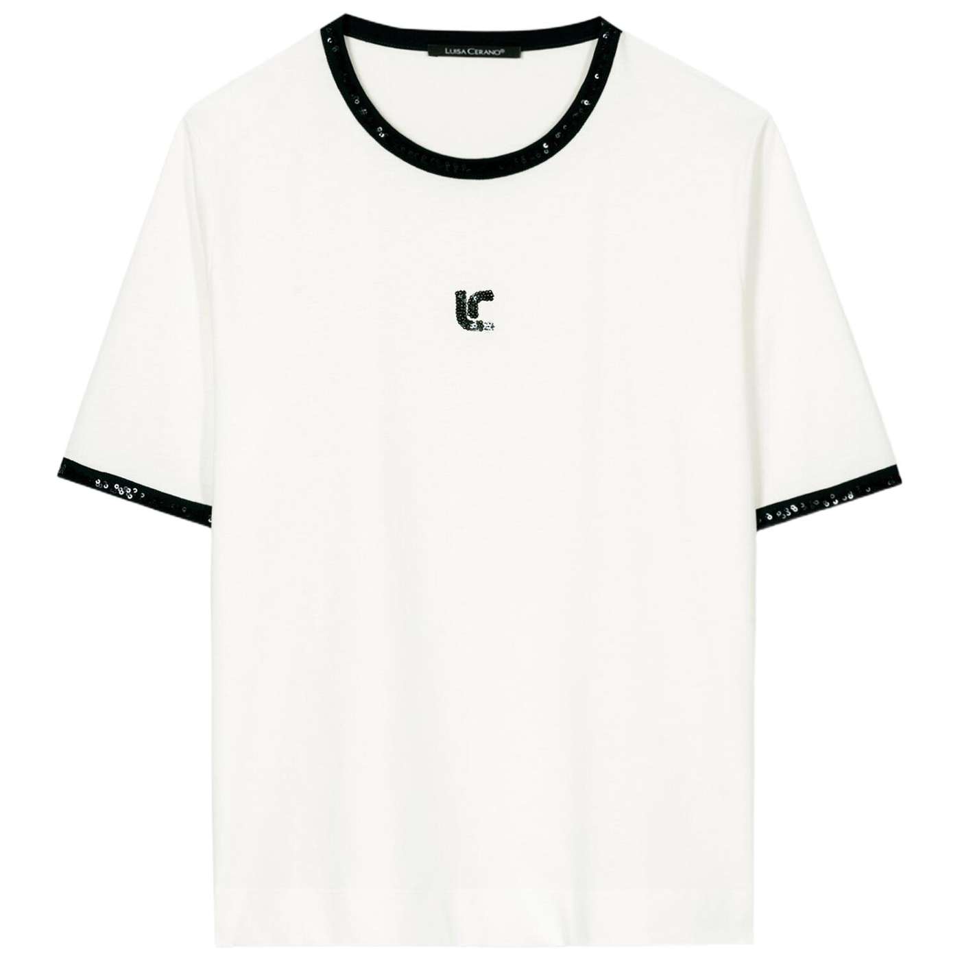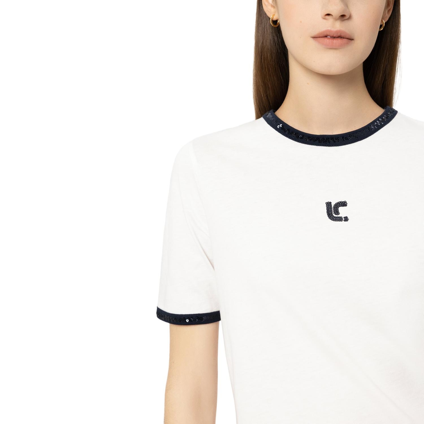 T-shirt aus zertifiziertem baumwoll-jersey. die kontrastierenden abschlüsse und das logodetail auf der vorderseite sind mit glitzernden pailletten bestickt.