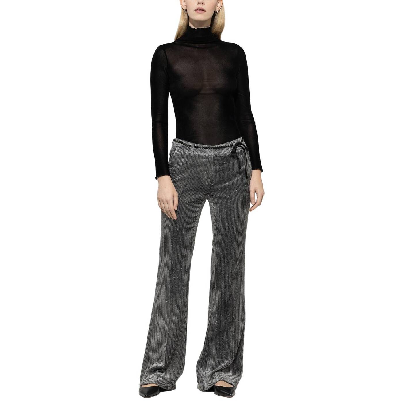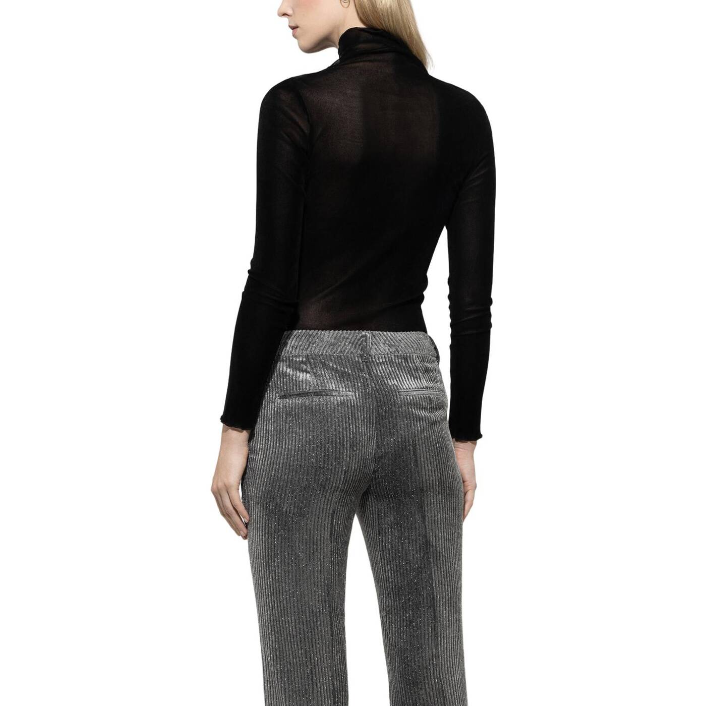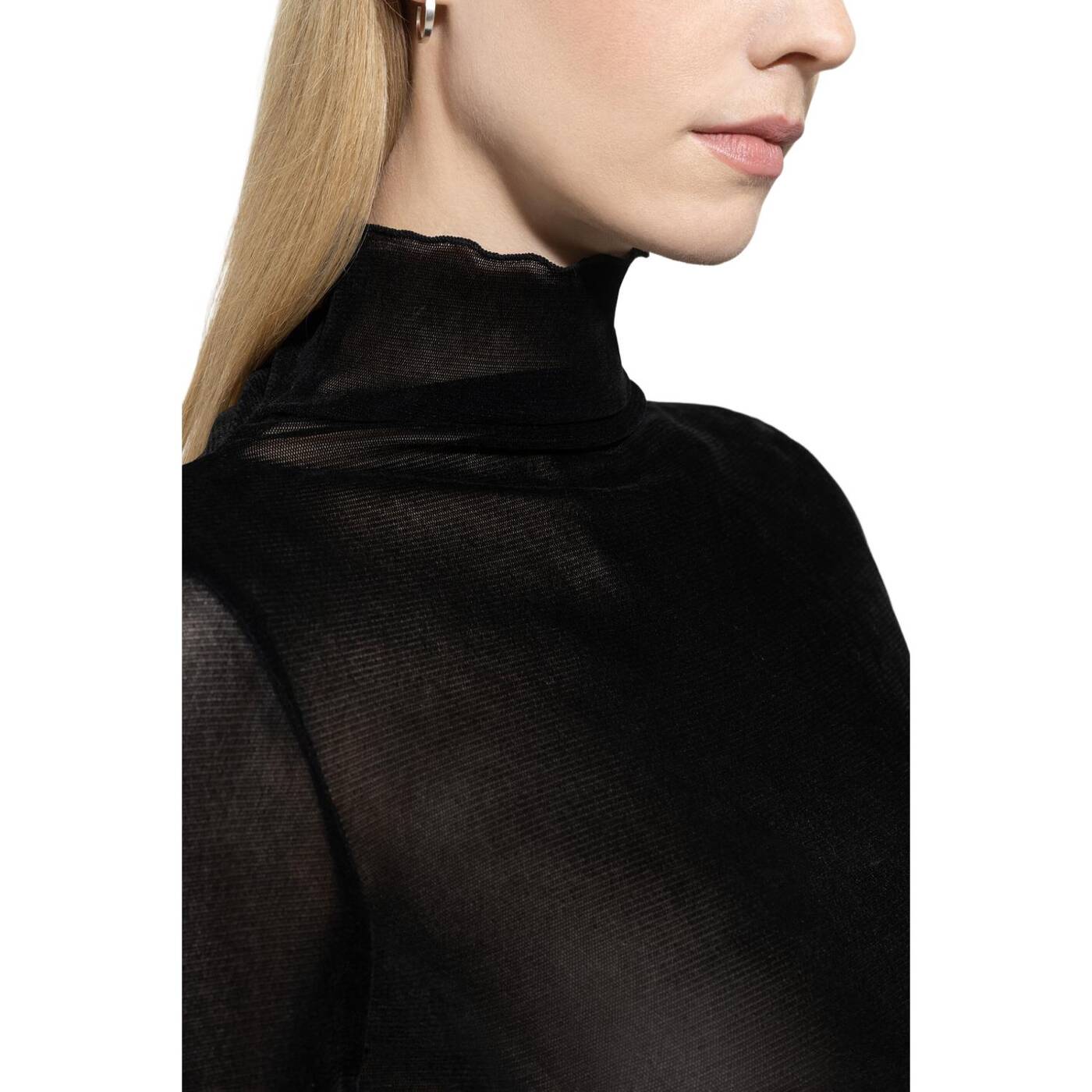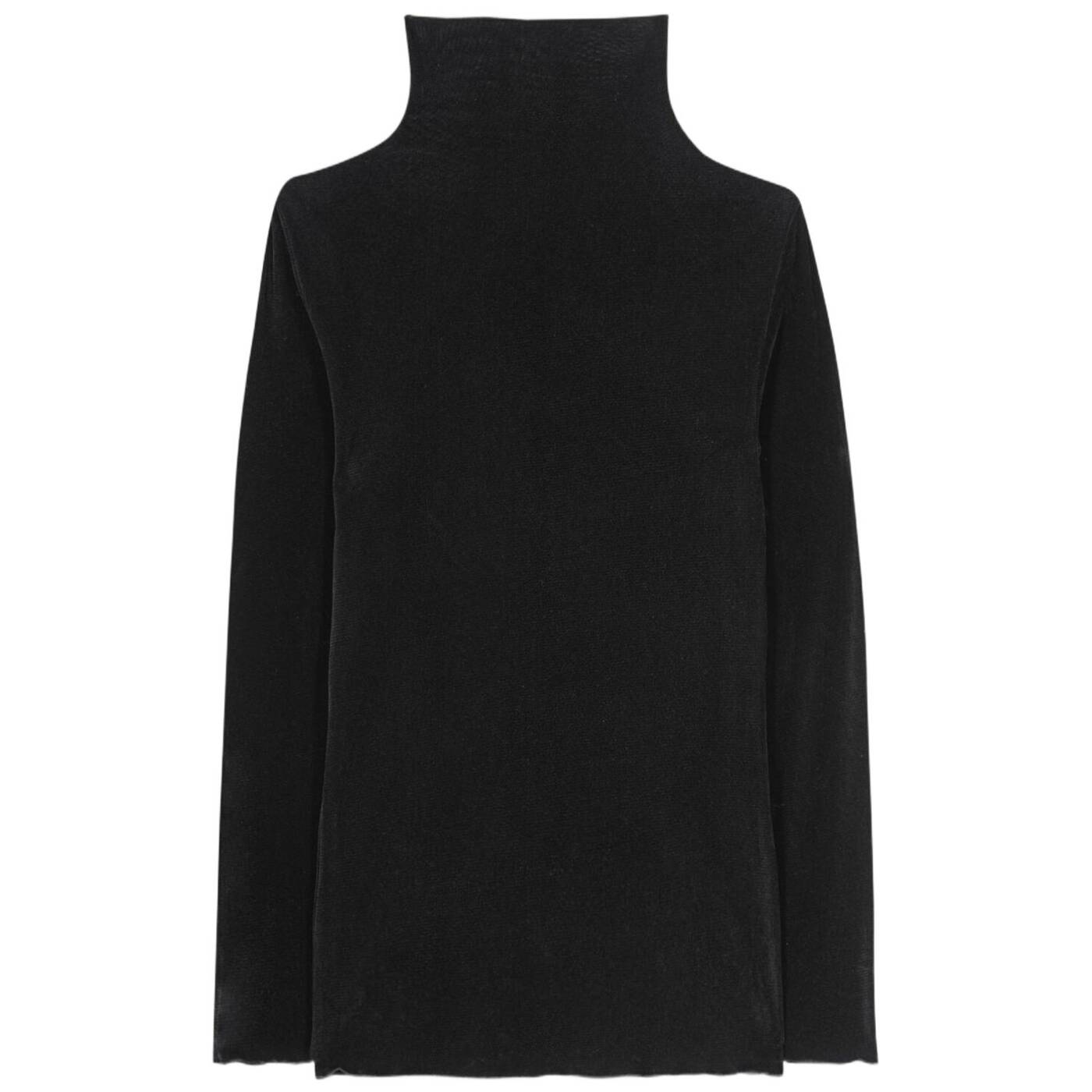 Langärmliges, enganliegendes Samt-Shirt mit angeschnittenem Kragen. Die Kanten schließen mit feinen, elastischen Babylock-Nähten ab.