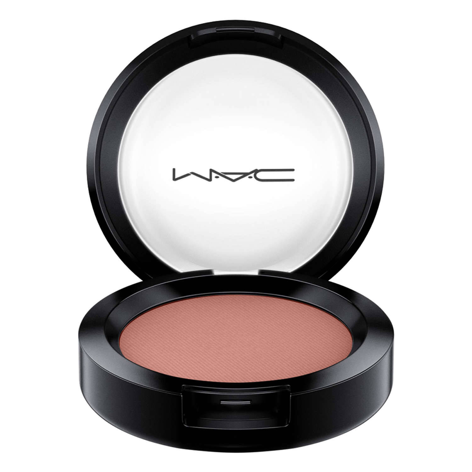 Überschüssigen Puder abklopfen und das Rouge mit schwungvollen Bewegungen auf die Haut auftragen und gut verblenden.