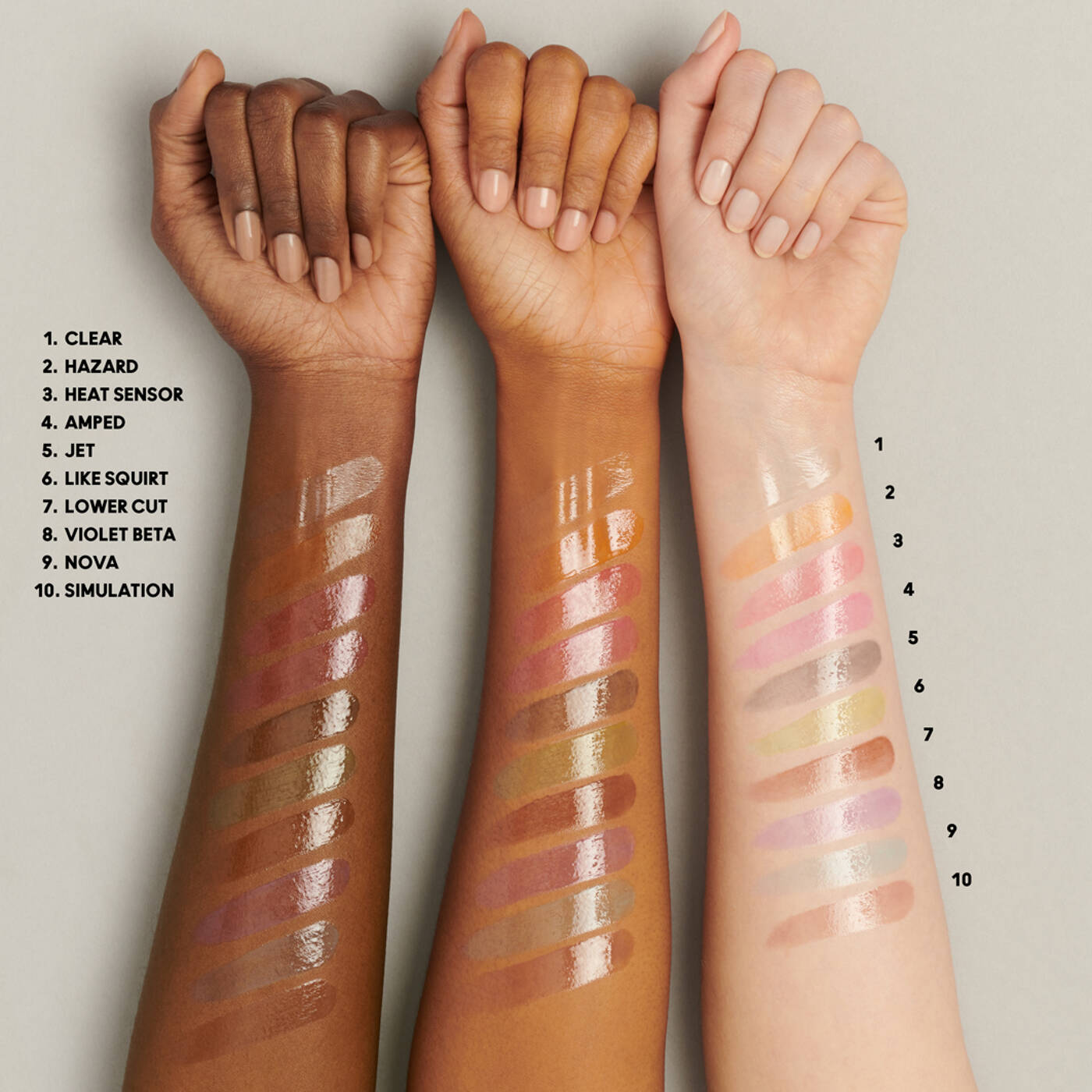 Glänzend, kräftig, prall, Baby! Hole dir den üppigen Glanz des It-Glosses, den Du lieben wirst - jetzt in neuen, frechen Farbtönen, die die Lippen mit saftiger, glänzender Farbe in einem Stick aufpolstern. Diese ach so prickelnden (und nicht klebenden!) Farbtöne gleiten lebendig auf die Lippen und schmelzen neutral dahin - für einen gepflegten, polierten und aufgeplusterten Schmollmund. Ingwerwurzelöl und Capsicum-Extrakt sorgen für Wärme, während Mentholkristalle kühlen - ein subtiles Prickeln, das für sofortige Aufpolsterung und sichtbares Volumen sorgt. Kokosnussöl, Sheabutter und Avocadoöl nähren, pflegen und verleihen glasigen Glanz.