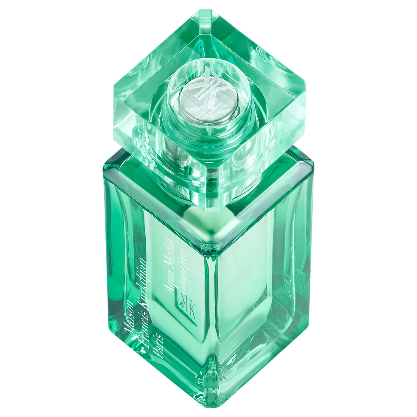 Grün, die Farbe des Wassers und des Lichts, ist die mittlere Farbe des Regenbogenprismas und spiegelt das Gleichgewicht in Bewegung wider. Es verkörpert die lebendige Frische von Aqua Media Cologne forte mit kalabrischer Bergamotte, Verbene, süßem Fenchel, Hedione und einem holzigen Moschusakkord.