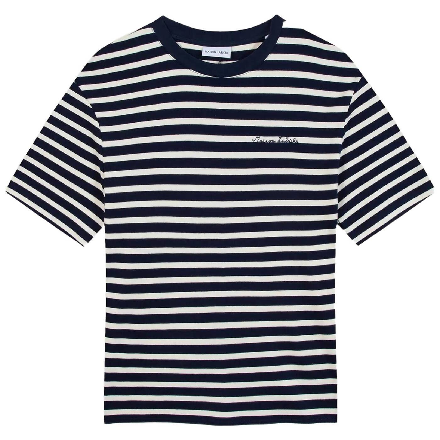 Das T-Shirt besticht durch seinen bequemen Schnitt, den gerippten Halsausschnitt und die Doppelnähte an Ärmel- und Saumabschluss. Es ist aus dickem, weichem Strick gefertigt und bietet höchsten Tragekomfort. Die Stickerei ist das neue Markenzeichen von Maison Labiche.