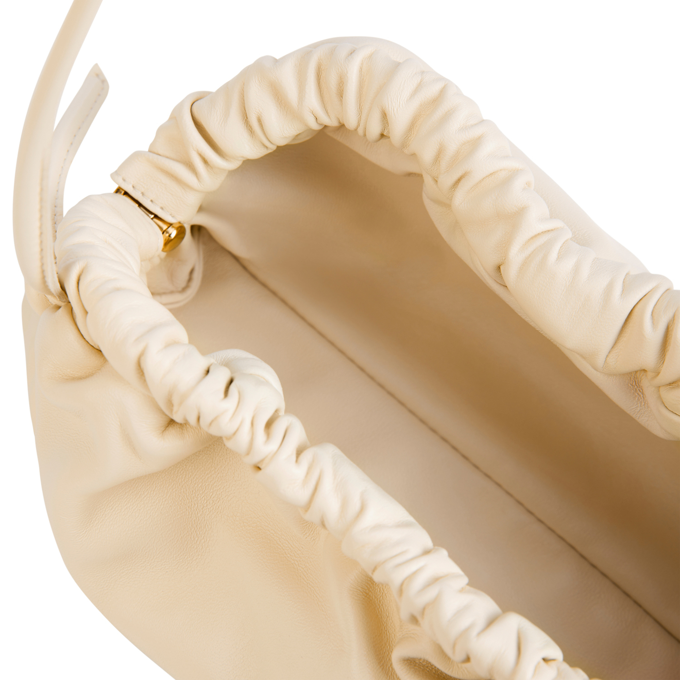 Sie wird aus geschmeidigem italienischem Lammleder handgefertigt und besticht durch ihre elegant geschwungene Form und einen Magnetverschluss. Sie kann als Clutch, Schultertasche, Umhängetasche oder Gürteltasche getragen werden.