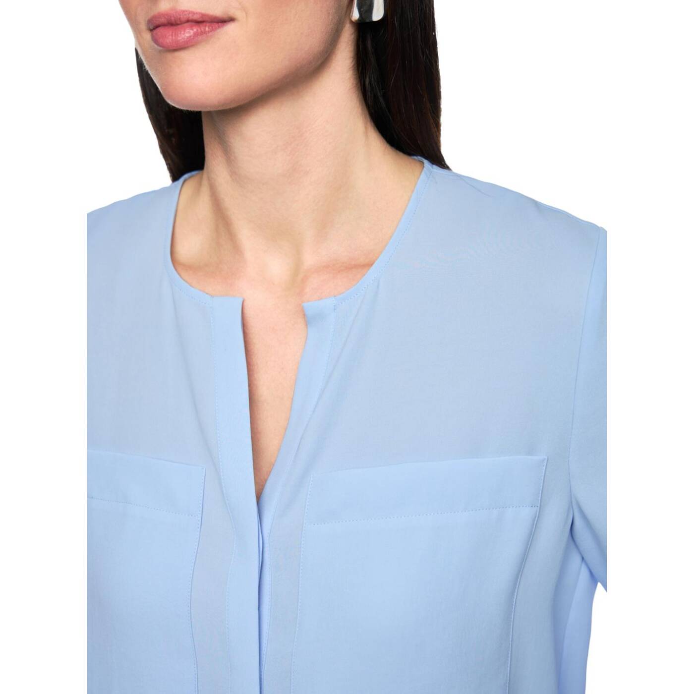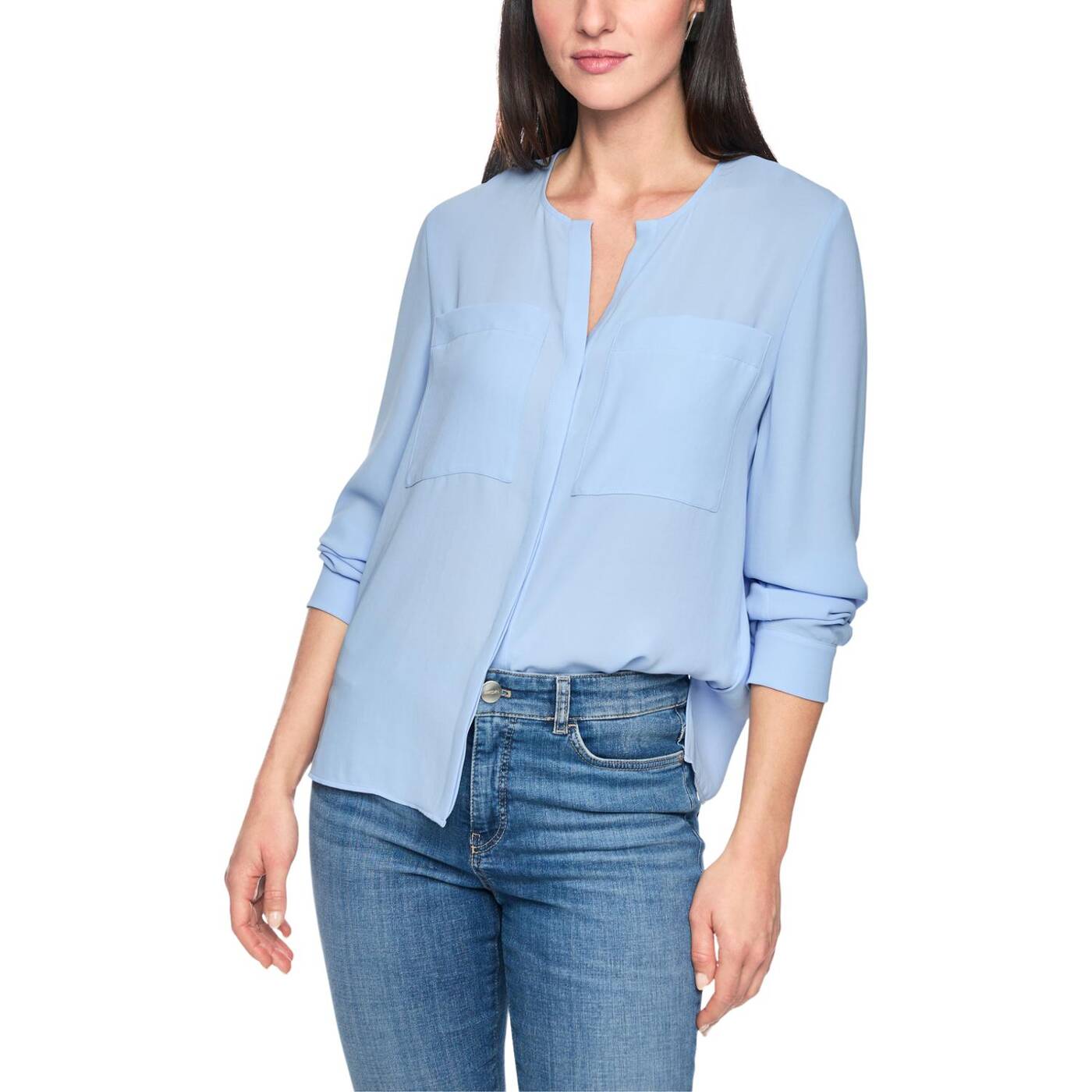 Legere bluse mit verdeckter knopfleiste|die leger geschnittene, unifarbene bluse mit verdeckter knopfleiste und zwei großen brusttaschen sorgt für einen modernen und cleanen look. seitliche schlitze sorgen für angenehme bewegungsfreiheit und einen schönen fall. vielseitig kombinierbar – perfekt zu rock oder hose und ideal auch zum darunterziehen. ein zeitloses essential für jeden tag.|leger geschnitten|unifarben|mit brusttaschen|weich fallender stoff|das model ist 179 cm groß und trägt n3/38.