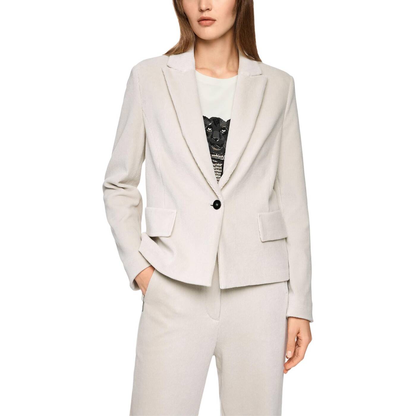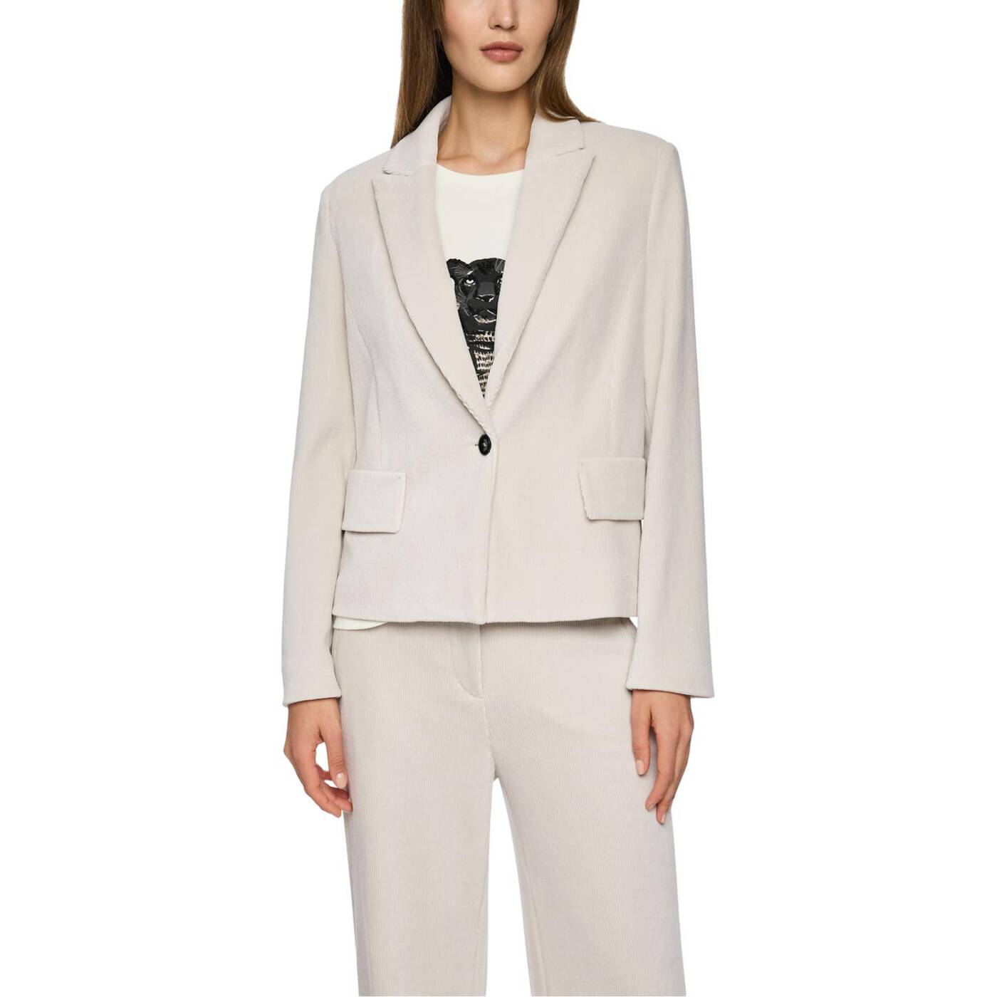 Stylischer Cordblazer aus hochwertigem Baumwollmix mit Elasthan für optimale Passform und Tragekomfort. Mit einem Knopf, Klappen vorne und einem kurzen, kastigen Schnitt für einen modernen Look. Vielseitig kombinierbar – ideal für Büro und Freizeit. Perfekt für alle, die Stil und Bequemlichkeit schätzen.