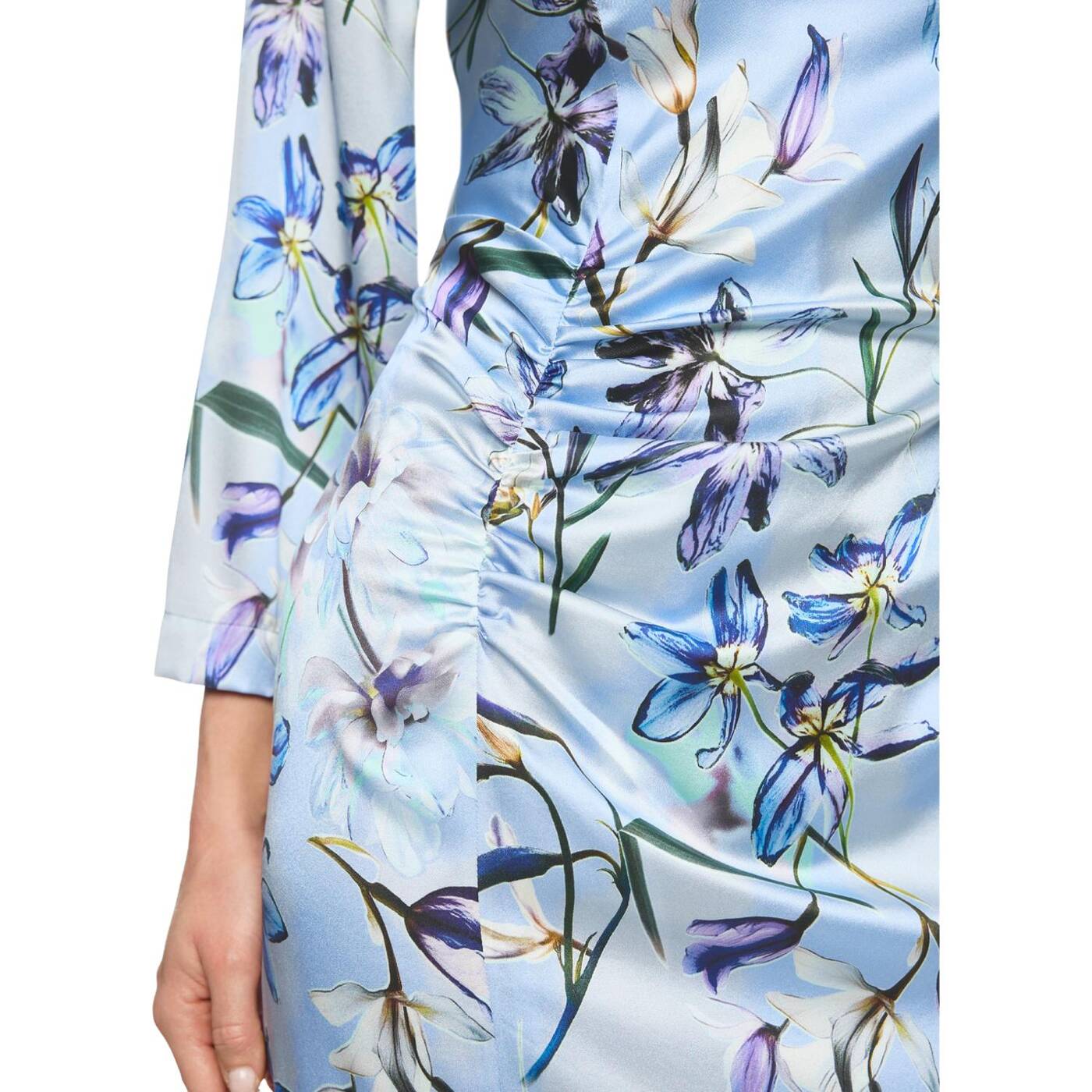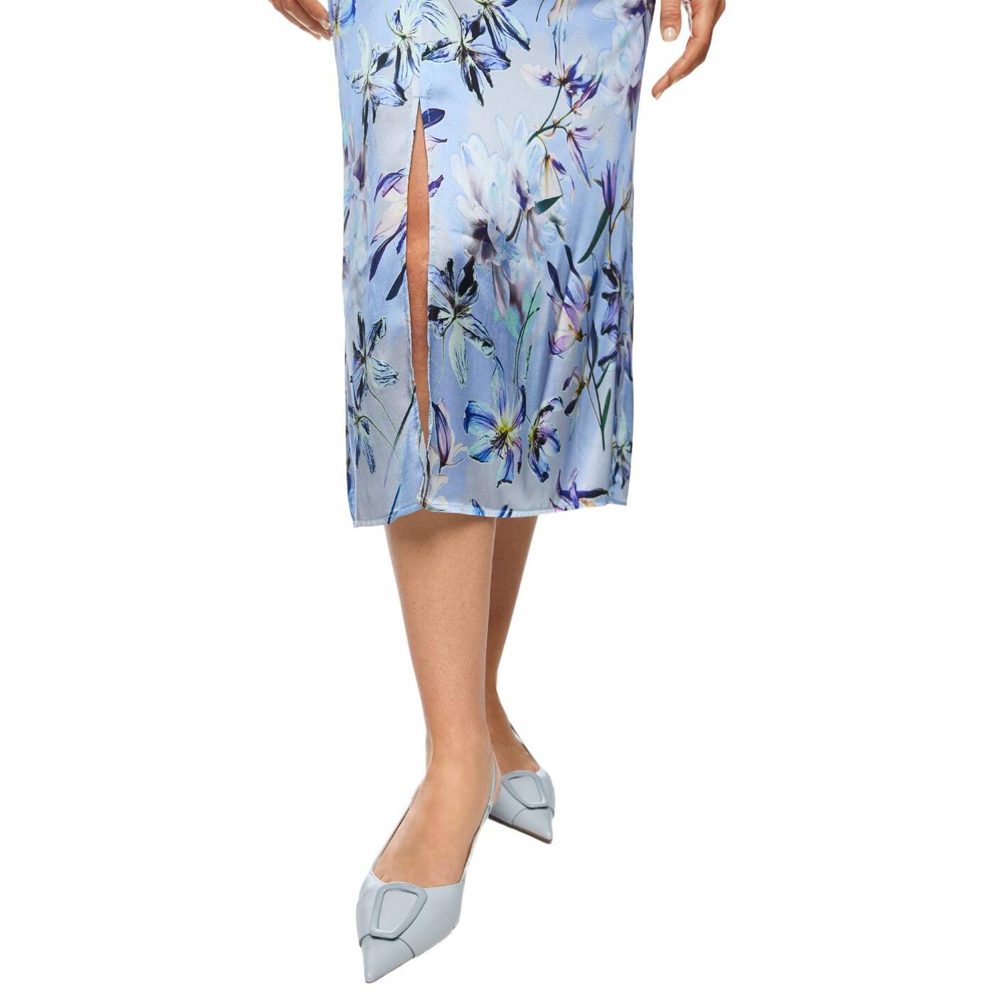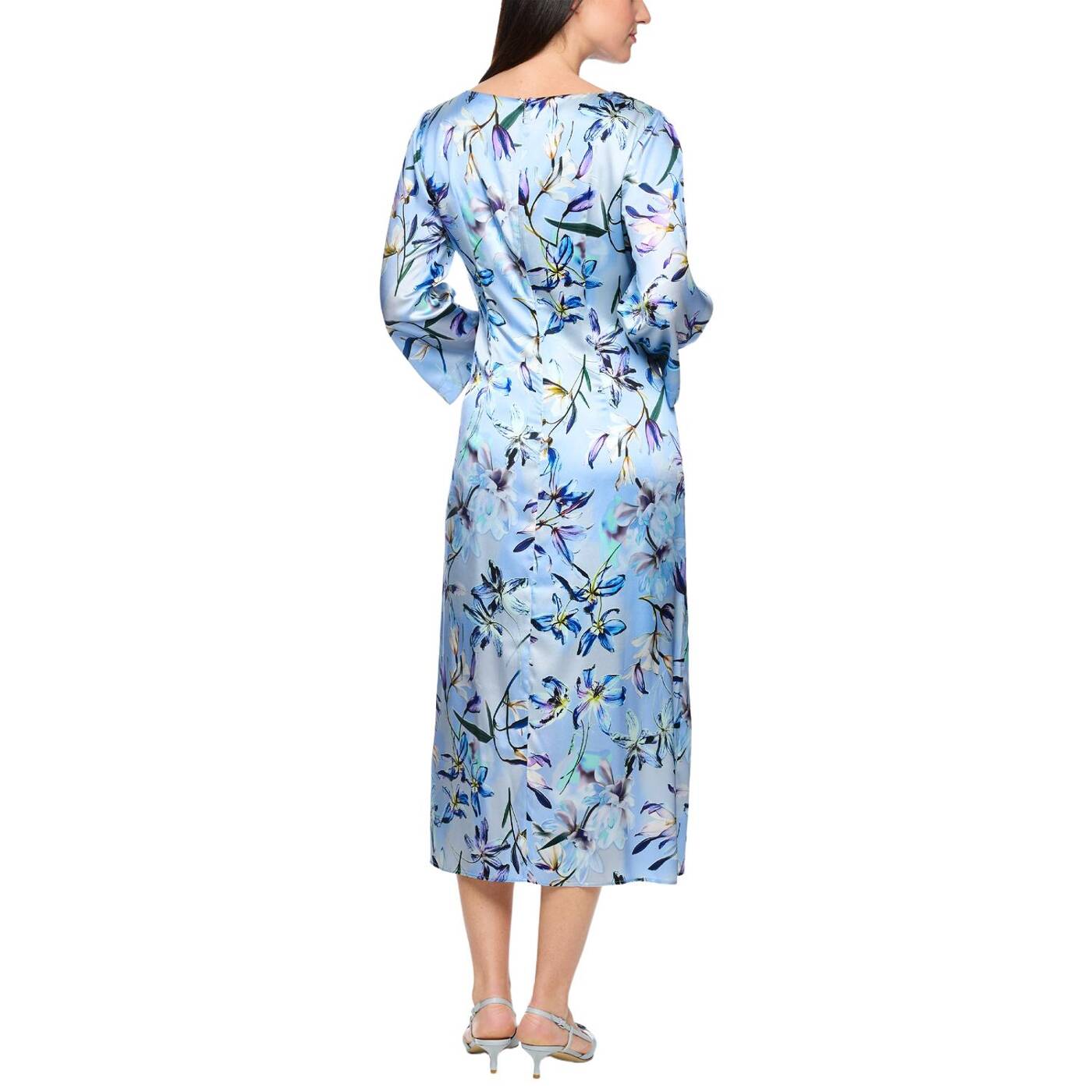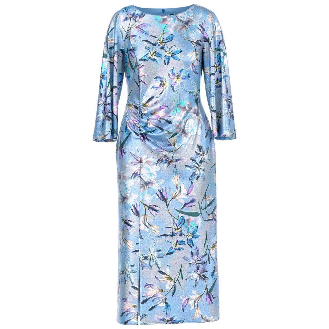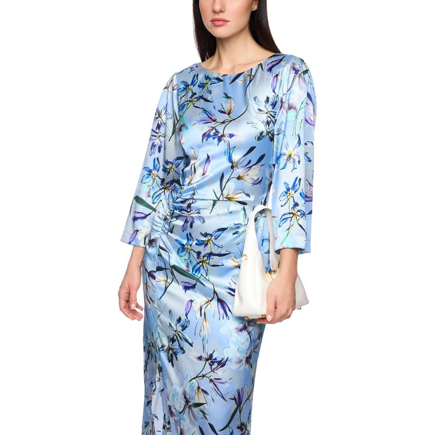 Midi-Kleid aus Seide mit Blumenprint|Das Midi-Kleid aus hochwertigem Seidengemisch besticht durch den U-Boot-Ausschnitt und die 3/4-Ärmeln. Der seitliche Beinschlitz und die Raffung an der Taille betonen die feminine Silhouette. Das Kleid zeigt ein florales Muster und überzeugt durch eleganten Fall und angenehme Tragequalität. Ideal für besondere Anlässe oder stilvolle Alltag Looks.|Taillierter Schnitt|U-Boot-Ausschnitt|Mit Innenfutter|Weich fließende Qualität|Das Model ist 179 cm groß und trägt N3/38.
