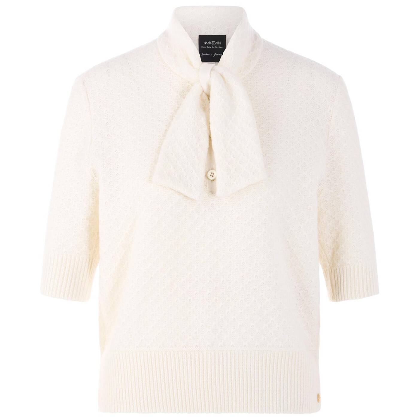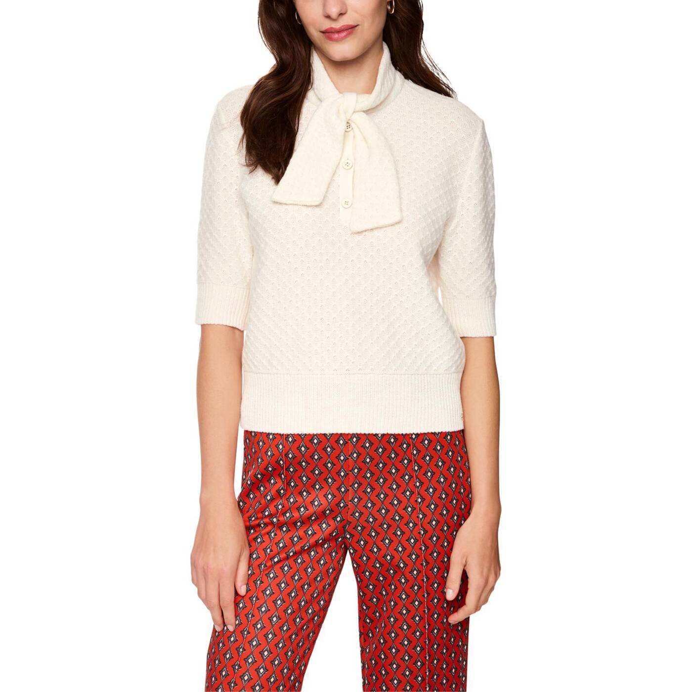 Femininer Pullover aus Schurwolle mit edlem Kaschmiranteil. Der Ajour-Strick sorgt für einen luxuriösen Look, während Rippdetails und eine kurze Knopfleiste stilvolle Akzente setzen. Die charmante Schluppe am Ausschnitt verleiht dem Design eine elegante Note. Mit dreiviertellangen Ärmeln und modernem Schnitt ist dieser Pullover der ideale Begleiter für Business und Freizeit.
