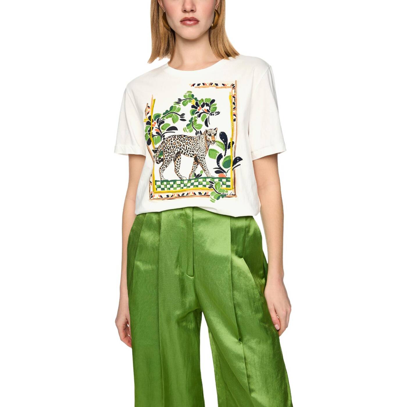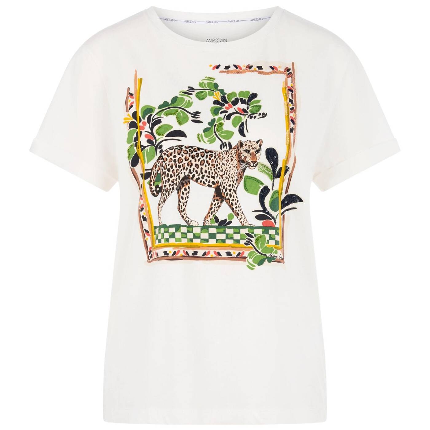 Baumwoll-Shirt mit Leo-Motiv|Das locker geschnittene Shirt aus reiner Baumwolle überzeugt mit platziertem Leomotiv und feinen aufgestickten Pailletten und Perlen. Der Rundhalsausschnitt und die kurzen, weiten Ärmel sorgen für ein entspanntes Tragegefühl.|Locker geschnitten|Platzierter Print|Rundhals|Kurze Ärmel