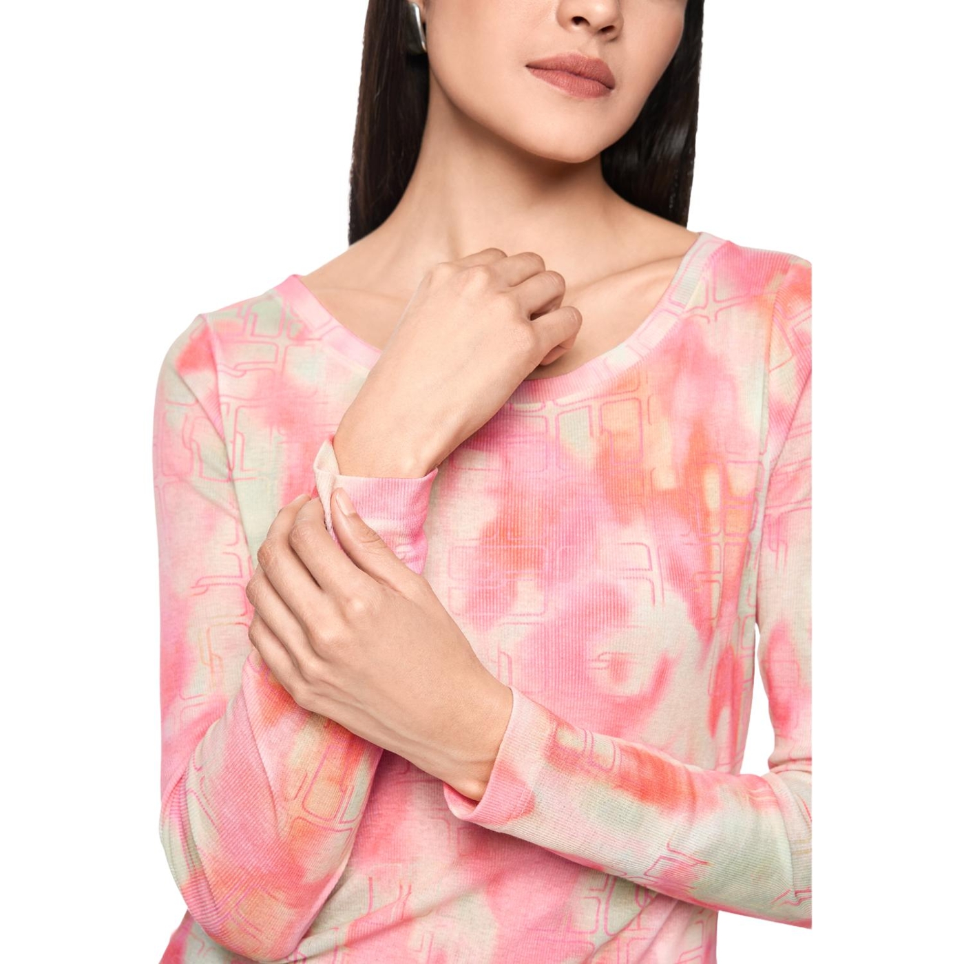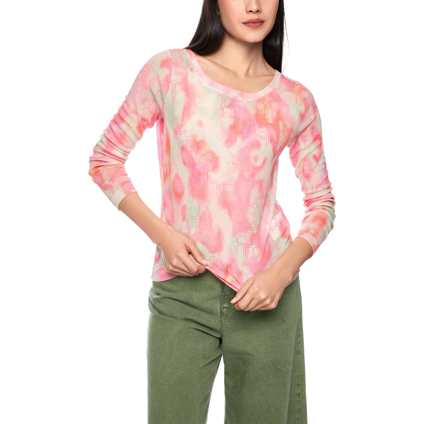 Langarmshirt mit Print|Dieses gerippte Langarmshirt besticht durch den modischen all-over Print mit Marc Cain Sports Logos. Es kommt mit figurnaher Form und eng anliegenden Ärmeln. Der Stoff aus weichem, geripptem Baumwollmix ist leicht transparent. Der runde Halsausschnitt ist leicht verbreitert. Das macht das Shirt zu einem echten Hingucker und gleichzeitig einem lässigen Basic für den Alltag.|Figurnahe Form|Breiter Runhals|All-over Print|Gerippt|Das Model ist 179 cm groß und trägt N3/38.