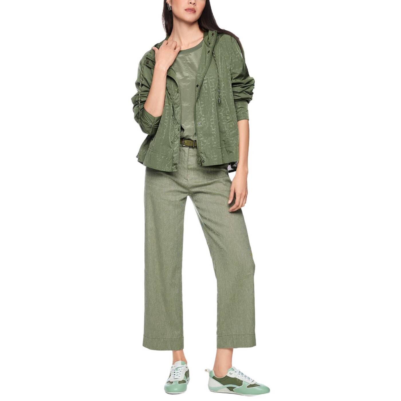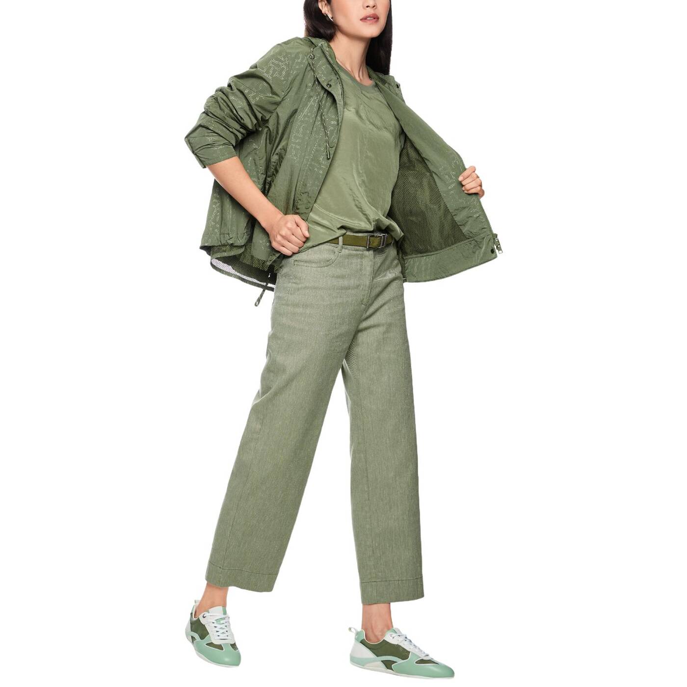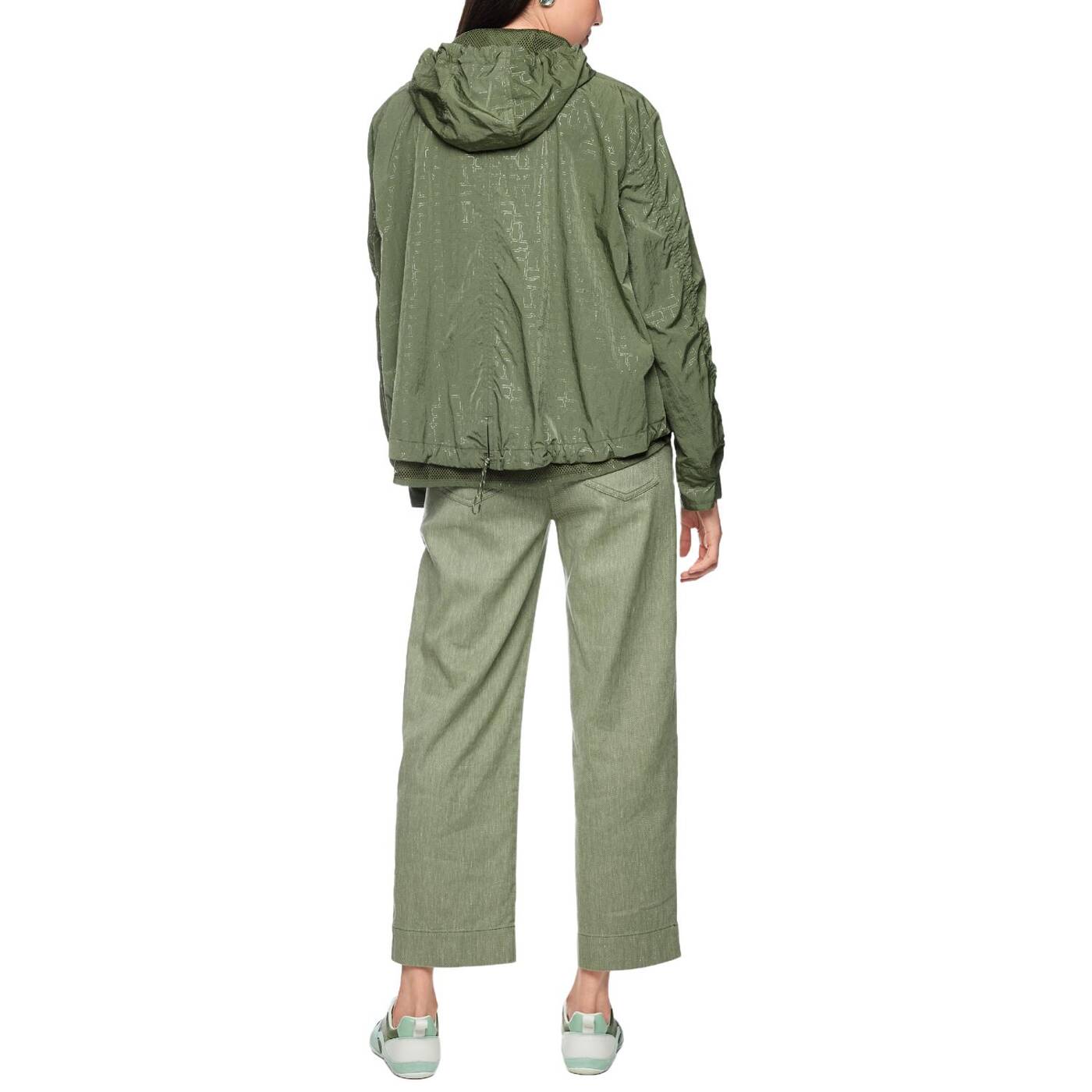 Diese leichte Outdoorjacke besticht durch viele besondere Details. Sie kommt im entspannten Schnitt und mit all-over bedrucktem Marc Cain Sports Logo. Das leichte Material ist angenehm zu tragen und die Kapuze sorgt für zusätzlichen Komfort bei schlechtem Wetter. Geschlossen wird die Jacke mit einem Reißverschluss und einer zusätzlichen Leiste mit Druckknöpfen. Seitliche Taschen und ein eingearbeitetes Netz-Futter im Inneren unterstreichen den sportlichen Touch.|Lockerer Schnitt|Mit Kapuze|Marc Cain Sports Logo|Reißverschluss|Das Model ist 179 cm groß und trägt N3/38.
