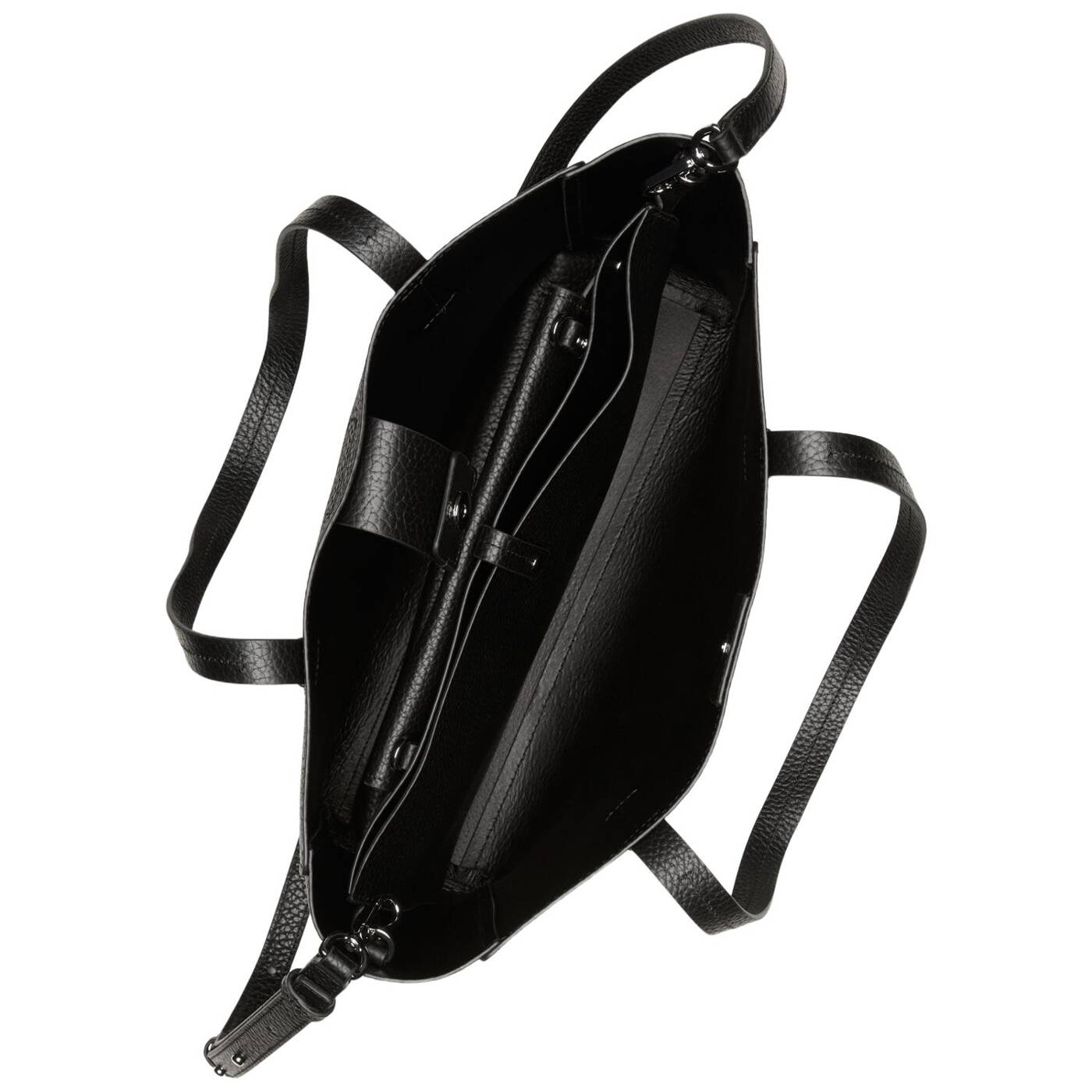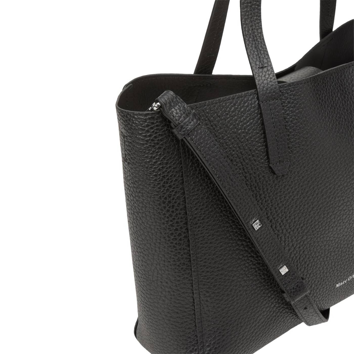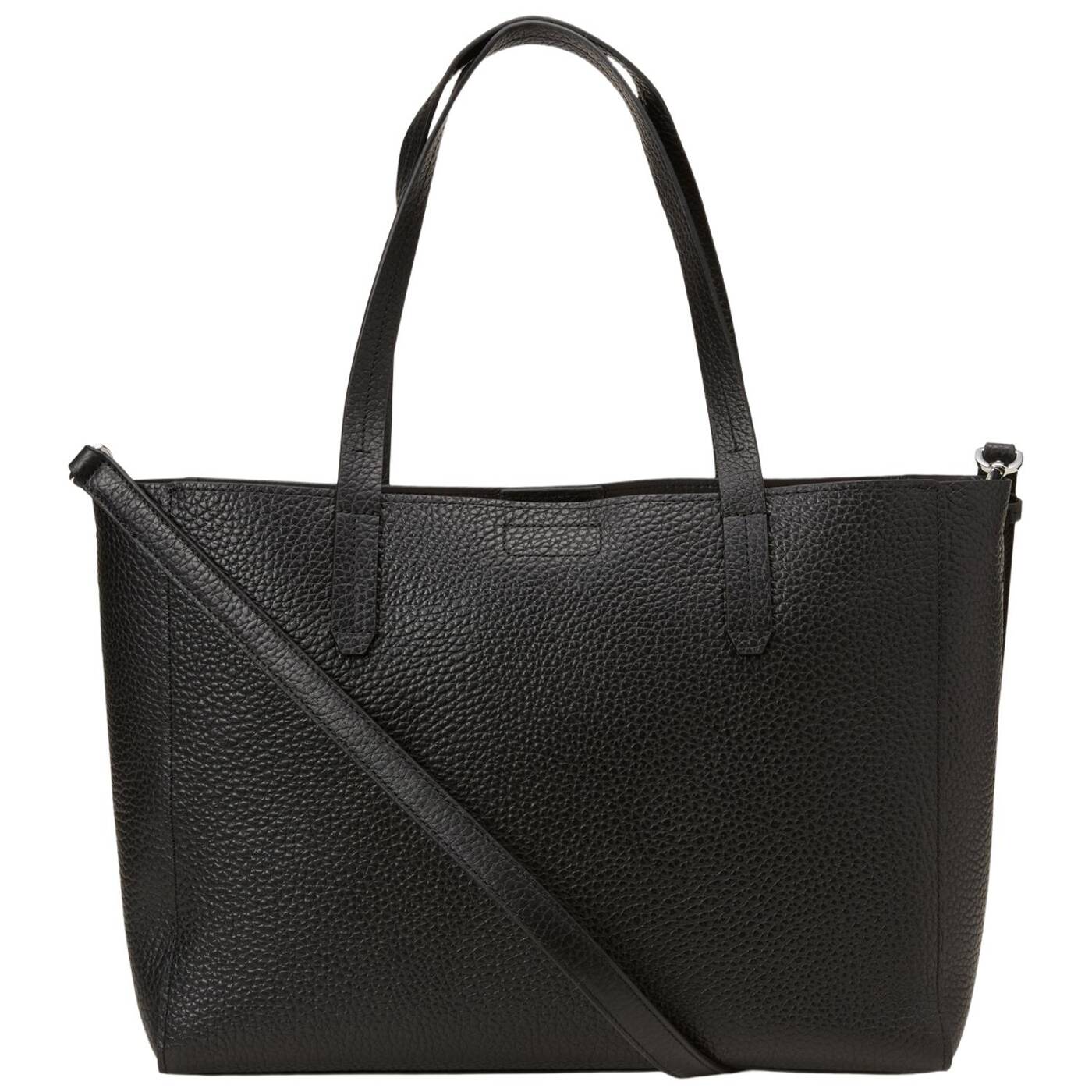 Für den entspannten city-trip: der geräumige 3-in-1 shopper aus der serie two tones, gefertigt aus robustem, natürlich genarbtem rindleder. das modell überzeugt mit einem großen hauptfach, das mit magnetverschluss gesichert wird. innen sorgt ein herausnehmbares laptop-mittelfach mit druckknopfverschluss sowie eine zusätzliche, abnehmbare pouch für übersicht und ordnung. beide sind dank druckknöpfen sicher an ihrem platz. praktisch: der kurze tragegriff und der abnehmbare, verstellbare schulterriemen bieten vielseitige tragevarianten.