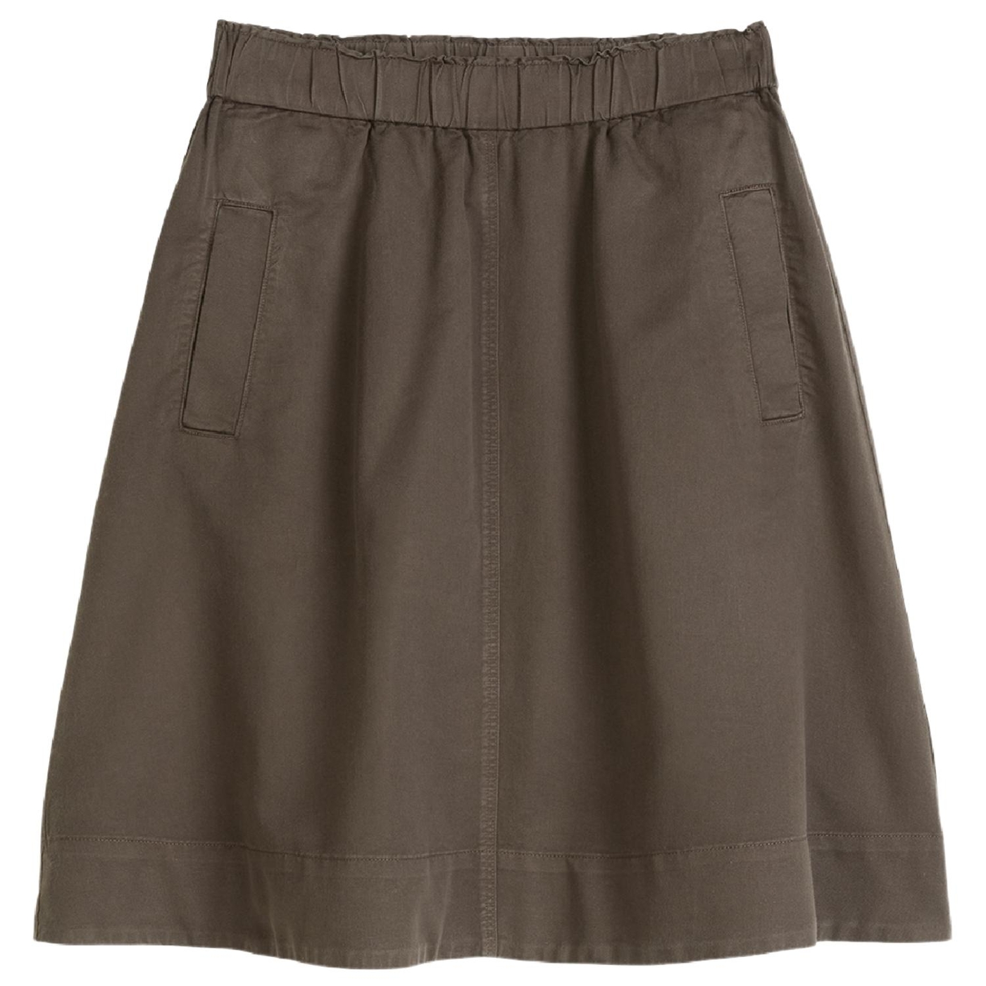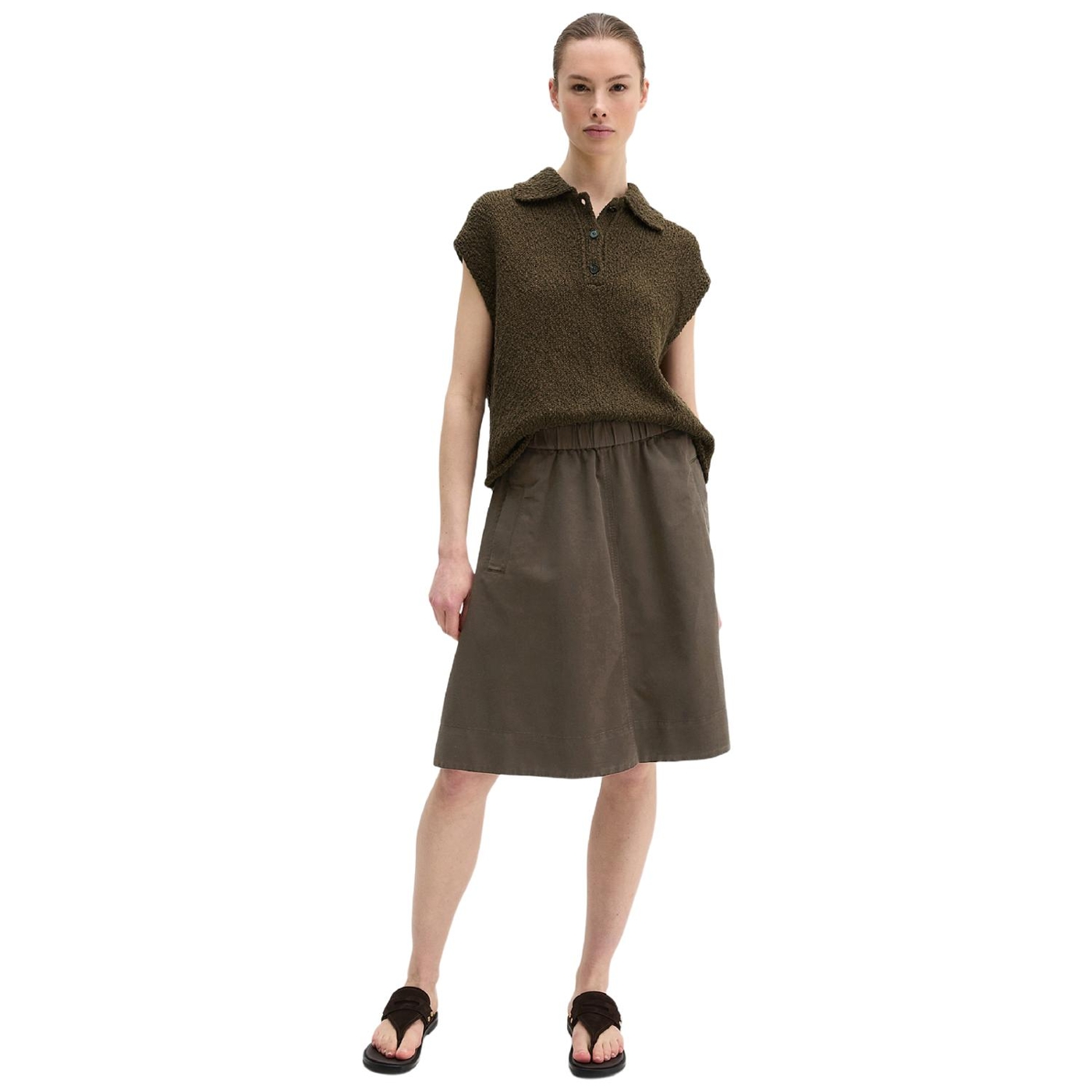Unkompliziert! mit genau einem wort lässt sich dieser kurze, ausgestellte rock beschreiben. das lässige schlupf-piece hat keinen verschluss und kann dank der elastischen taille einfach und problemlos angezogen werden. praktisch sind auch die beiden leisten-eingrifftaschen auf dem vorderteil. der rock hat eine moderate länge, eine lässige, ausgestellte silhouette und einen breiten saumabschluss. er ist nicht gefüttert. das material: ein hochwertiger mix aus bio-baumwolle, lyocell und leinen.