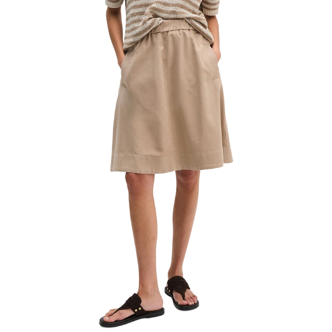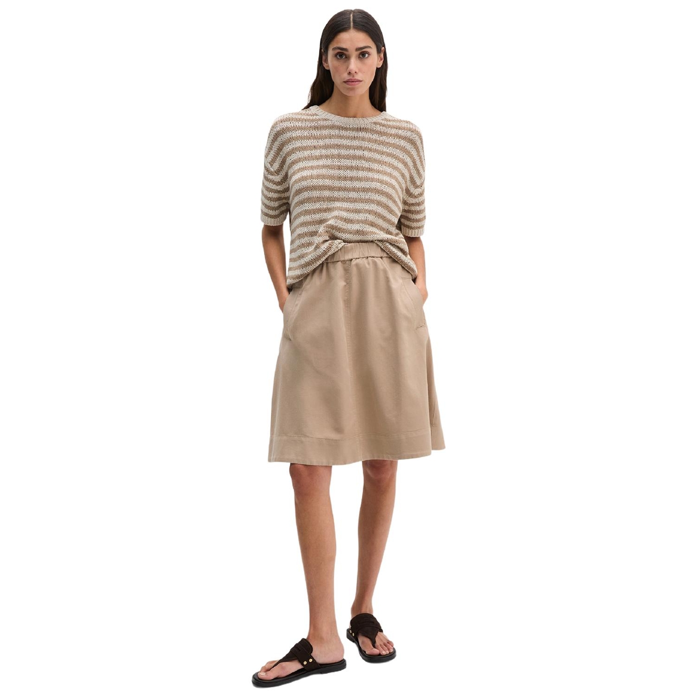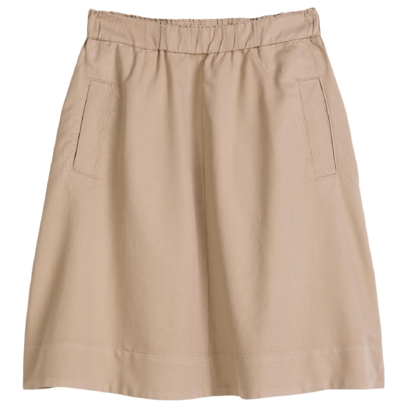 Unkompliziert! mit genau einem wort lässt sich dieser kurze, ausgestellte rock beschreiben. das lässige schlupf-piece hat keinen verschluss und kann dank der elastischen taille einfach und problemlos angezogen werden. praktisch sind auch die beiden leisten-eingrifftaschen auf dem vorderteil. der rock hat eine moderate länge, eine lässige, ausgestellte silhouette und einen breiten saumabschluss. er ist nicht gefüttert. das material: ein hochwertiger mix aus bio-baumwolle, lyocell und leinen.