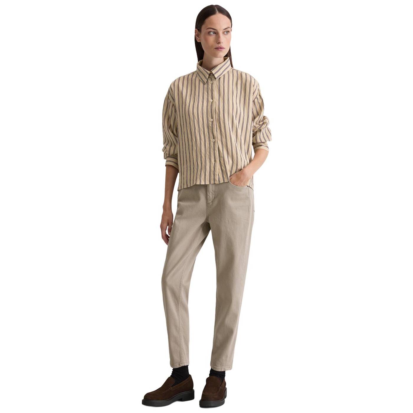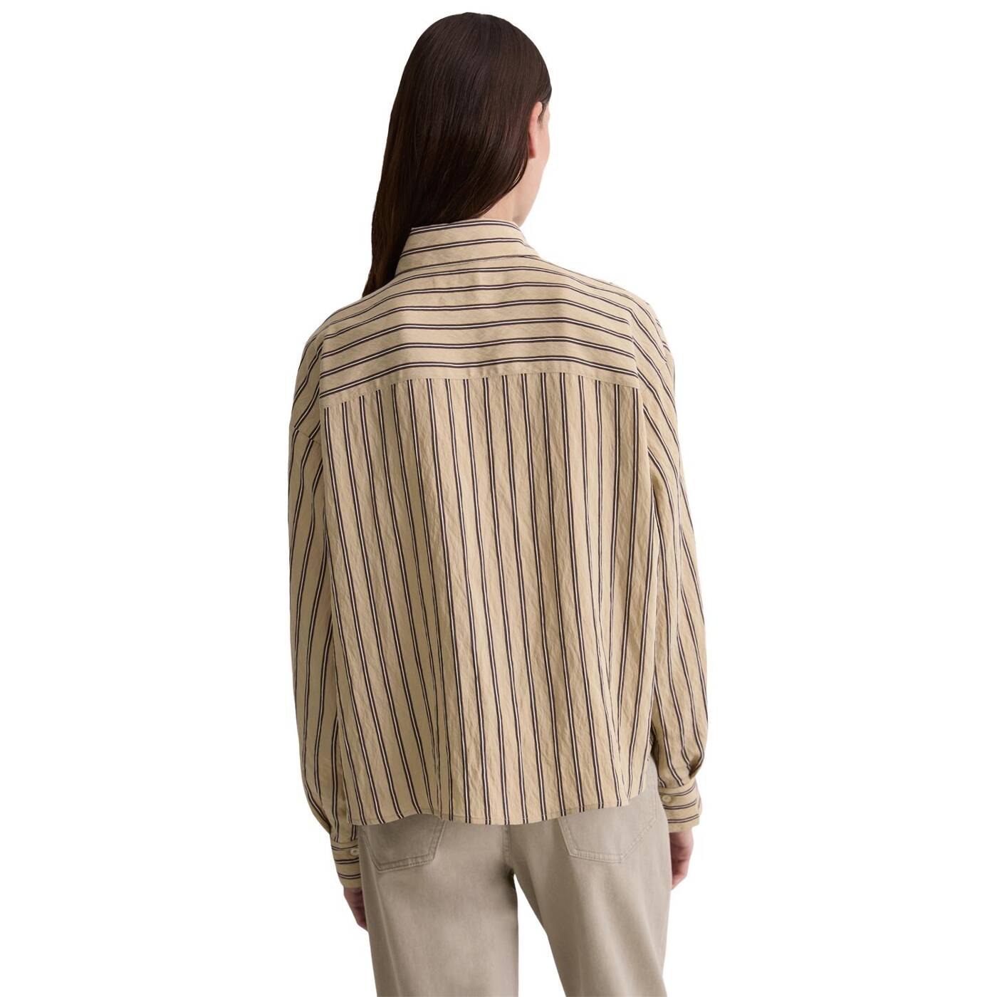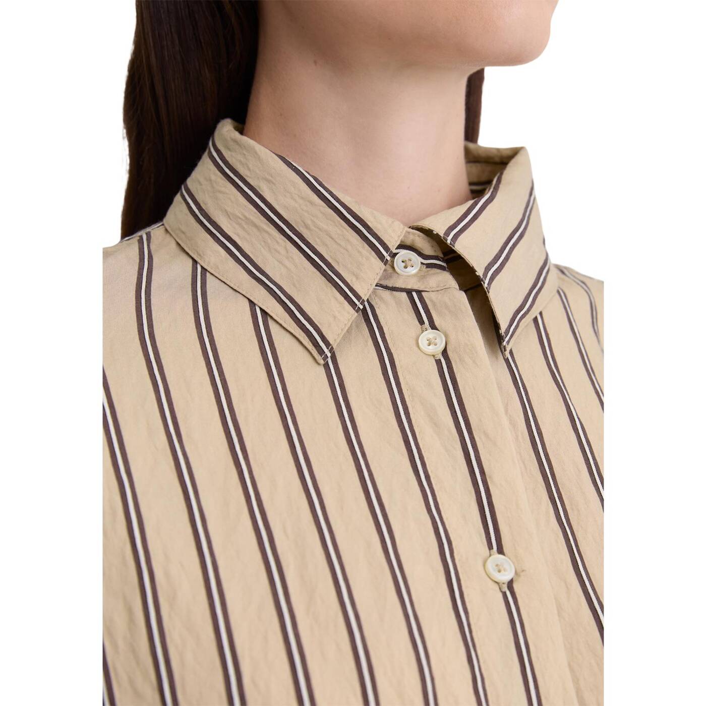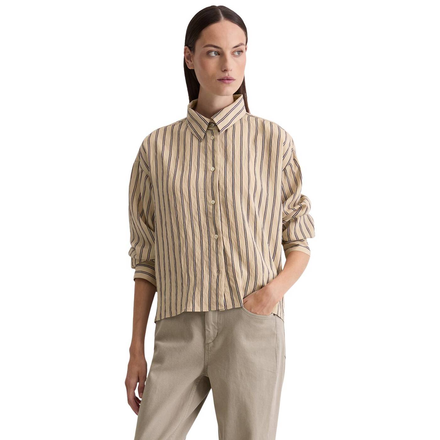 Lady Boss: Diese Streifenbluse ist perfekt für den modernen Büroalltag. Sie ist clean im Design, lässig in der Materialauswahl und sportlich in der Wirkung. Das locker und verkürzt geschnittene Modell verfügt über einen Kentkragen, eine Knopfleiste, stark überschnittene Schultern, klassische Blusenärmel, eine Schulterpasse und einen geraden Saum. Besonders ist die fein gewebte, garngefärbte Viskose-Mischqualität mit lässiger Crinkle-Optik. Styling-Tipp: Streifenbluse gepaart mit einer gut geschnitten Stoffhose und farblich kontrastierenden Lederballerinas - mit diesem kleinen Detail wird aus dem schlichten Outfit im Nu ein Style-Crush.