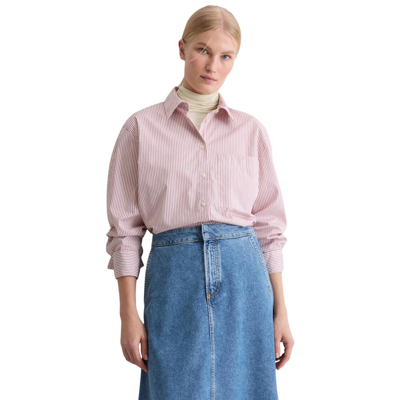Blusen begleiten uns durch alle Jahreszeiten und Saisons und werden dank der neuesten Trends nie langweilig. Die clean designte Streifenbluse aus reinem Baumwoll-Popeline hat eine klassische Knopfleiste, eine spezielle Schulter- und Ärmelverarbeitung und einen lässig gerundeten und in der Länge verstuften Saum. Sie hat eine lockere, entspannte Passform, lange Ärmel mit klassischem Manschettenabschluss, eine breite Schulterpasse mit mittiger Falte, eine aufgesetzte Brusttasche und markante, hohe Seitennahtschlitze. Styling-Tipp: mit Straight Leg Jeans kombinieren und einen langen Blazer über die Schulter werfen.