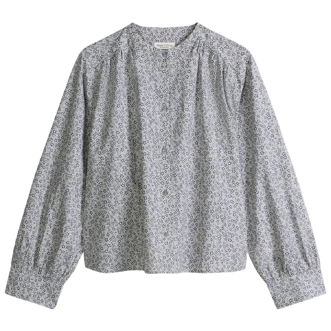 Diese bluse ist ein absolutes must-have für alle modefans. sie hat eine wunderbare eigenschaft: sie lässt jedes outfit auf anhieb stylischer wirken – egal, ob es lässig oder elegant kombiniert wird. verantwortlich dafür sind die stark gerafften partien an den schultern, der passe und den ärmelabschlüssen sowie der coole allover-print. das modell hat einen entspannten, lockeren schnitt, einen modernen stehkragen, eine knopfleiste und eine markant geschwungene saumlinie. das material ist eine hochwertige, gewaschene papertouch-popeline in leichter qualität.