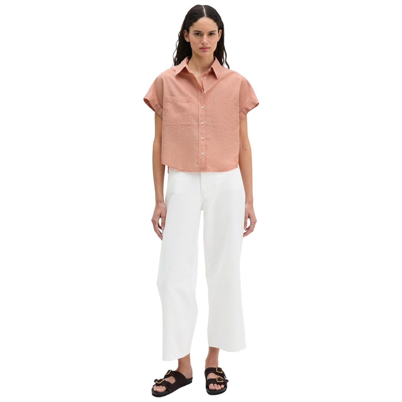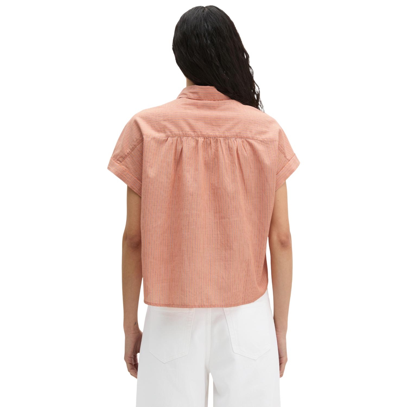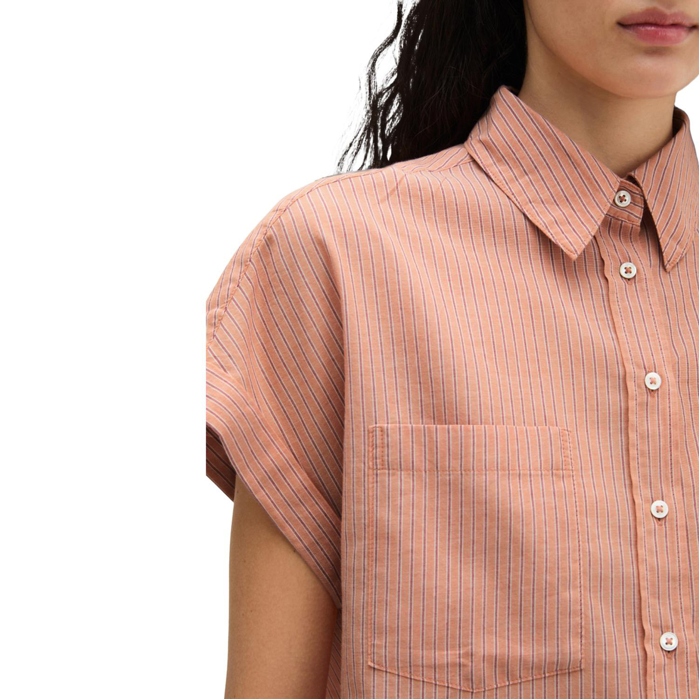 Egal, ob zur leinenhose, zur jeans, zur wide-leg-pants, zum jeansrock oder zur shorts: die lässige streifenbluse upgraded jeden look. das locker geschnittene modell aus reiner bio-baumwolle ist aus garngefärbtem, gestreiften baumwoll-voile gefertigt und verfügt über einen schmalen kragen sowie überschnittene schultern bzw. angeschnittene, kurze ärmel mit aufschlag. die bluse wird vorne klassisch durchgeknöpft und hat zwei aufgesetzte brusttaschen, eine rückenpasse mit geraffter partie sowie eine geschwungene saumlinie.
