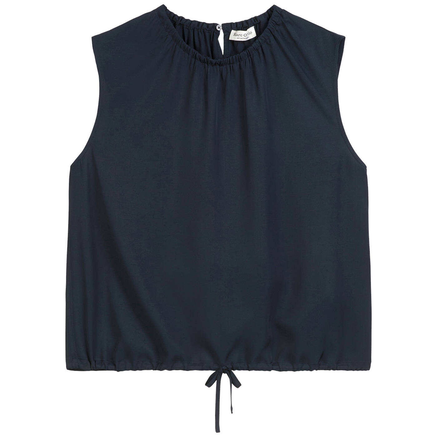 It's a match. Ergibt zusammen mit dem passenden Rock DEN Trend des Sommers: den Co-Ord-Look. Hier entstehen lässige Ensembles, bei denen Farben und Materialien aufeinander abgestimmt sind. Die ärmellose Bluse hat einen gerafften, elastischen Rundhalsausschnitt mit Knopf-Schlaufe-Verschluss im Nacken und einen Tunnelzug mit Bindeband am Saum. Die Qualität: ein edler, matt glänzender Viskose-Twill.