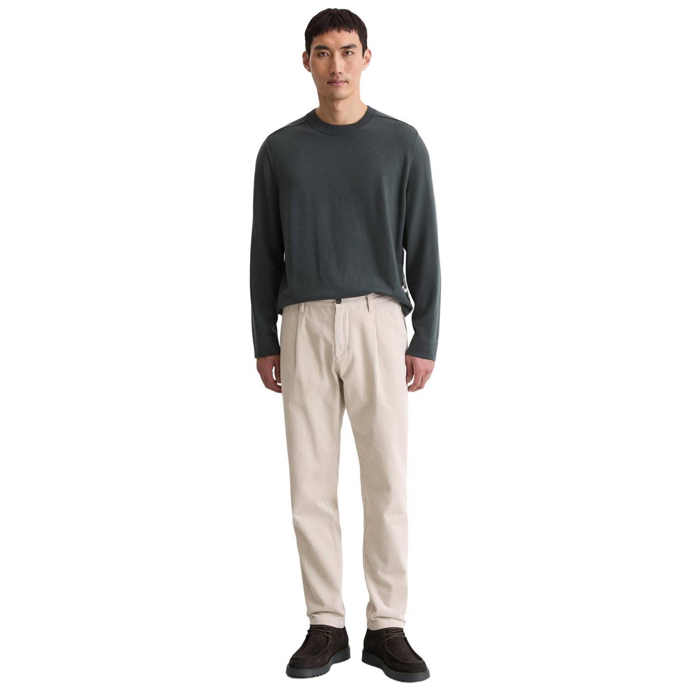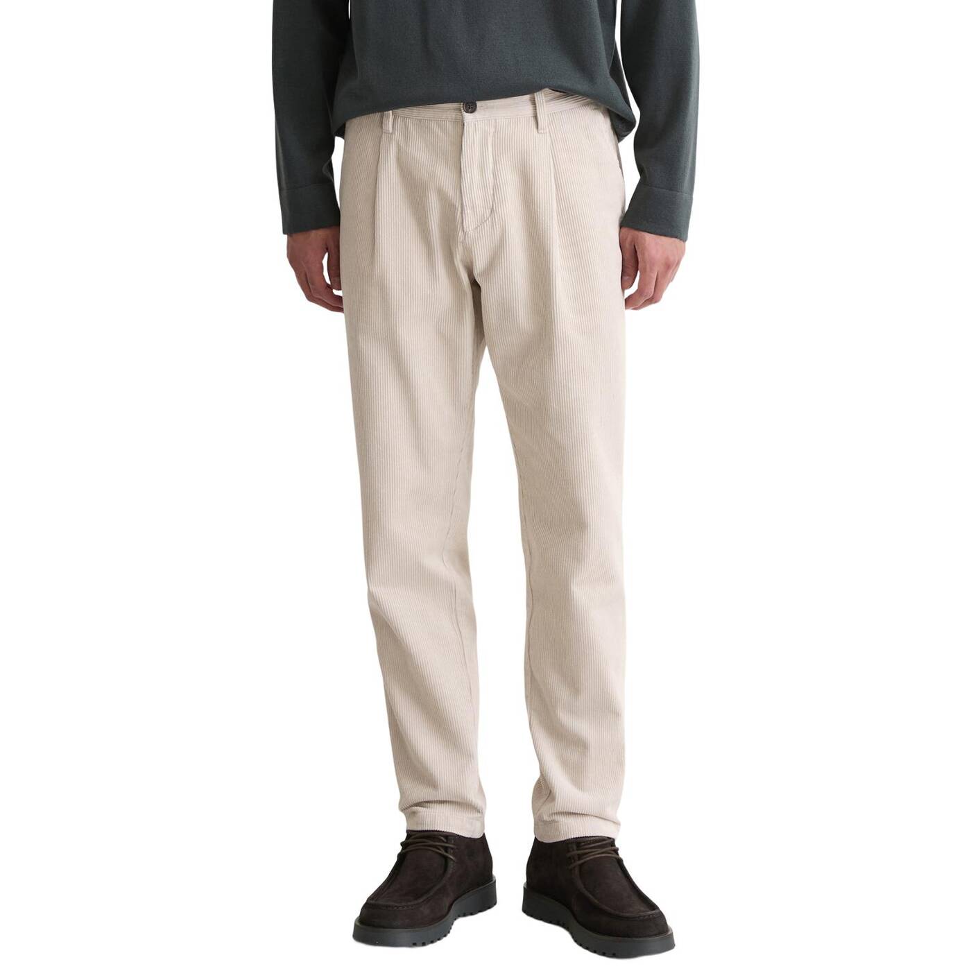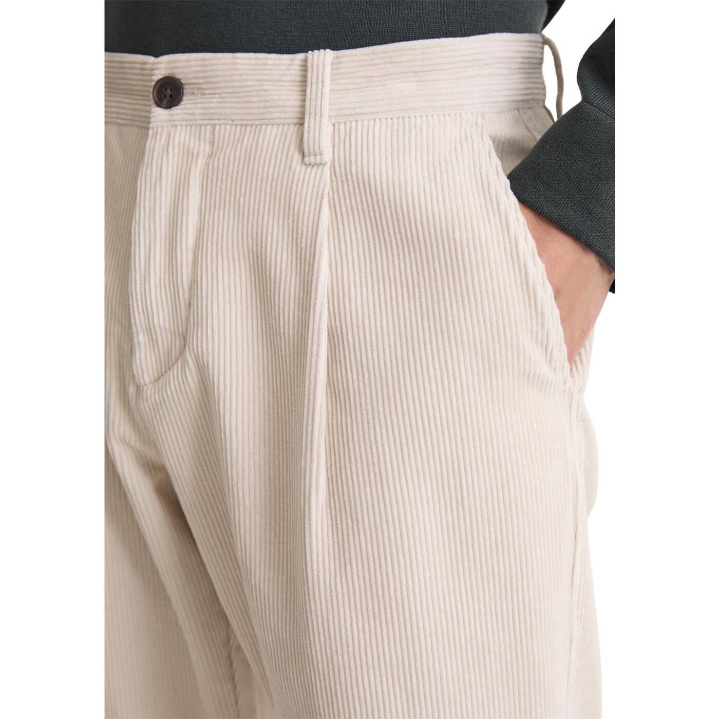 Cordhose aus reiner bio-baumwolle mit weicher rippstruktur und charaktervollem look. tapered fit mit schmal zulaufendem bein, französische eingrifftaschen vorn, geknöpfte paspeltaschen hinten. der überlappende doppelknopfverschluss und das garment-waschverfahren verleihen der hose eine authentische note. mit reißverschluss. vielseitig kombinierbar – lässig oder gepflegt.