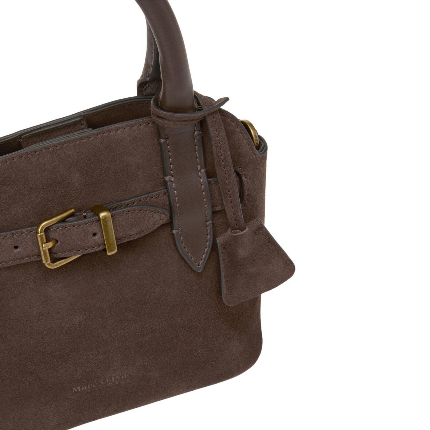 Kompakt, funktional und aus weichem velours-rindleder gefertigt: die crossbody bag small verbindet alltagstauglichkeit mit lässigem charme. das kontrastfarbene futter aus organic cotton, ein innenliegendes münzfach aus leder und der magnetverschluss sorgen für eine durchdachte ausstattung. der kurze tragegriff liegt angenehm in der hand und lässt sich mit einem kleinen riemen zusätzlich sichern. seitlich ist der abnehmbare, längenverstellbare schulterriemen mit karabinerhaken befestigt. ein besonderer blickfang: der verstellbare riemen aus veloursleder, der dekorativ um die tasche geführt ist. highlight: der abnehmbare anhänger mit logomünze – ebenfalls aus veloursleder gefertigt.
