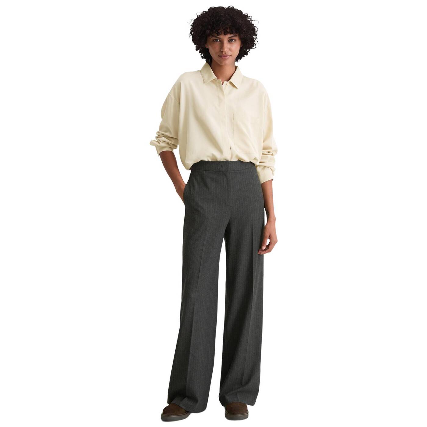 Nicht zu lang, nicht zu kurz, nicht zu weit, nicht zu eng – eine neue hosenform erobert die modewelt: die long-leg-culotte in attraktiver knöchellänge. sie ist die perfekte hose für elegante office-styles und lässige alltagsoutfits. die taille sitzt eng, nach unten hin wird das bein lockerer. geschlossen wird die hose mit einem cleanen bund und einem verdeckten haken- und reißverschluss. sie verfügt über seitliche naht-eingrifftaschen und eine paspeltasche auf dem gesäß. in kombination mit einem schlichten strickpullover und klassischen boots entsteht ein schöner casual-look. das dessin-material ist ein sehr weicher, angerauter flanell aus einer mischung aus recyceltem polyester, geschmeidiger viskose und dehnbarem elasthan. und zeigt sich entweder mit feinen nadelstreifen oder herrinbone-muster.