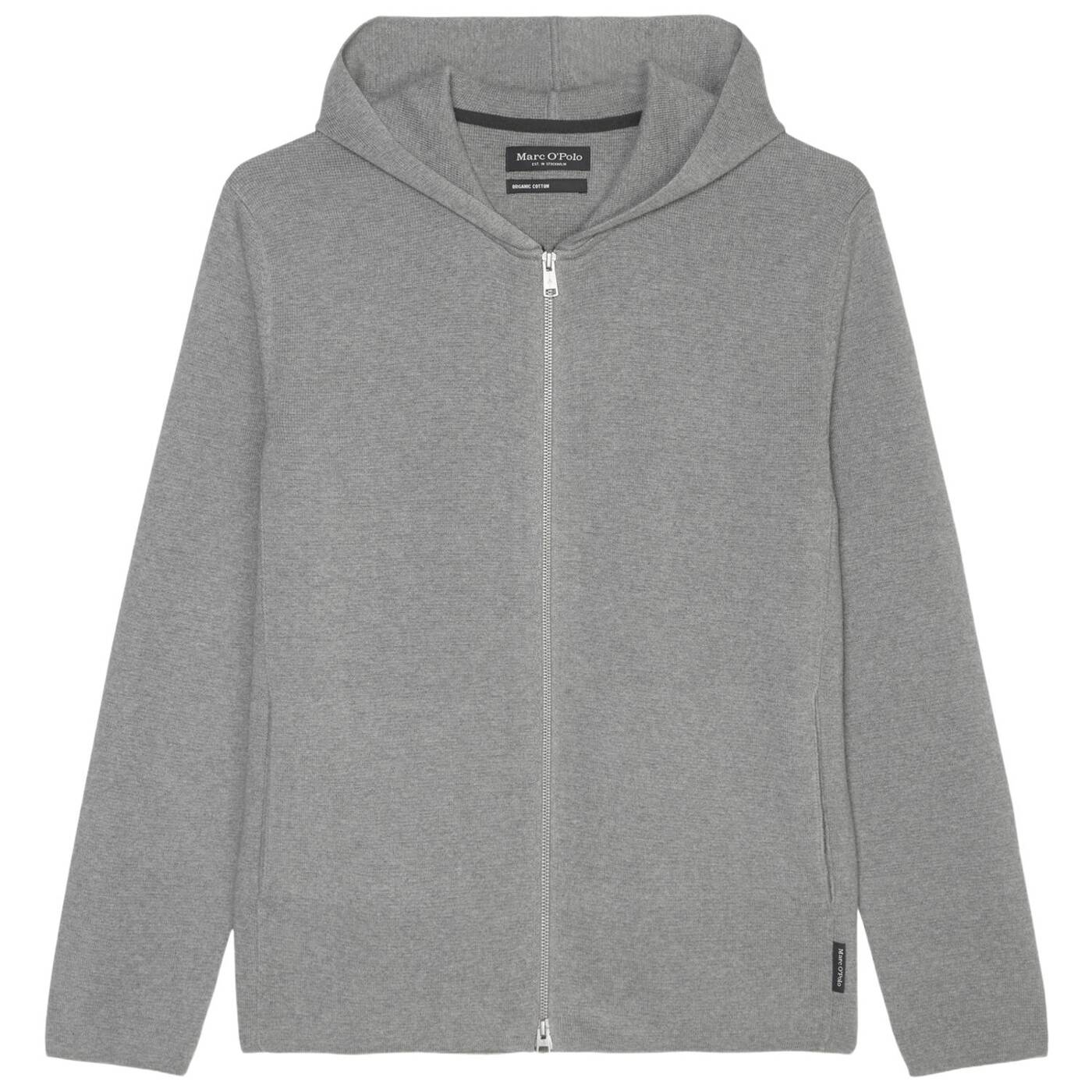 Lässig & sportiv: die hochwertige kapuzenjacke aus milano-strick mit dreidimensionalem reliefmuster. perfekt für die freizeit mit großer kapuze, seitlichen eingrifftaschen und vorverlegten seitennähten. im klassischen regular fit lässt sie sich mit einem metallreißverschluss von oben oder unten öffnen. die langen ärmel und der gerade saum schließen mit schmalen bündchen ab. in die seitennaht ist ein dezentes logo-label eingearbeitet. designed for circularity: die strickjacke wurde gemäß der designkriterien für zirkuläres design entworfen, sodass sie schließlich einfacher recycelt werden kann.