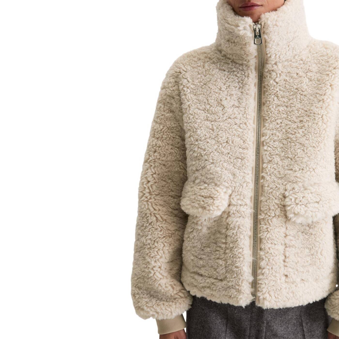 Die leichtere und kürzere Variante des beliebten Teddymantels und unangefochtener Fashion-Liebling: die Teddyjacke aus weichem Curly-Plüsch aus recyceltem Polyester mit kernigem Metall-Frontzipper mit Paspelverarbeitung. Sie hat einen sportiven Regular Fit, einen hohen Stehkragen, überschnittene Schultern, lange Ärmel mit weichen Rippstrickbündchen und markante Klappentaschen. Für ein modernes Silhouetten-Spiel kann der Saum mittels Tunnelzug verstellt werden, wodurch sich die gerade Passform zu einem angesagten O-Shape ändert. Die Jacke ist komplett gefüttert und hat auf der Innenseite praktische, zusätzliche Tasche.