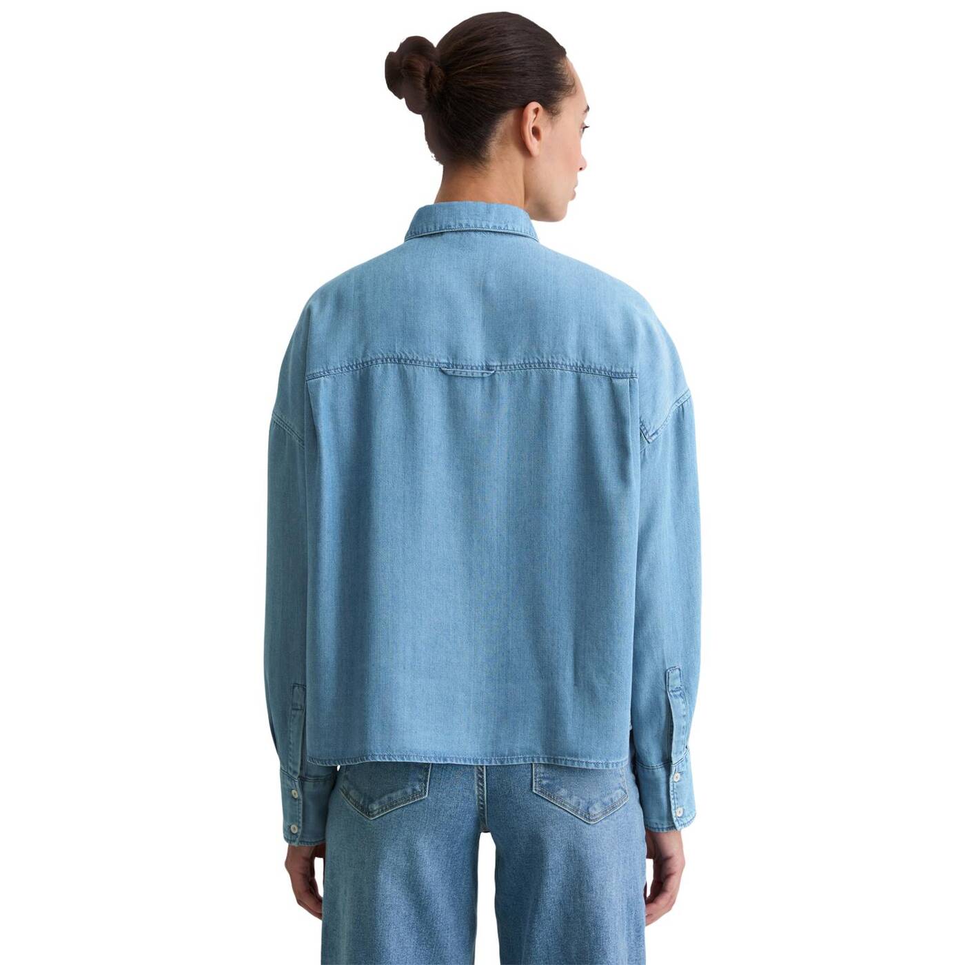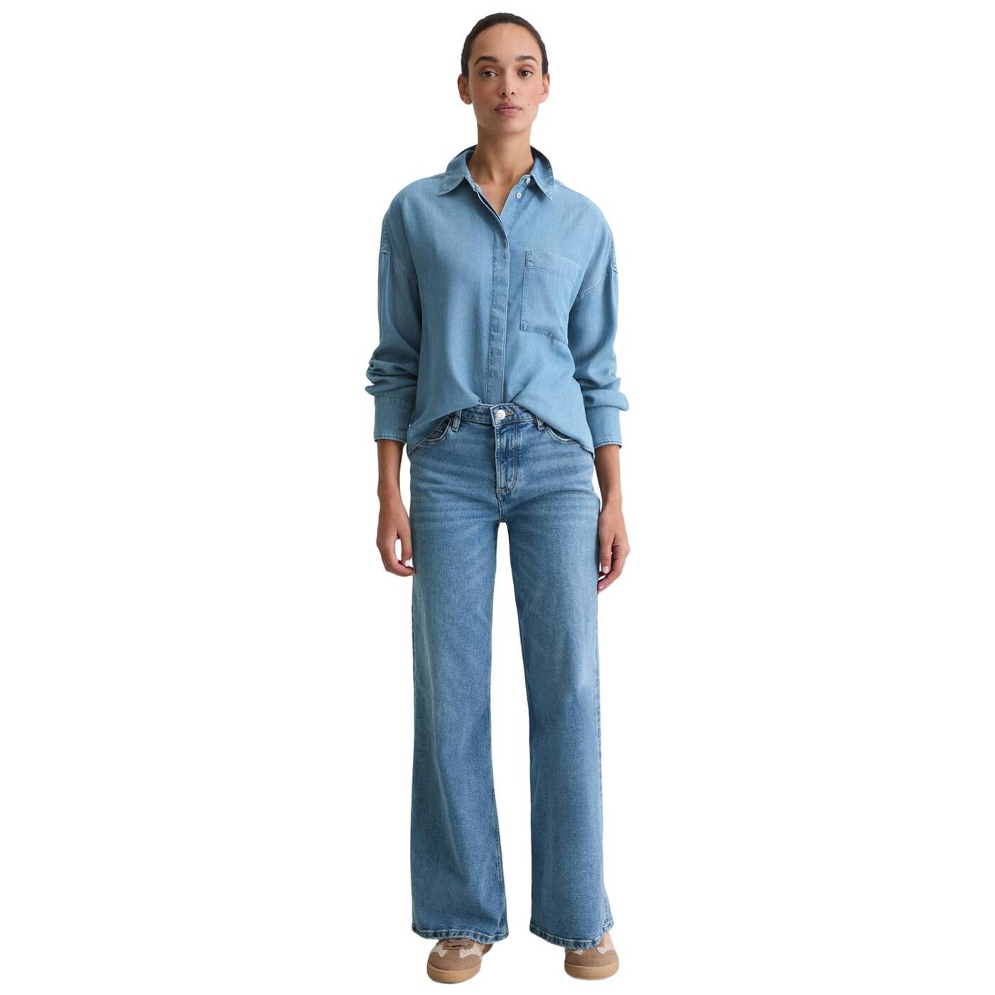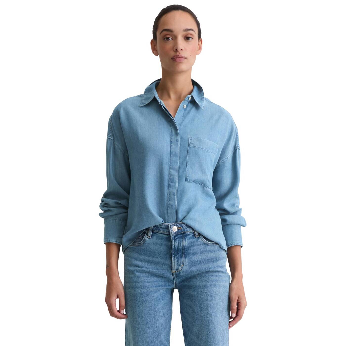 Jeans sind in dieser Saison wieder absolut im Trend – und das nicht nur als Hose. Ein neues, vielseitiges und zeitloses Modell ist diese lässige, locker geschnittene Bluse aus superweichem, fließendem Lyocell-Denim-Stoff. Sie verfügt über klassische Details wie einen schmalen Kentkragen, eine verdeckte Knopfleiste, klassische Blusenärmel, eine Rückenpasse mit Aufhänger-Detail, überschnittene Schultern, eine aufgesetzte Brusttasche und eine gerade Saumlinie. Unser Styling-Tipp: Denim zu Denim kombinieren. Der Total-Look in Jeans wirkt nicht nur cool, sondern auch elegant.