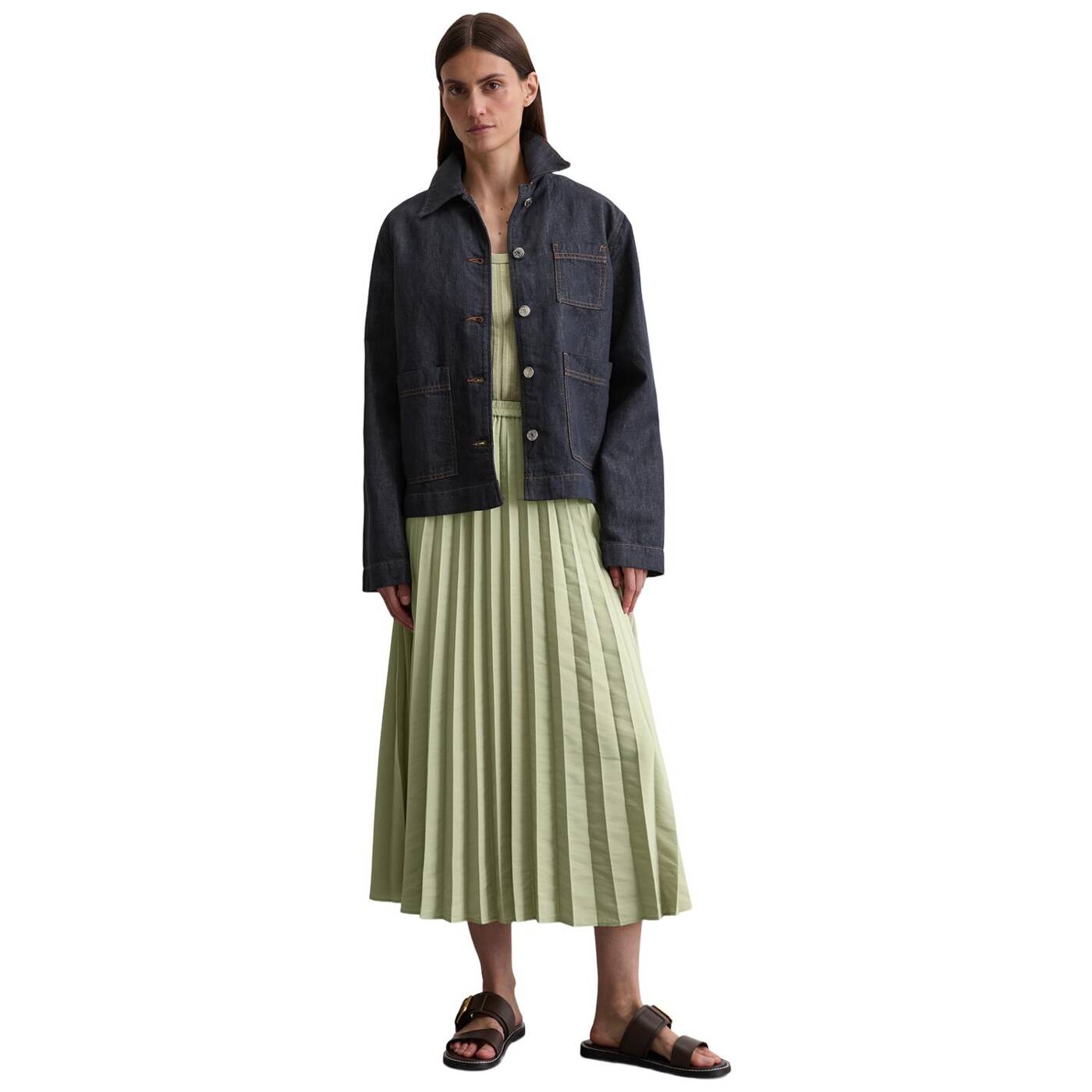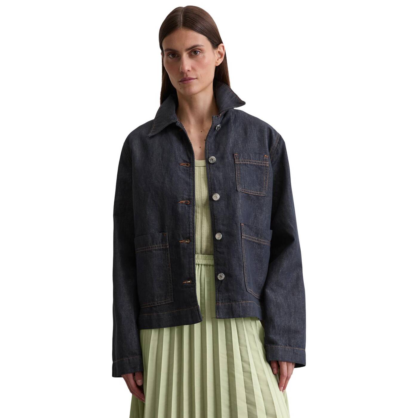 Wir lieben Jeansjacken. Sie begleitet uns auch an wärmeren Tagen über Baumwollkleidern, Hosen und Shorts aus Leinen und Röcken. Die Jeansjacke ist nicht einfach nur eine Jacke - sie ist ein modisches Statement. Umso schöner, dass wir jetzt eine neue, moderne Alternative aus einem sattblauen Bio-Baumwoll-Leinen-Mix anbieten können. Die beiden Naturmaterialien gehen eine edle Verbindung ein, bei der die guten Eigenschaften beider Fasern für ein tolles Tragegefühl, eine hohe Farbbrillanz und einen edlen Materialglanz sorgen. In klassischem Dunkelblau mit Kontrastnähten und neuer Linienführung mit weiten, ausgestellten Ärmeln, Kragen, Knopfleiste, breiter Rückenpasse und insgesamt drei aufgesetzten Taschen. It's a match: Passt perfekt zu Jeansmodell Tolva und dem kleinen Wickelrock aus dem gleichen Material.