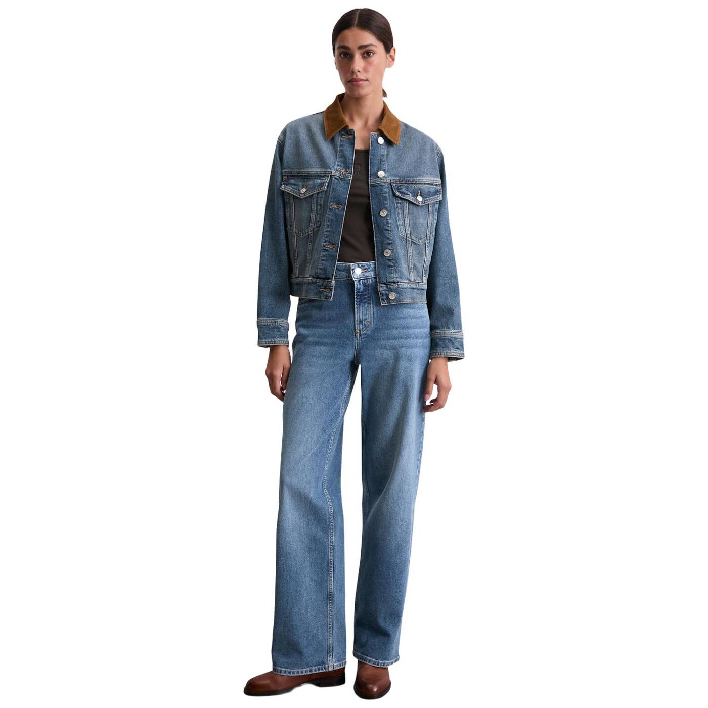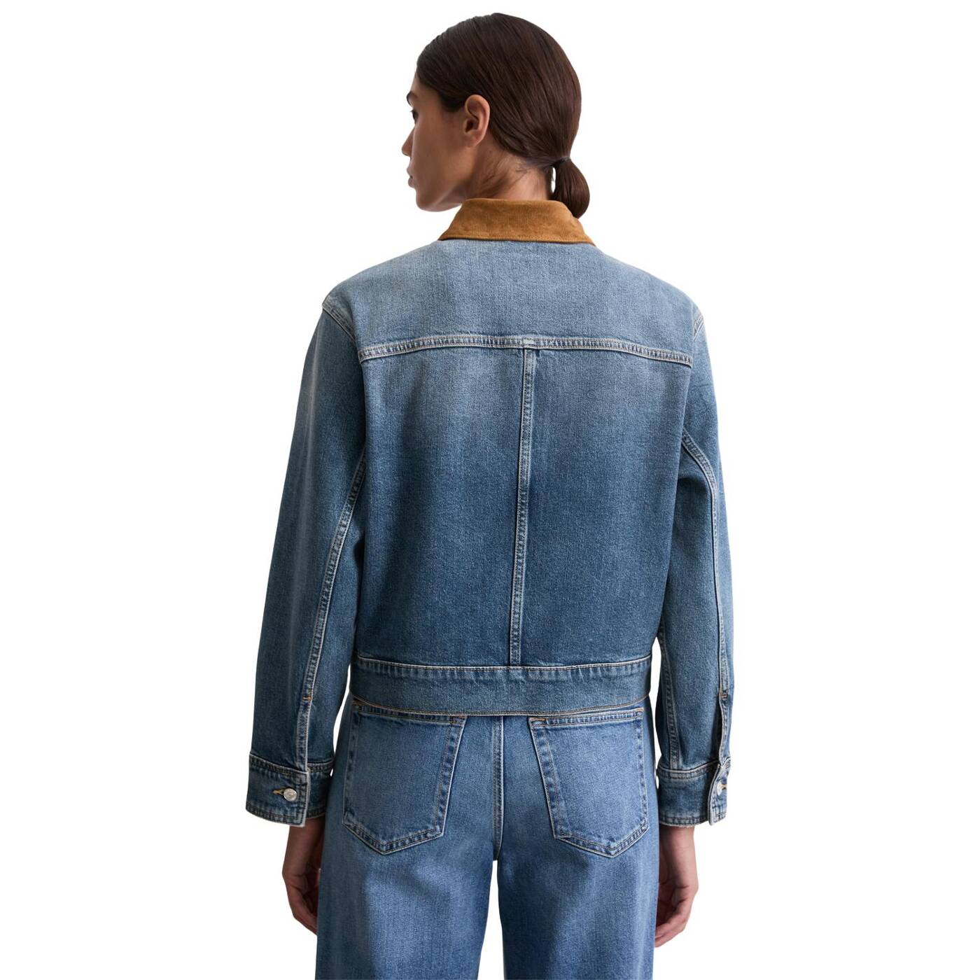 Barn jackets sind ein aktueller modetrend, der rustikalen britischen charme mit modernem streetstyle vereint. einen spannenden kontrast hierzu bietet die lässige jeansjacke. sie hat alle modellrelevanten details einer zeitlosen jeansjacke, mit nur einem kleinen unterschied: der kragen ist aus cord statt aus denim. sie hat einen entspannten fit mit überschnittenen schultern. der stoff? etwas ganz besonderes: circulose®. dabei handelt es sich um eine recycelte viskosefaser, die aus textilabfällen und holzzellstoff gewonnen wird. die faser ist sehr weich und fühlt sich ähnlich wie kaschmir an. um sie haltbarer zu machen, wird sie mit bio-baumwolle und elasthan gemischt. unser ziel ist es, unser nachhaltigstes jeans-produkt herzustellen. von den rohstoffen bis hin zu den färbeprozessen und waschverfahren. verfolgen sie unseren weg zu einer verantwortungsvolleren produktion. it’s on us.