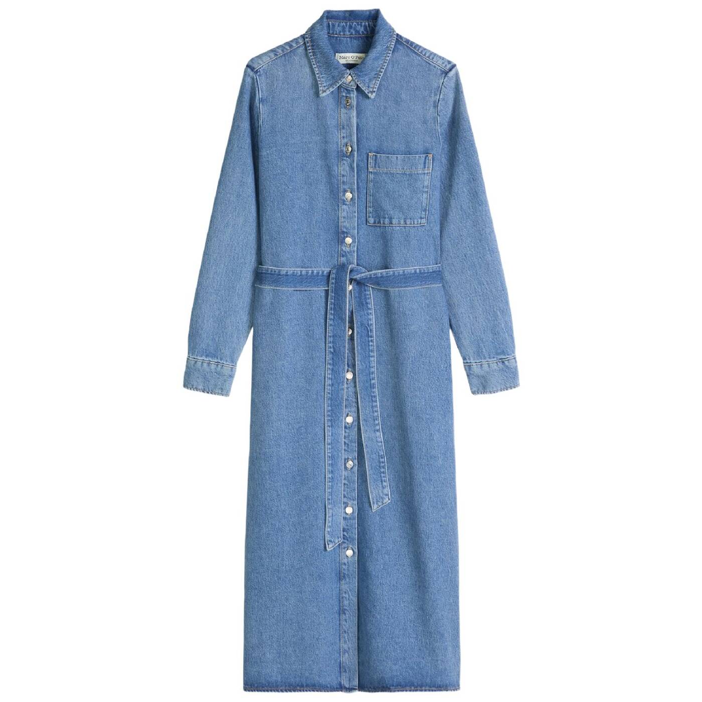Das jeanskleid im hemdblusen-stil bildet den mittelpunkt eines jeden outfits und kann an kälteren tagen mit stiefeln und an warmen tagen mit sandalen oder mules kombiniert werden. das material ist nicht nur hochwertig, sondern auch angenehm zu tragen: ein mix aus weichem, seidigem lyocell und strapazierfähiger baumwolle. es hat einen kentkragen, eine durchgehende knopfleiste, eine rückenpasse, lange ärmel mit schmalen manschetten, eine aufgesetzte brusttasche und einen abnehmbaren gürtel, mit dem sich die taille akzentuieren lässt.