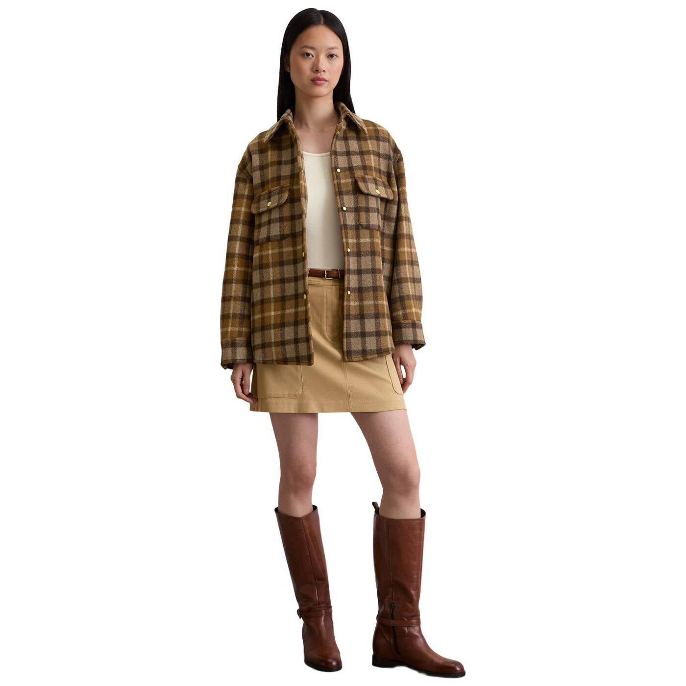Die übergangszeit stellt uns modisch immer wieder vor neue herausforderungen. gefütterte und wattierte winterjacken sind zu warm und lederjacken zu kalt. ein hoch auf das karierte overshirt! es verbindet raffinesse mit funktionalität und hat sich als elegant-sportiver begleiter etabliert. der hohe wollanteil verleiht ihm nicht nur eine hochwertige optik, sondern auch eine lange lebensdauer. es hat einen klassischen look mit kentkragen, edlen metall-druckknöpfen, aufgesetzten brust-klappentaschen, schulterpasse, manschetten-abschlüssen, einer gerundeten saumlinie und praktischen, seitlichen eingrifftaschen. die jacke ist locker geschnitten und nicht gefüttert. alle nähte auf der innenseite sind mit einem farblich passenden schrägband eingefasst. sie passt stylistisch zum lässigen alltagslook mit pullover und jeans oder stilvoll zu rock und bluse.