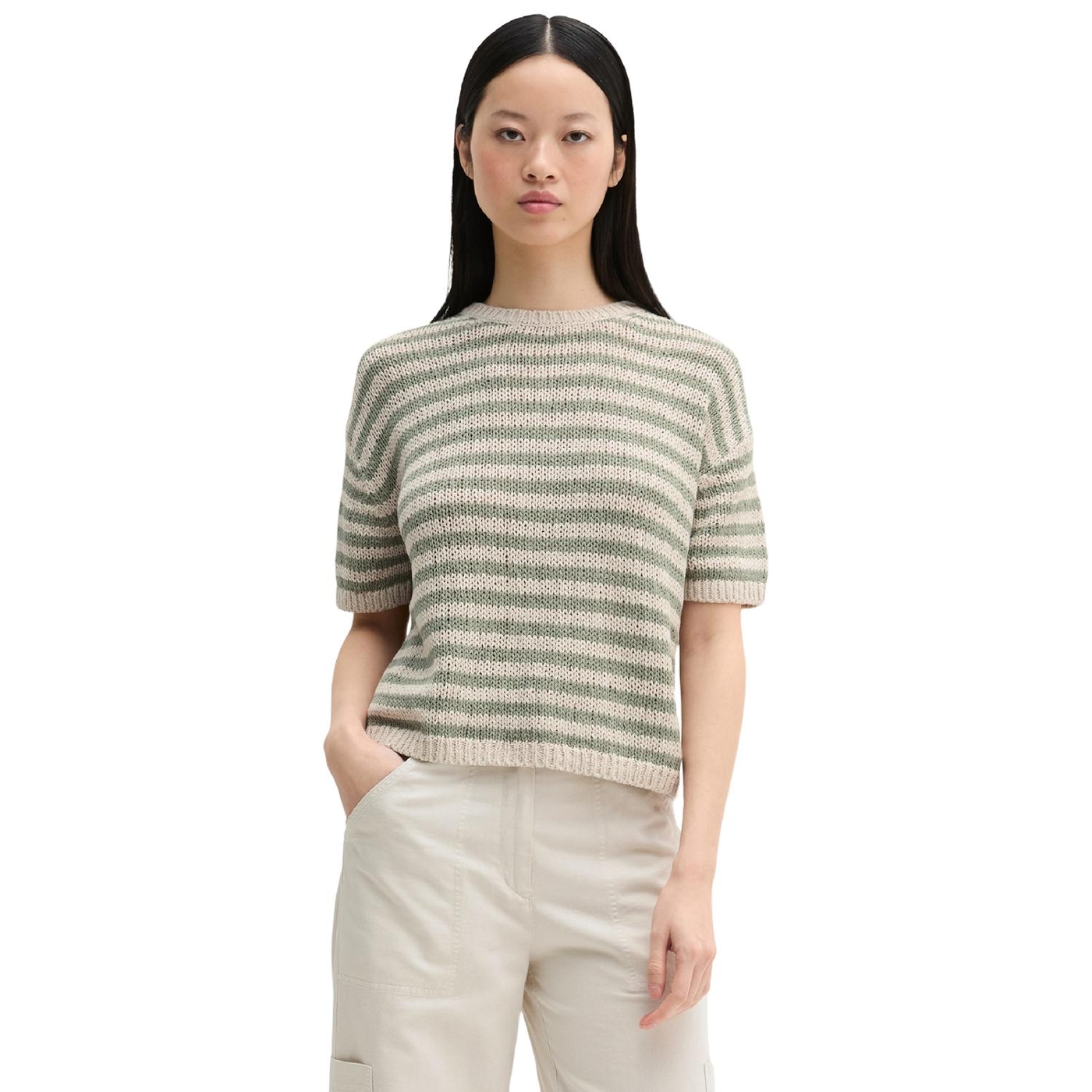 Moderner streifen-klassiker aus exklusivem bändchengarn aus hochwertigem bio-baumwolle-polyester-mix: kurzarm-pullover in zeitlosem, lockerem fit. zu den features gehören ein rundhalsausschnitt, stark überschnittene schultern, ein armausschnitt mit fully-fashioned-details und eine gerade, klassisch gerippte saumlinie. unser styling-tipp: entweder im layering über kleidern, blusen und longsleeves tragen oder als solo-piece zu den lieblings-jeans und sneakers kombinieren.