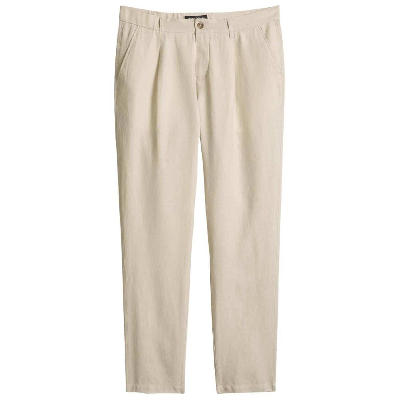 Leichtes leinen aus europäischem anbau macht die chino model osby jogger pleats zur passenden wahl für warme tage. das modell ist im zeitgemäßen tapered fit mit bundfalten gearbeitet und läuft schmal zum saum aus. ein elastischer bund, knopf-zipper-verschluss, seitliche eingrifftaschen sowie geknöpfte paspeltaschen auf der rückseite ergänzen das funktionale design. die industrielle vorwäsche sorgt für einen besonders weichen griff.