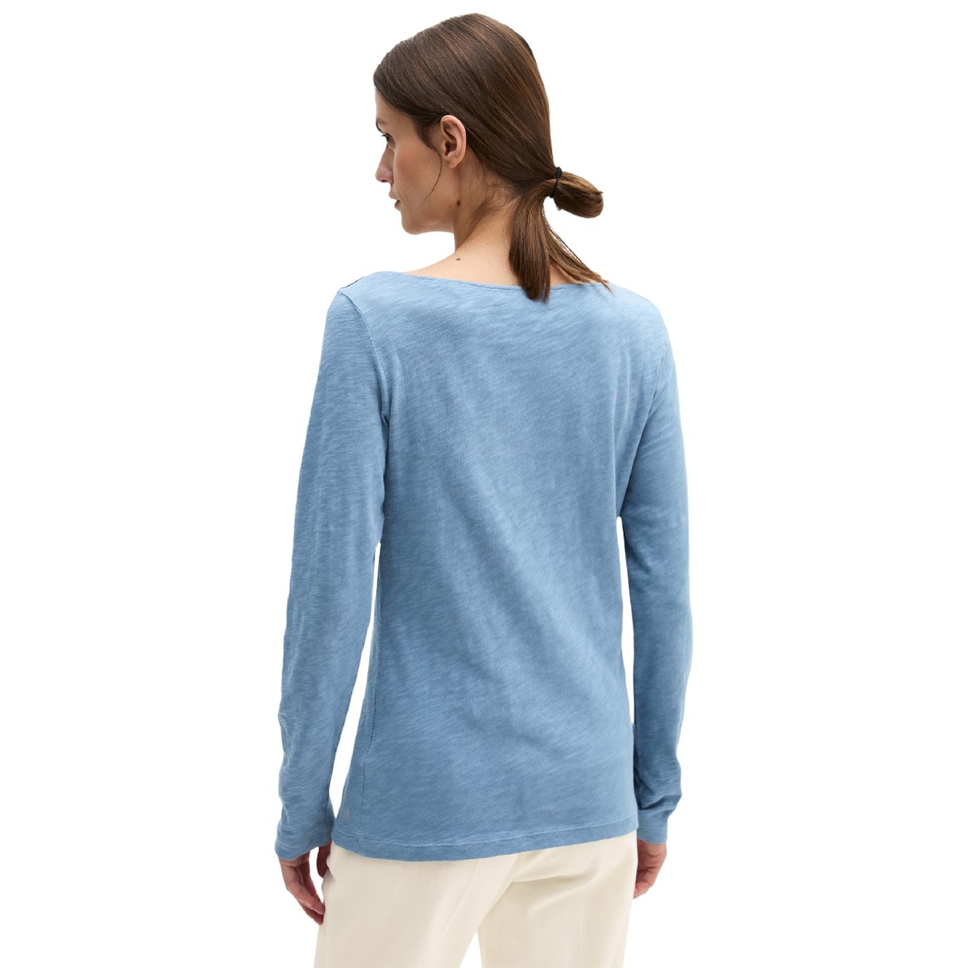 Lässiges, zeitloses longsleeve aus reiner, sehr softer bio-baumwolle in leichter und hochwertiger slub jersey-qualität. perfekt zum layern, zum unterziehen oder einfach als selbstbewusstes solo-piece: das langarm-shirt mit u-boot-ausschnitt. mit logo-print am saum. der fit: klassisch, regulär im bequemen h-shape. designed for circularity. es handelt sich dabei um produkte, die so konzipiert sind, dass alle komponenten recycelbar sind.