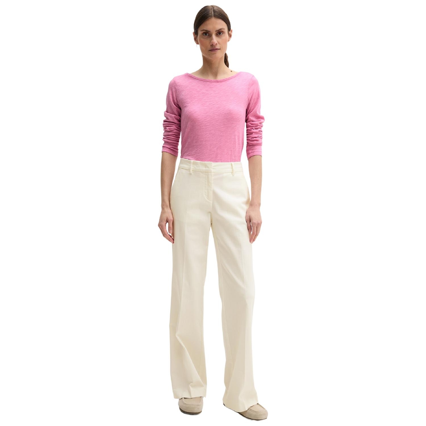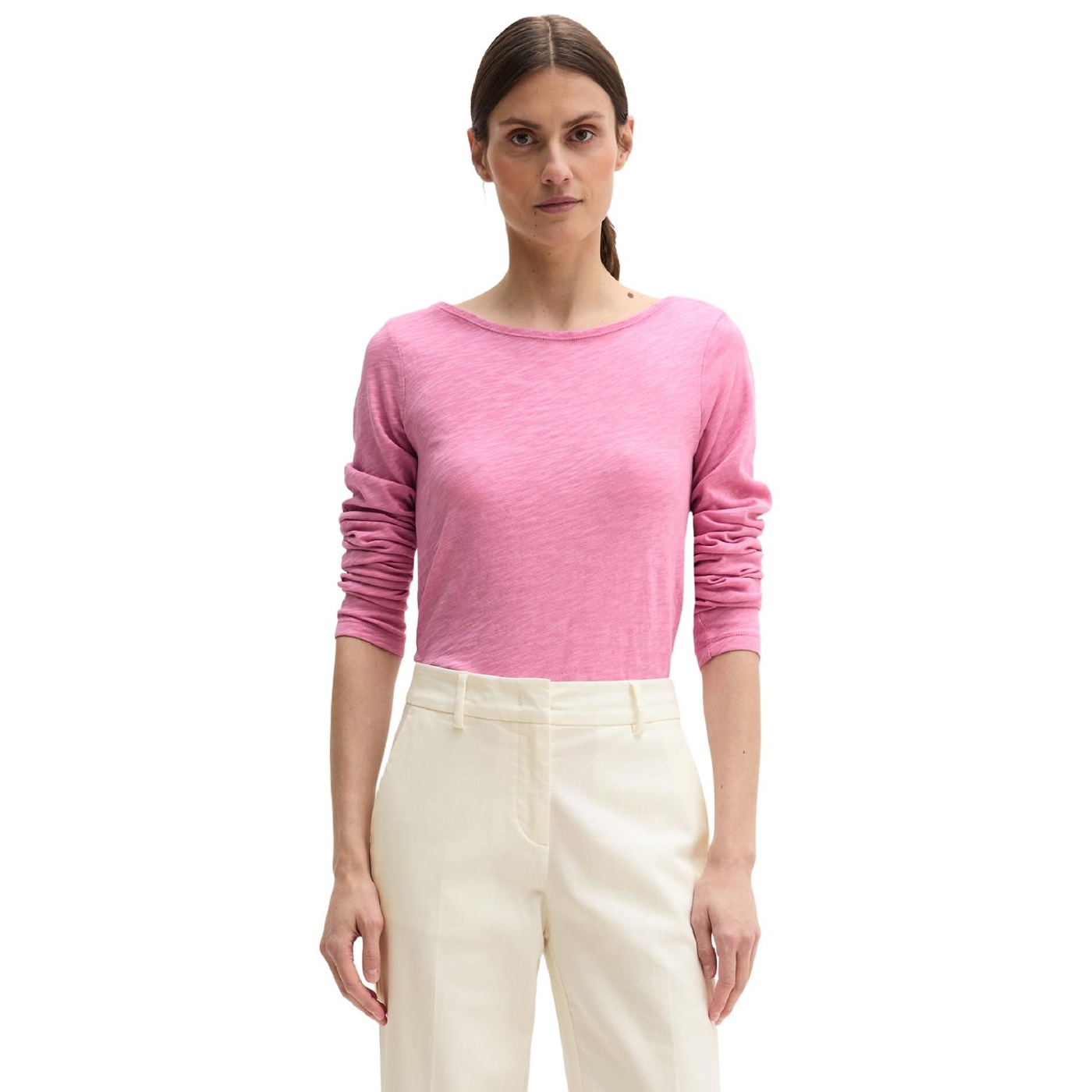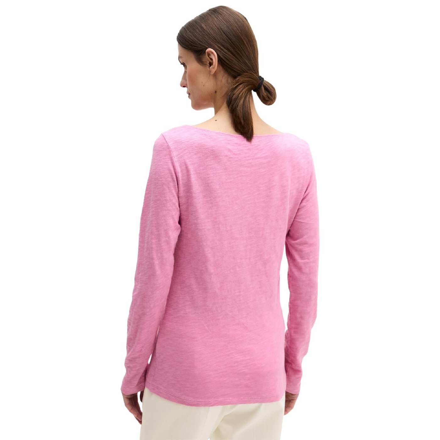 Lässiges, zeitloses longsleeve aus reiner, sehr softer bio-baumwolle in leichter und hochwertiger slub jersey-qualität. perfekt zum layern, zum unterziehen oder einfach als selbstbewusstes solo-piece: das langarm-shirt mit u-boot-ausschnitt. mit logo-print am saum. der fit: klassisch, regulär im bequemen h-shape. designed for circularity. es handelt sich dabei um produkte, die so konzipiert sind, dass alle komponenten recycelbar sind.
