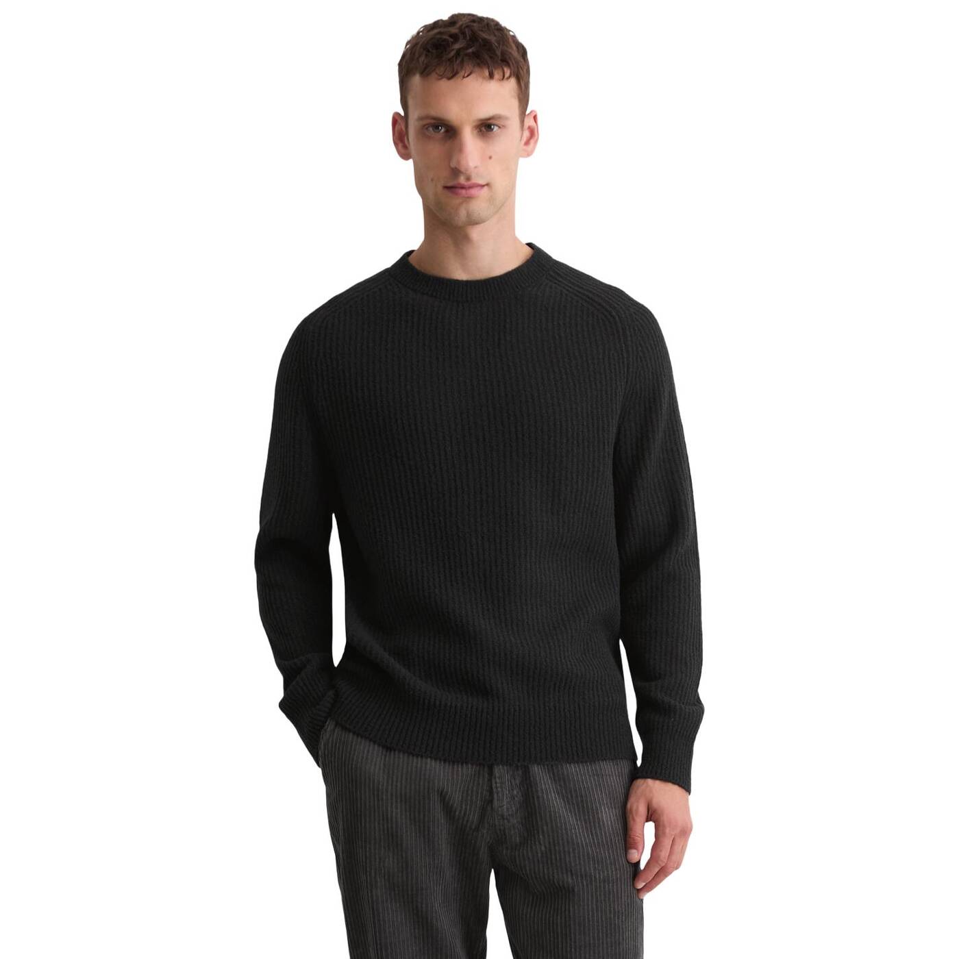 Hochwertig, warm und vielseitig: dieser pullover kombiniert komfort und qualität mit einem weichen mix aus zertifizierter schurwolle, baumwolle und polyamid. die schurwolle bietet wärme, die baumwolle sorgt für ein angenehmes hautgefühl, und polyamid trägt zur langlebigkeit bei. der pullover präsentiert sich mit einem einfachen rippstrick und einem regular fit, der eine vielseitige passform bietet. der rundhalsausschnitt sowie die rippbündchen an den raglanärmeln und am saum verleihen dem design eine klassische note. ein zeitloses kleidungsstück, das sich leicht kombinieren lässt.