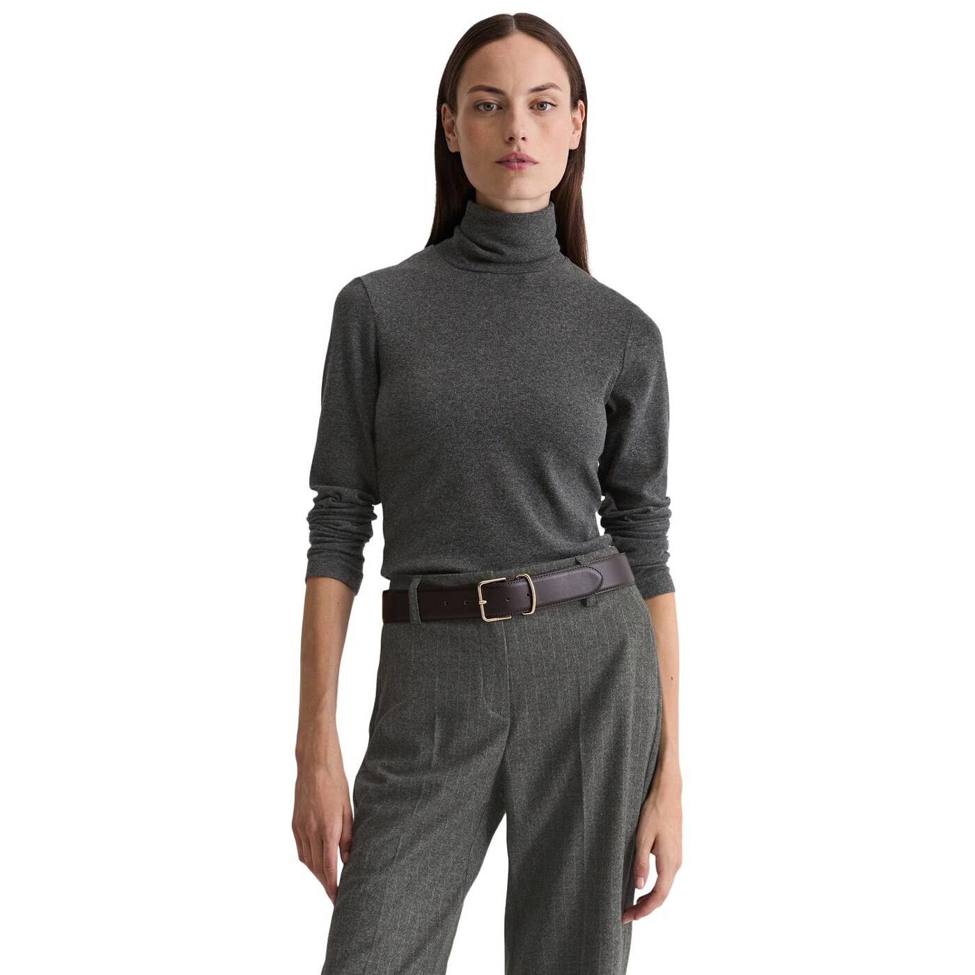 Klassiker in softem Ripp-Jersey: das Rollkragen-Longsleeve in schmaler, femininer Schnittform mit hohem Kragen zum Umschlagen. Die Qualität: ein hochwertiger, stretchiger Modal-Baumwolle-Mix mit feiner Rippenstruktur. Das lässige Longsleeve ist eines der zehn wichtigsten Wardrobe-Staples und mindestens genau so vielseitig kombinierbar wie das zeitlose, weiße Basic-T-Shirt.