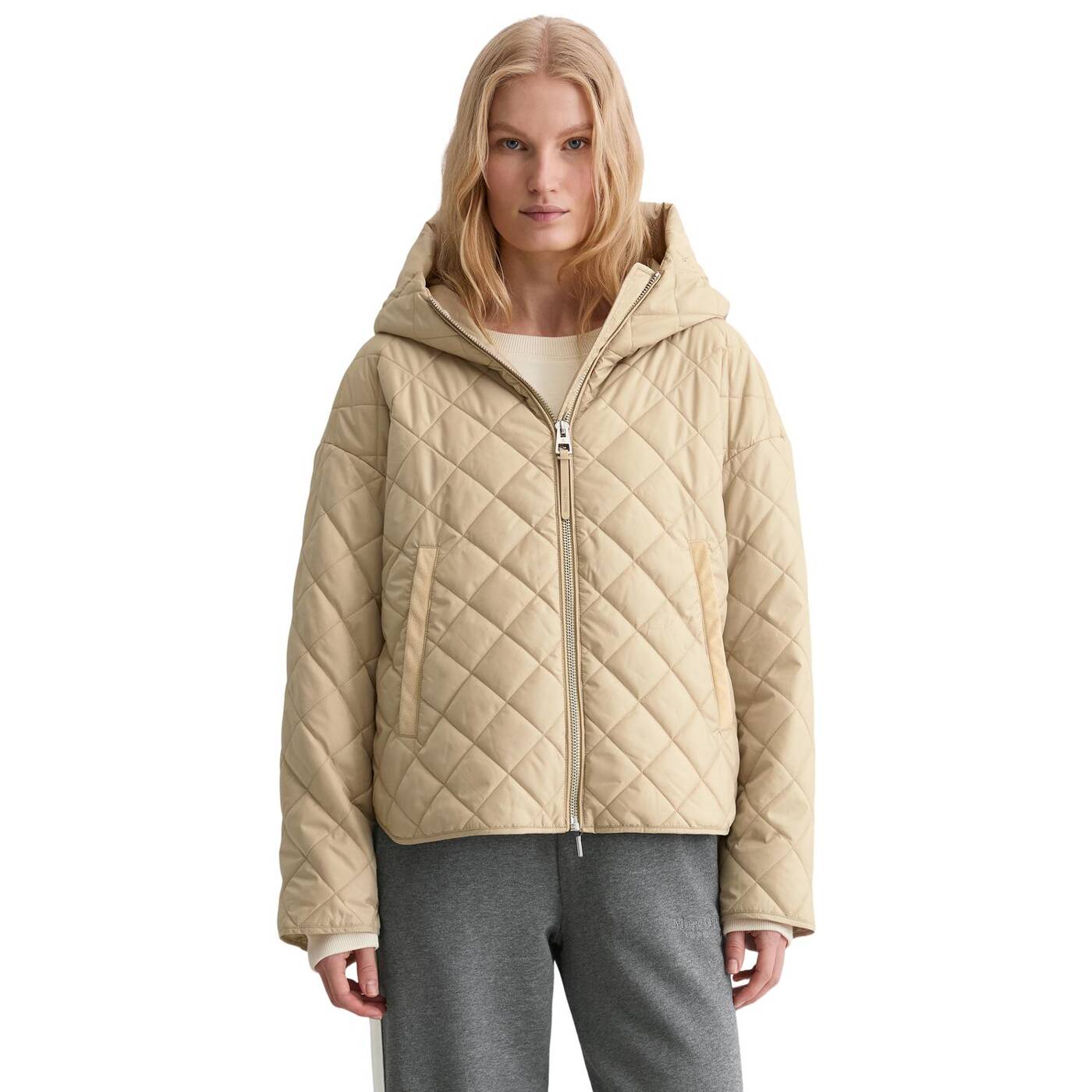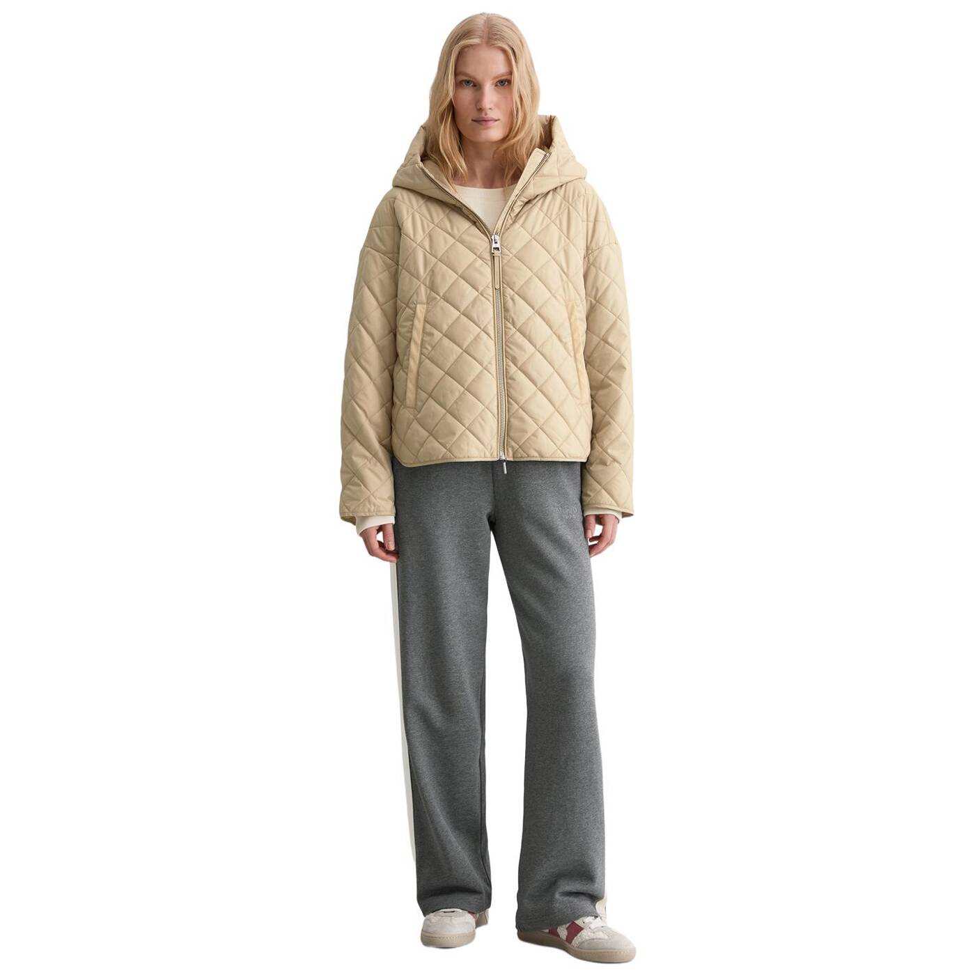 Was zieht man an, wenn es in der Übergangszeit ungemütlich wird, es regnet oder ein kalter Wind weht, man aber trotzdem nicht auf einen lässigen, unkomplizierten Stil verzichten möchte? Die leichte Steppjacke mit großer Kapuze und Wattierung ist das coolste Trendteil dieser Saison und schützt stilvoll vor allen Wetterkapriolen. Die locker geschnittene Jacke verfügt über einen hohen Stehkragen, überschnittene Schultern und einen lässig gerundeten, seitlich geschlitzten Saum. Letzterer kann mit Druckknöpfen geöffnet werden. Besonders auffällig sind die Cord-Details, der kernige Frontreißverschluss aus Metall und die klassischen Steppnähte in Rautenform. Das Schöne daran ist, dass man die Jacke sowohl im Frühling als auch im Herbst tragen kann.