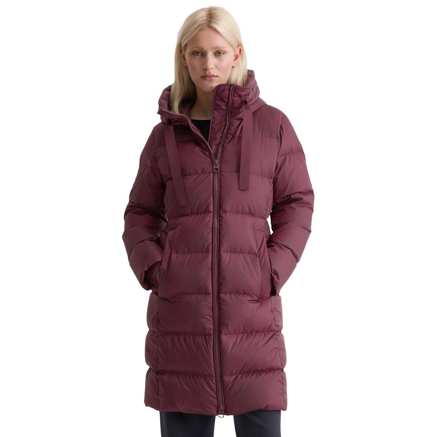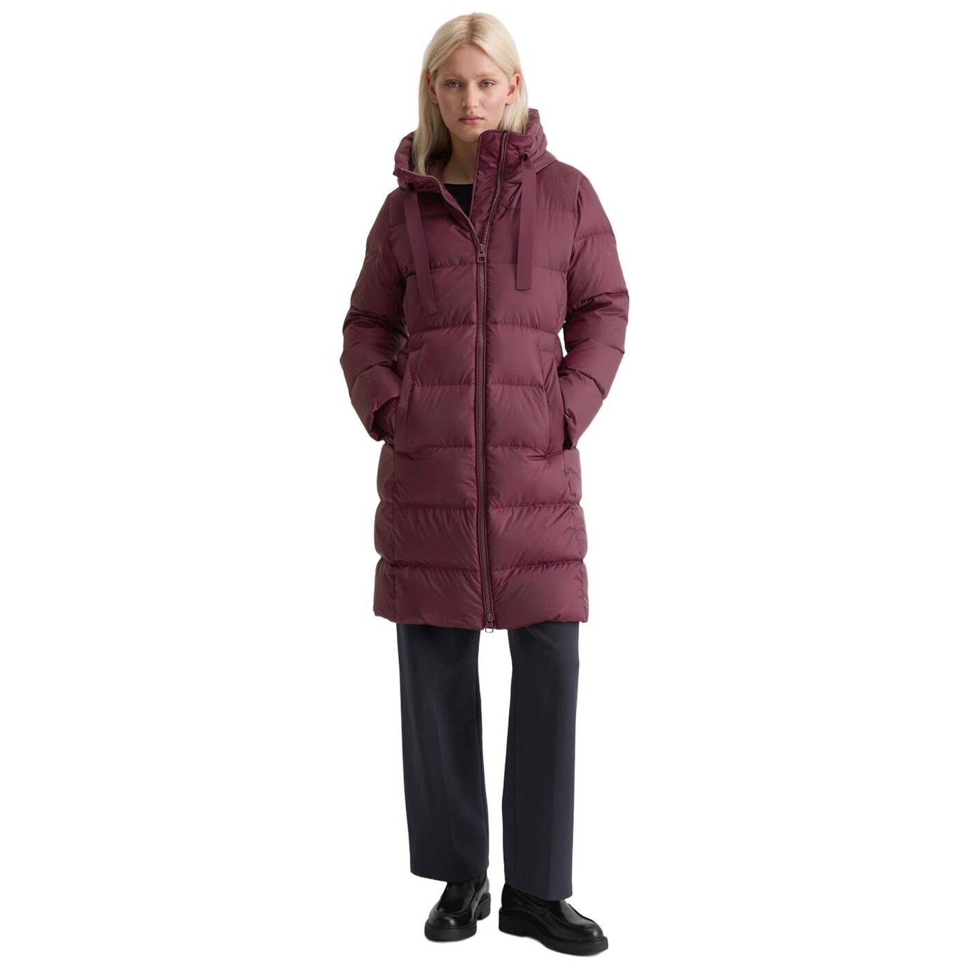 Hergestellt aus hochwertigem, wasserabweisendem performance-material aus recyceltem, mattem polyester und gefüllt mit einer weichen und warmen mischung aus zertifizierter daune und federn. zu den technischen merkmalen gehören ein robuster zwei-wege-frontreißverschluss mit einer unterlegten sturmblende, praktische leistentaschen mit kuscheligem fleecefutter und elastische rippstrick-abschlüsse an den ärmeln innen. auf der innenseite befindet sich ein markanter, kontrastfarbener logo-print. das lässige volumen des puffer-daunenmantels sorgt für eine gekonnte inszenierung von silhouetten und kontrasten beim styling. das shaped fit-modell hat eine große, fixierte volumen-kapuze mit tunnelzug und flachen xl-kordeln - so kann die weite lässig nach belieben reguliert werden. klassisch: die gesteppten kammern.