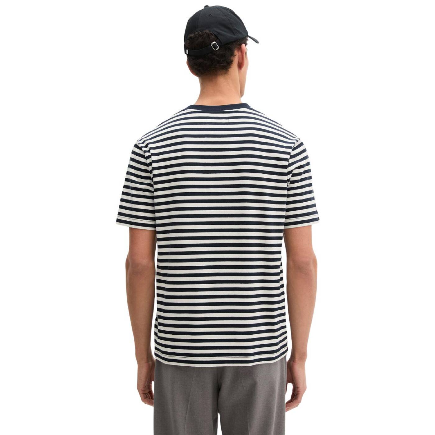 Markanter streifenlook als moderner everyday klassiker: weiches t-shirt aus reiner bio-baumwolle mit garngefärbtem streifenbild. single jersey mit angenehm glatter oberfläche dank bio-wash veredelung, die die fasern feiner macht und pilling reduziert. das wicking finish unterstützt den schnellen feuchtigkeitstransport und verbessert das tragegefühl im alltag. regular fit mit vielseitigem einsatz – solo zu chino oder jeans, stark auch im layer mit overshirt oder denim jacket. designed for circularity: das t-shirt wurde gemäß der designkriterien für zirkuläres design entworfen, sodass es schließlich einfacher recycelt werden kann.